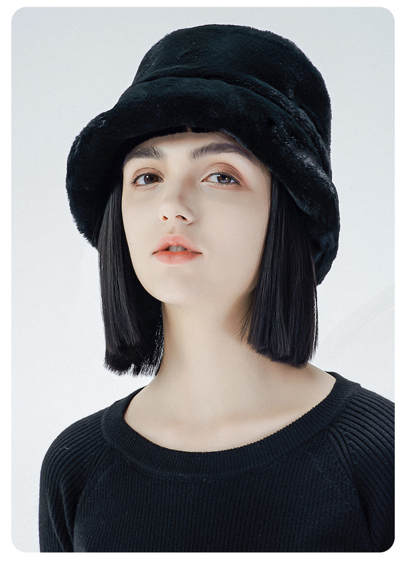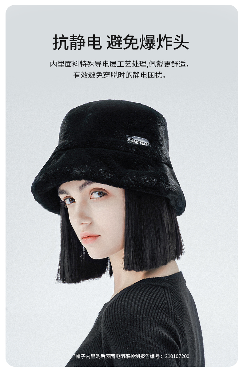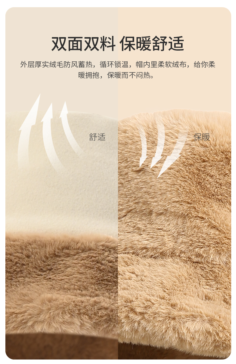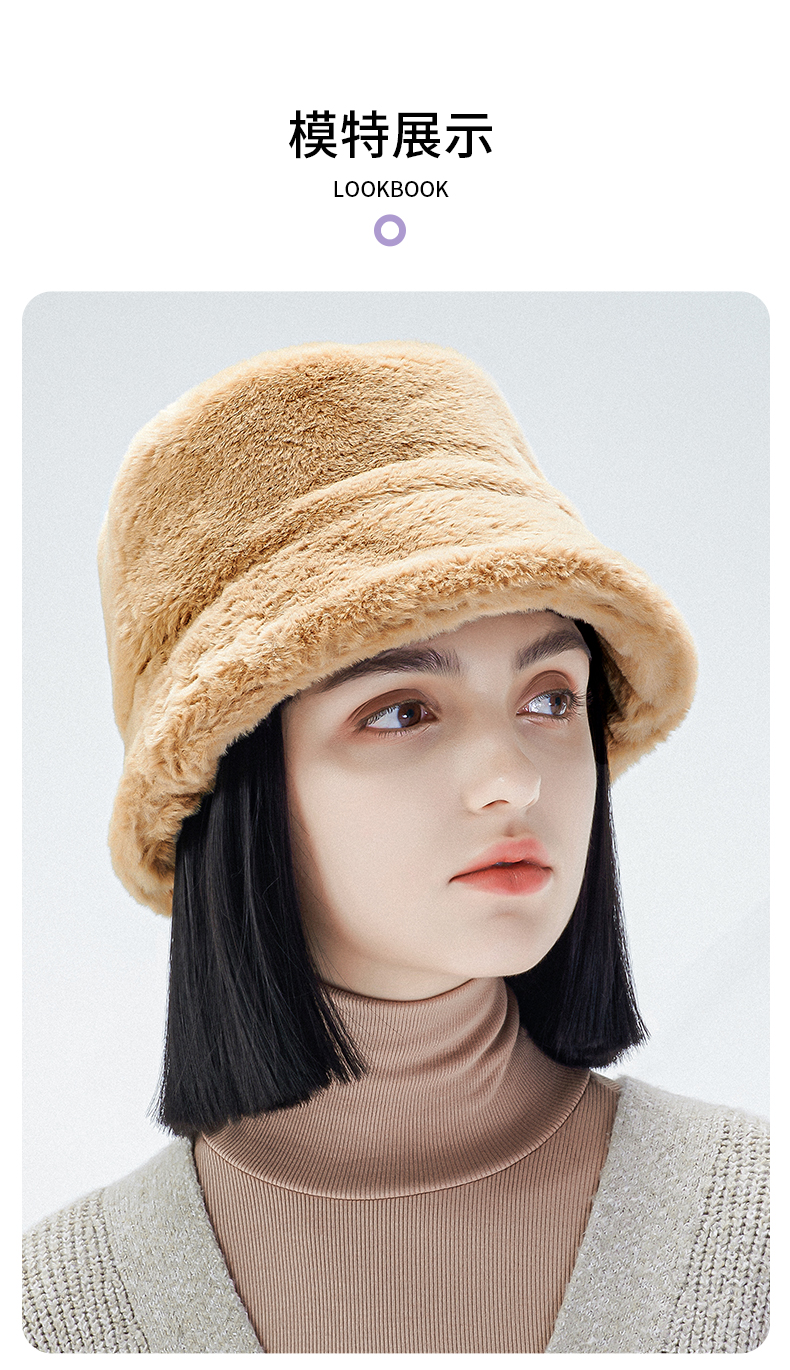 Supield素湃气凝胶保暖水桶帽冬季显脸小渔夫帽盆帽毛绒帽子