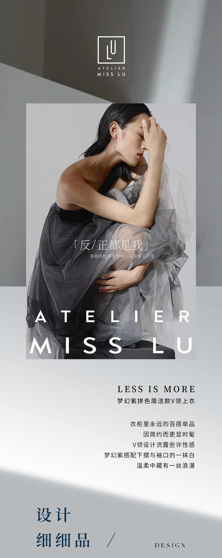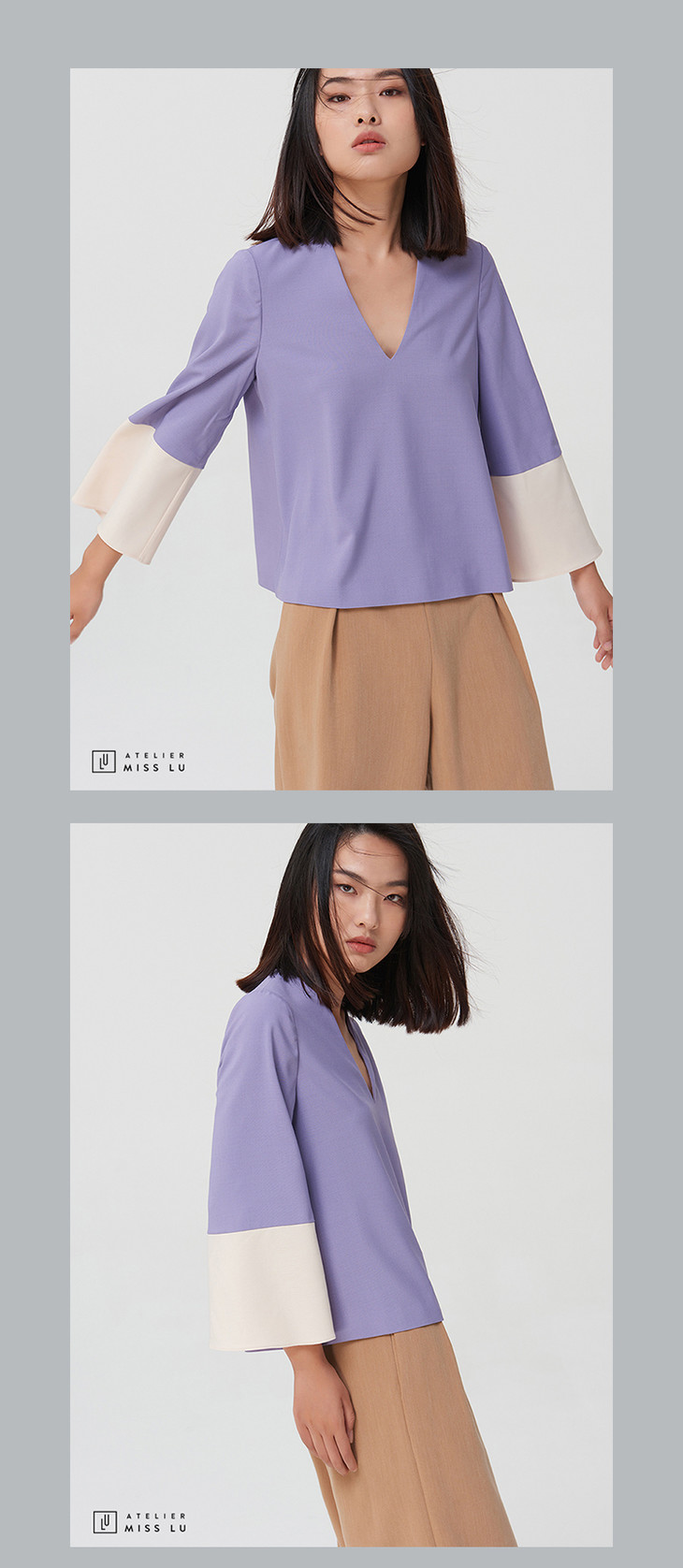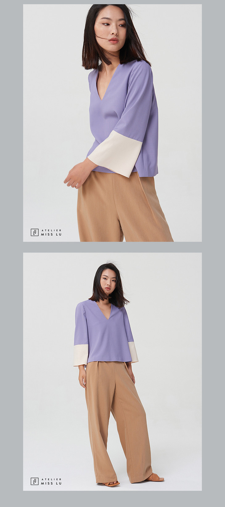 AtelierMissLu-【LESS IS MORE】 香芋紫拼色简洁款V领上衣