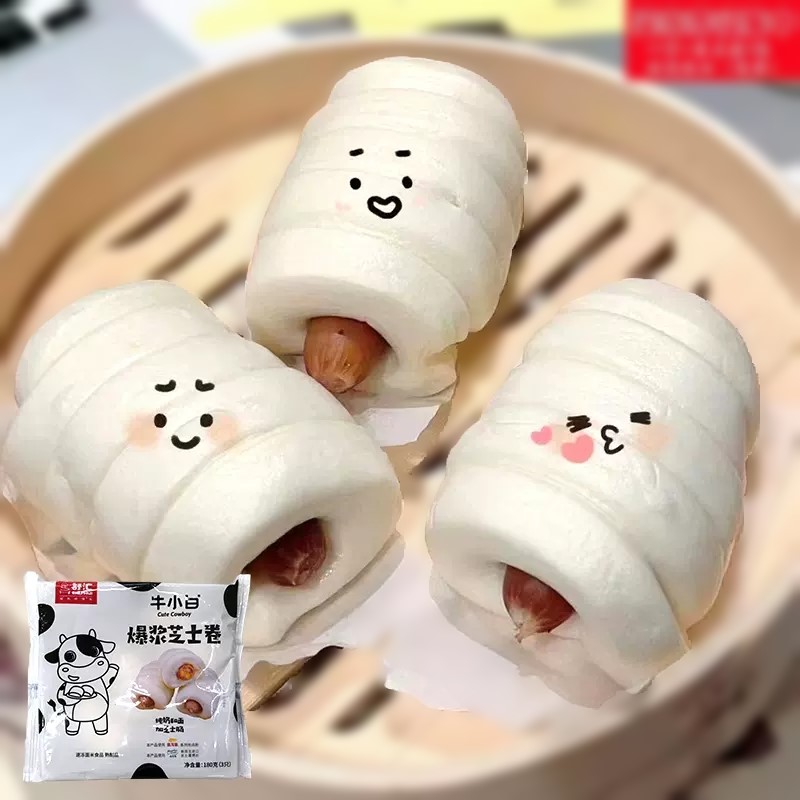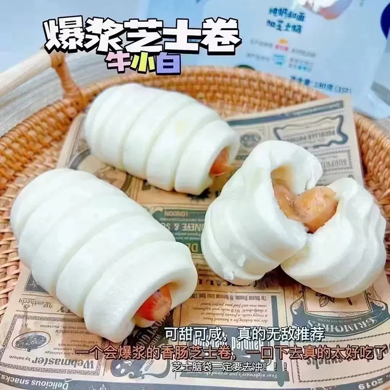 牛小白爆浆芝士卷180g(3只)纯奶和面,加芝士肠(优质金龙鱼面粉制作,早餐吃好的!)c