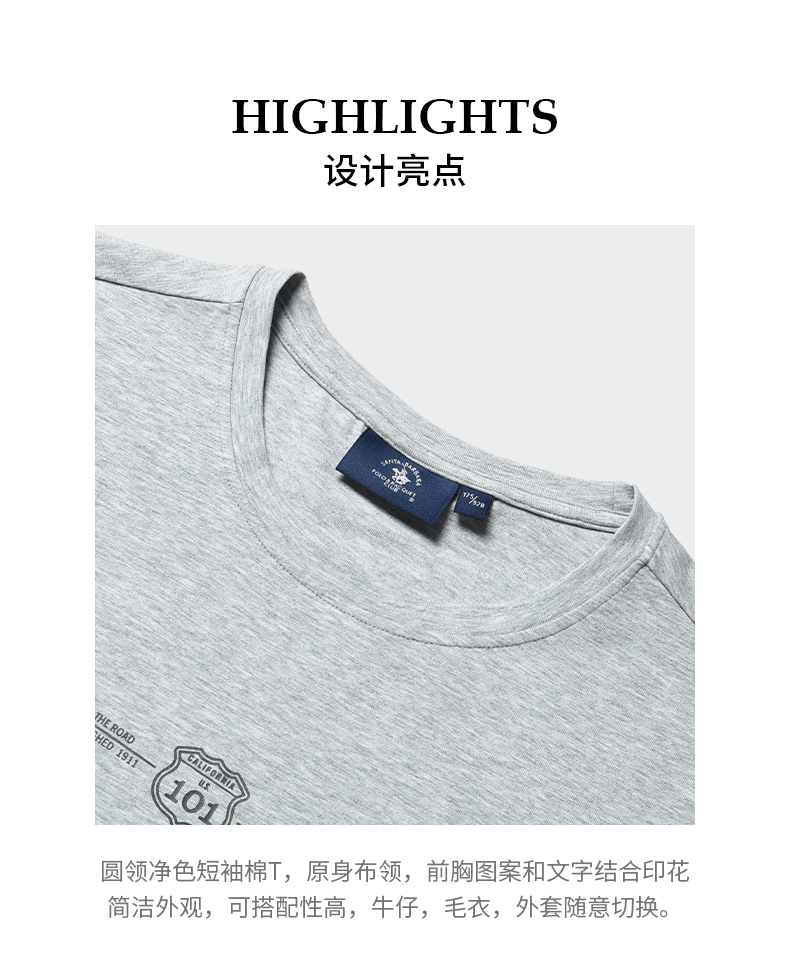 【直发】圣大保罗春夏男士圆领棉弹平纹,柔软舒适 1公路印花短袖棉T-PS21KT309M