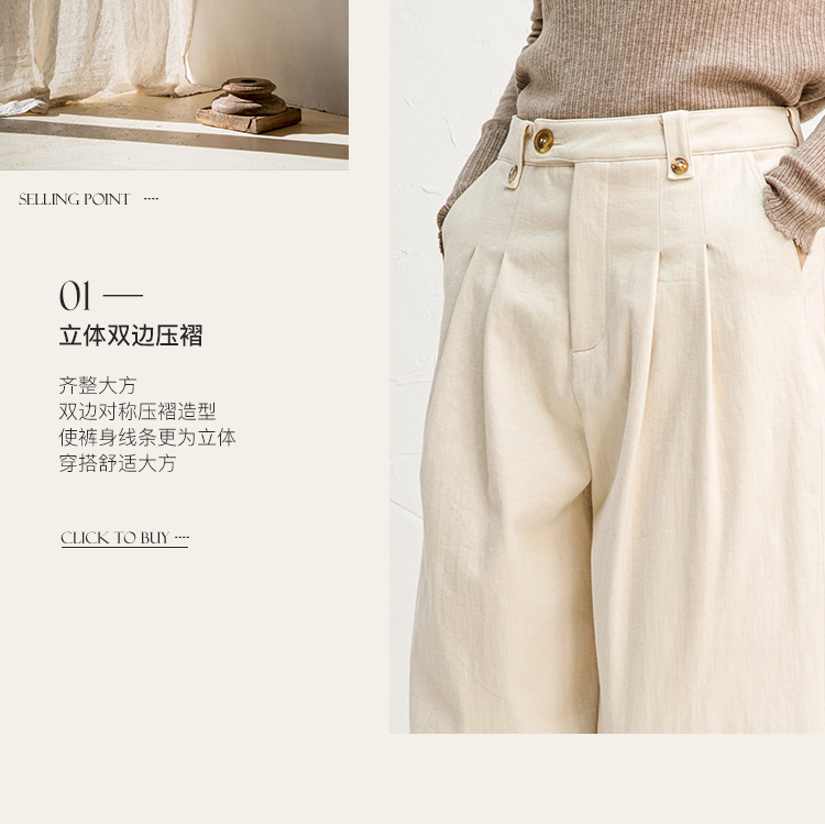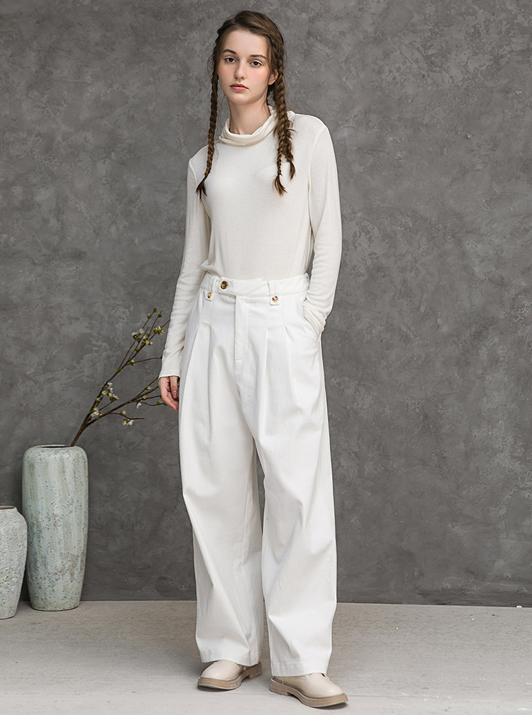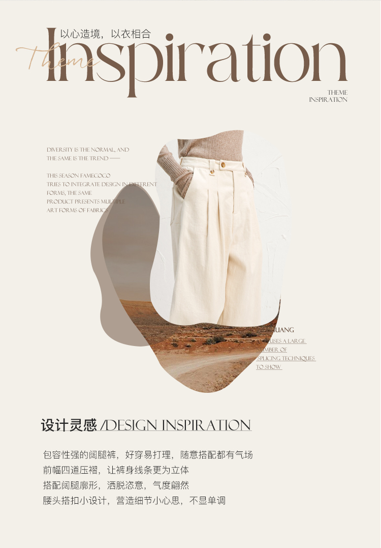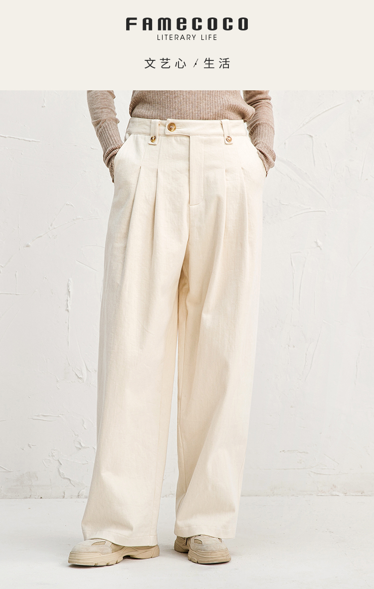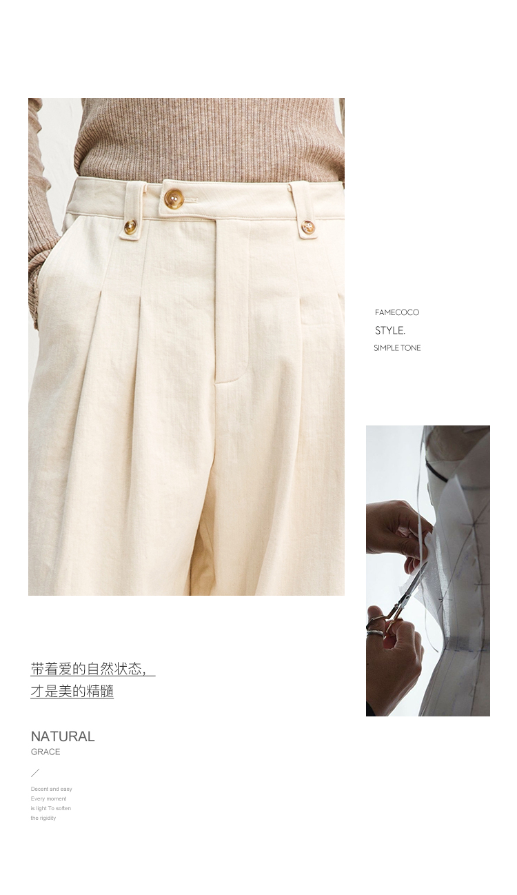 Famecoco范可儿纯棉休闲裤女秋冬休闲慵懒宽松裤大F218GA022