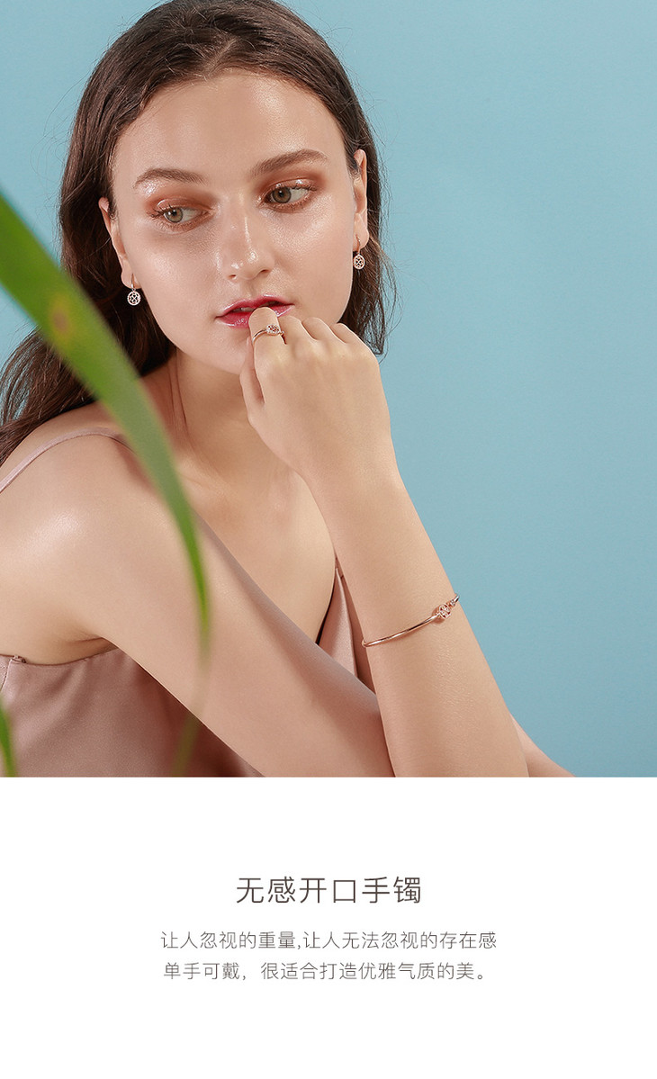 T400开口手镯女四叶草镶施华洛世奇纯银简约学生网红森系玫瑰金 商品图4