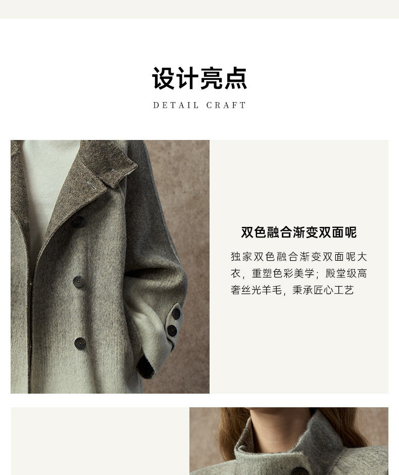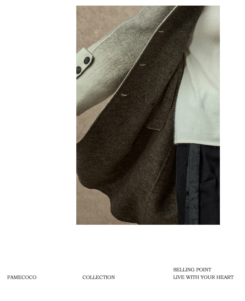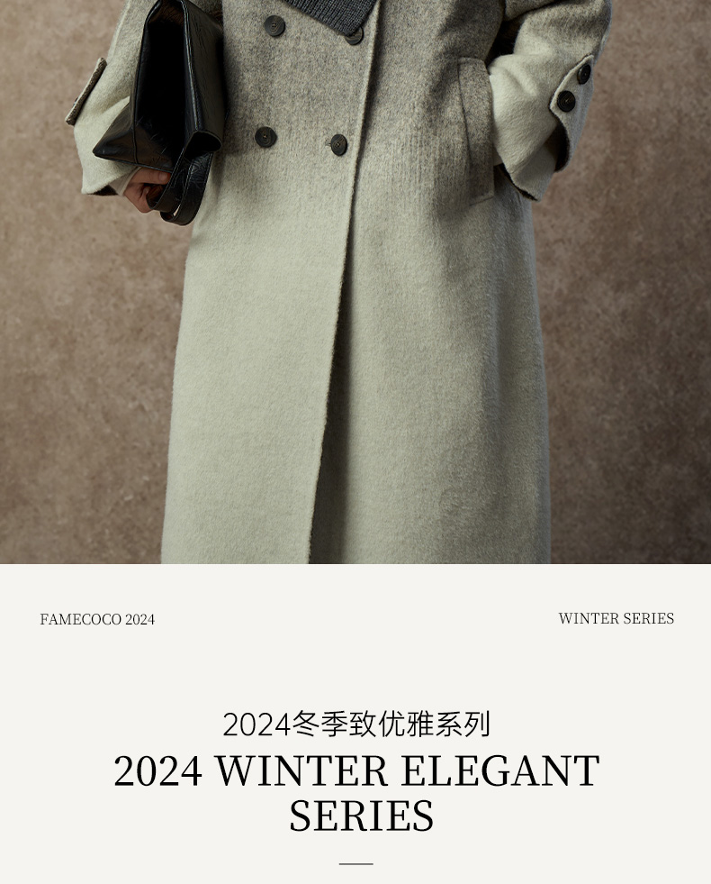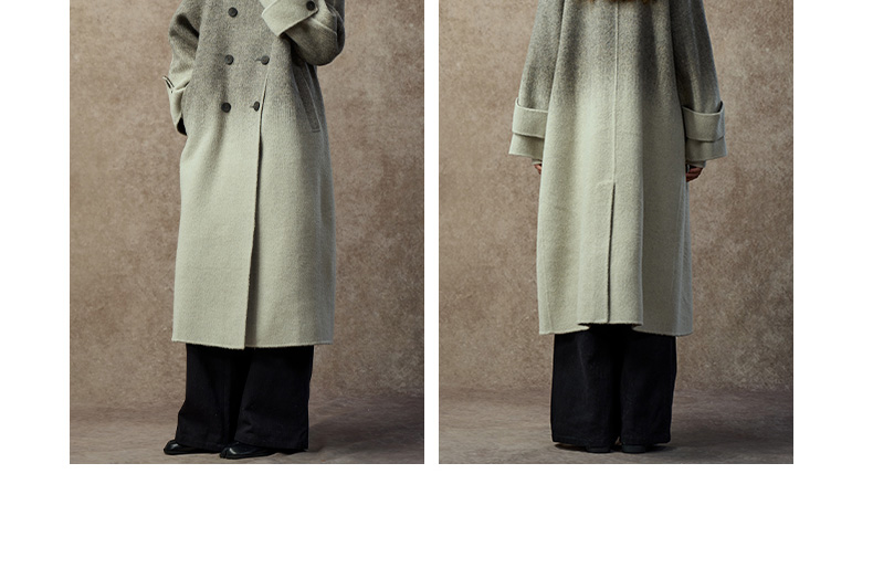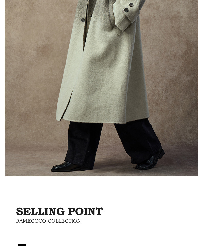 Famecoco范可儿独家双色渐变文艺范立领双面呢长大衣FAC8AQ011