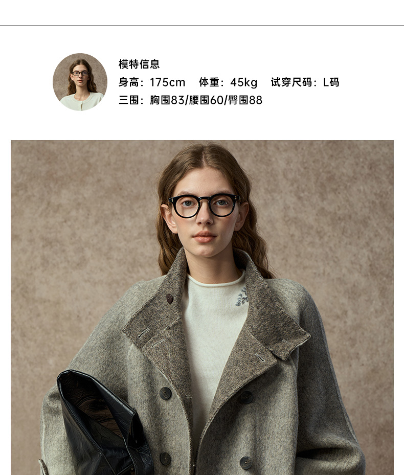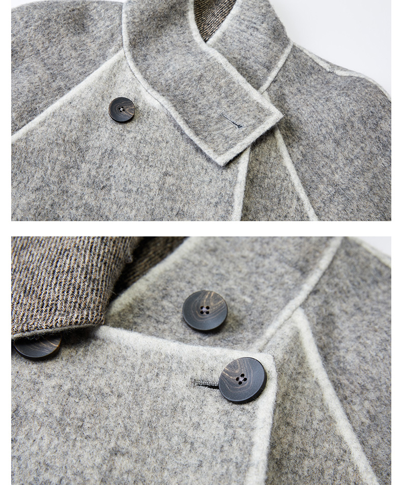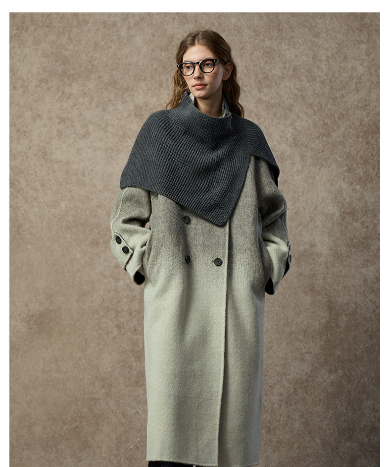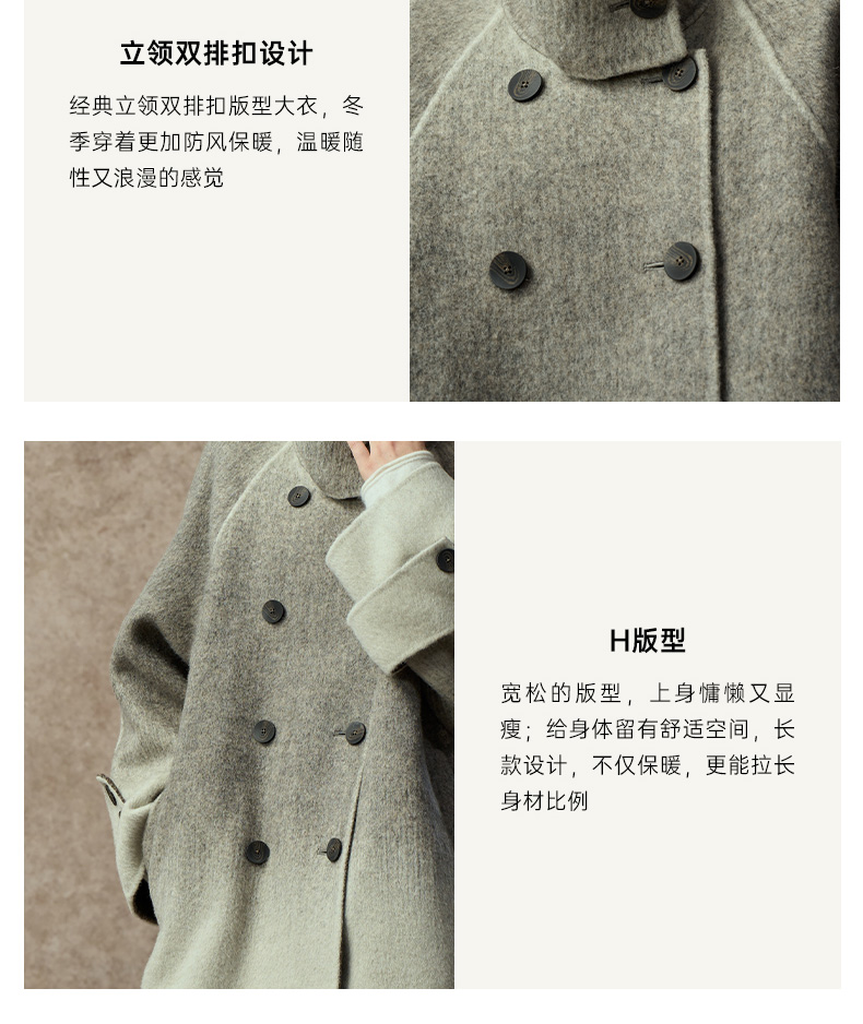 Famecoco范可儿独家双色渐变文艺范立领双面呢长大衣FAC8AQ011