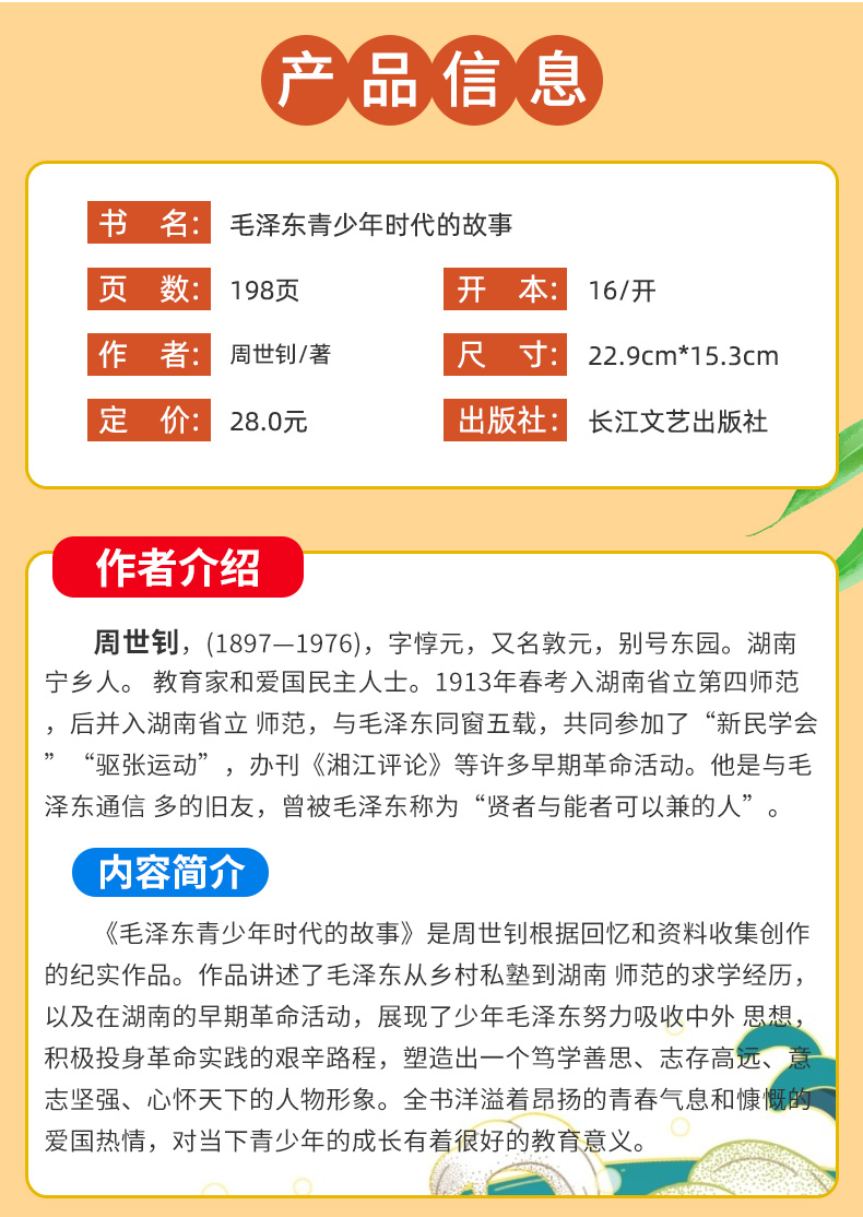 毛泽东青少年时代的故事周世钊 中小学生课外书必读8-10-12岁以上四五六年级百读不厌的经典故事老师推荐儿童励志文学读物毛泽东传
