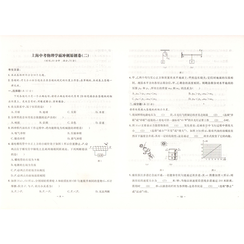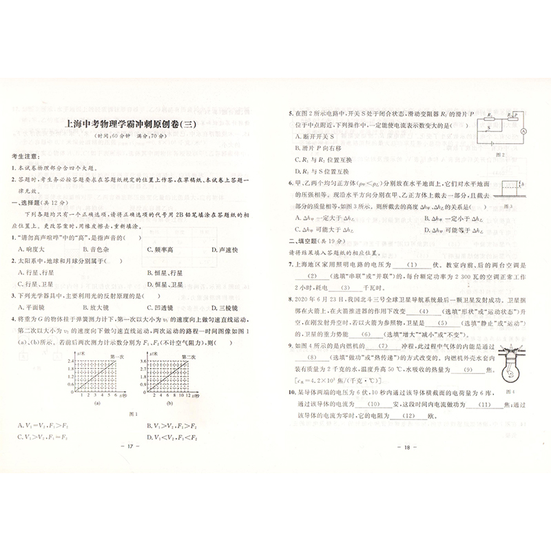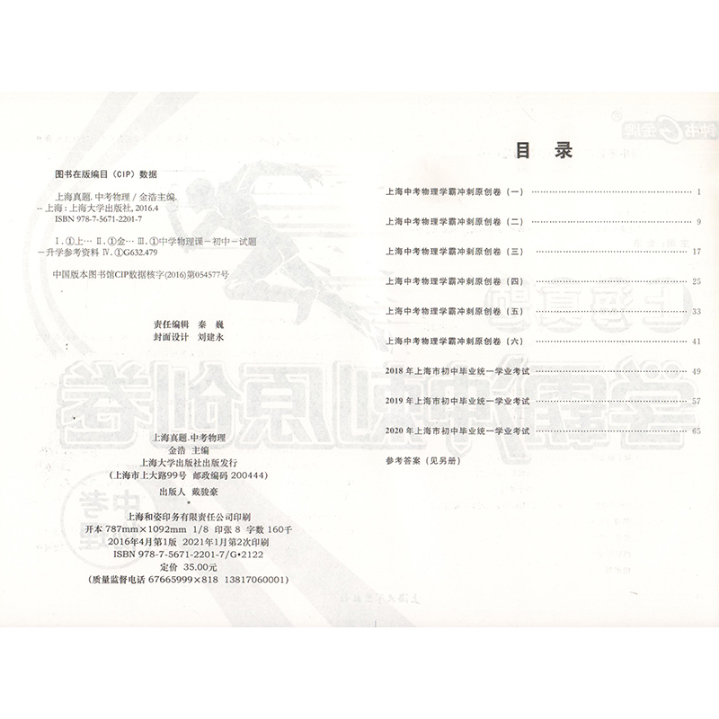 钟书金牌 2021新版 上海真题学霸冲刺原创卷 中考物理 2018-2020上海初中学业考试卷 上海大学出版社