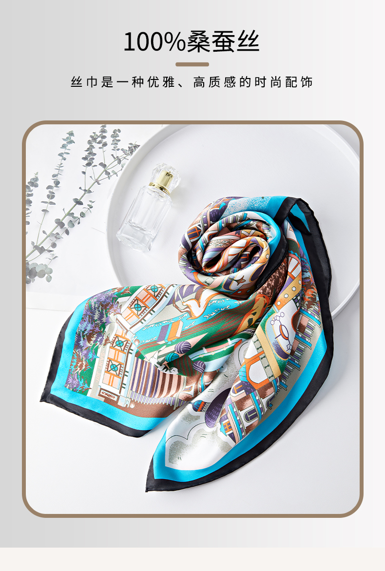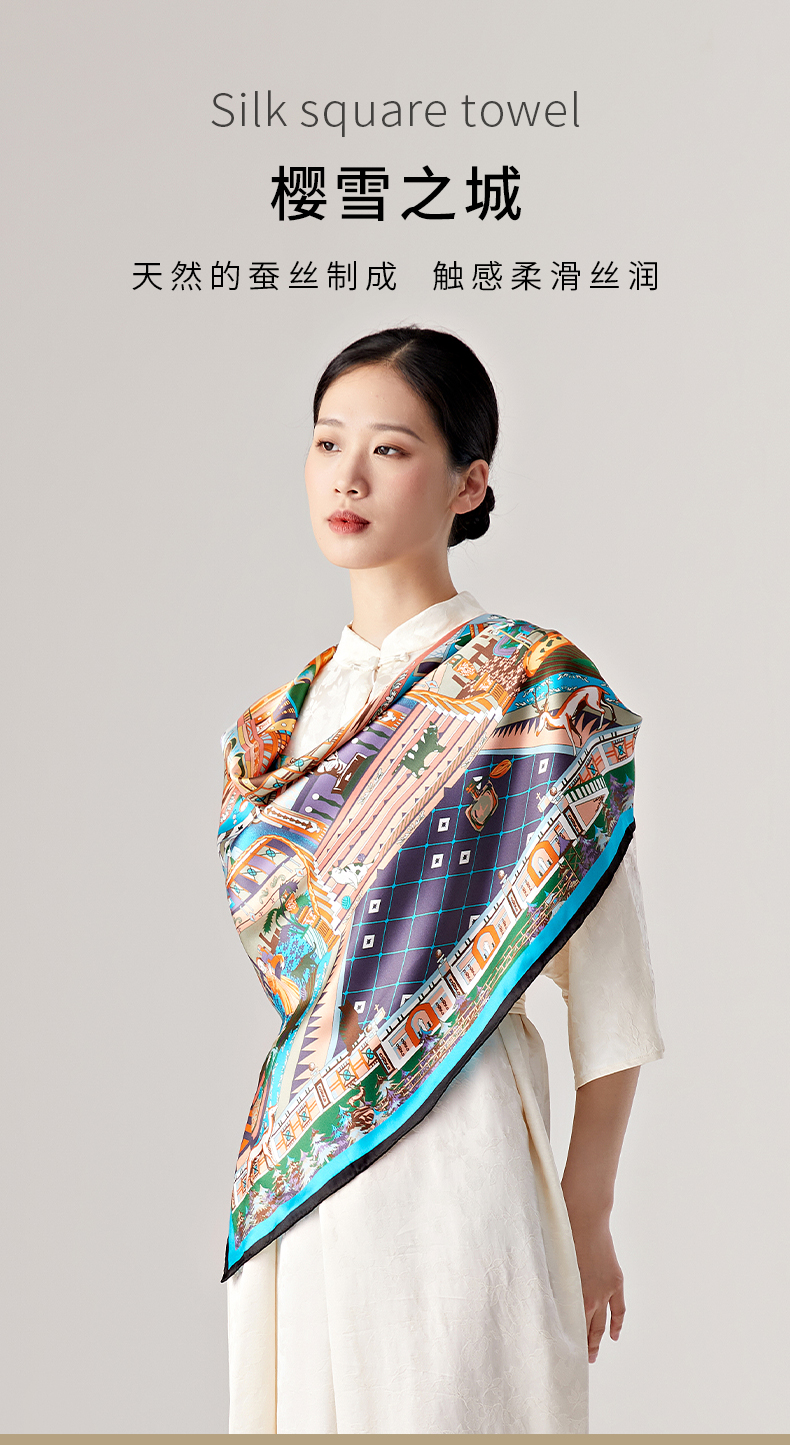 SAINTJOY/上久楷真丝方巾 真丝方巾 樱雪之城 FJS23017