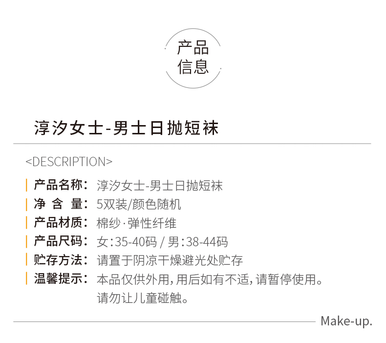 淳汐女士-男士日抛短袜5双装(240430-240427)