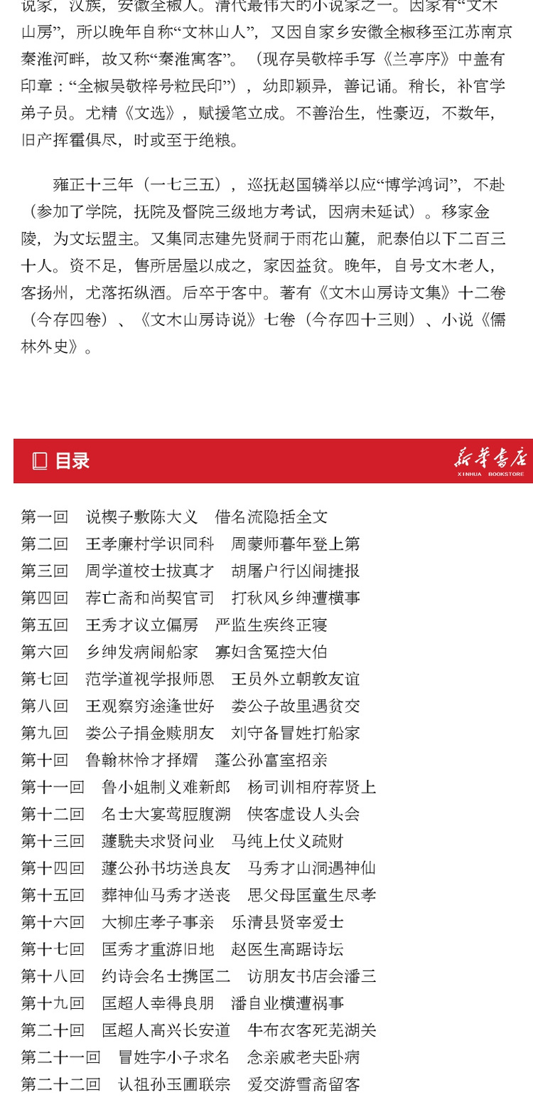 【新华书店旗舰店官网】正版 儒林外史 吴敬梓原著 儒林外史原著 儒林外史 学生 儒林外史白话版无删减 无障碍阅读典藏版