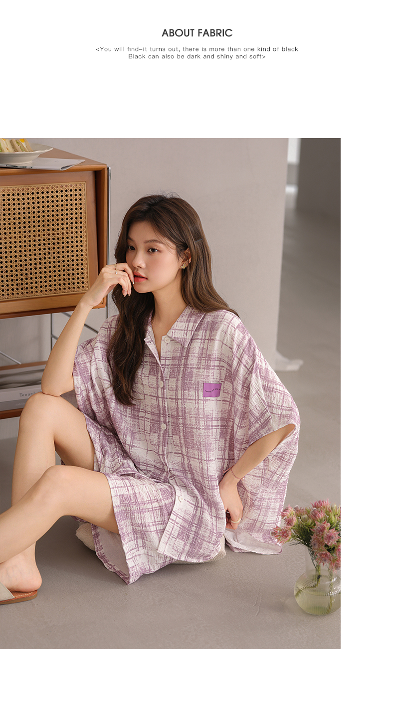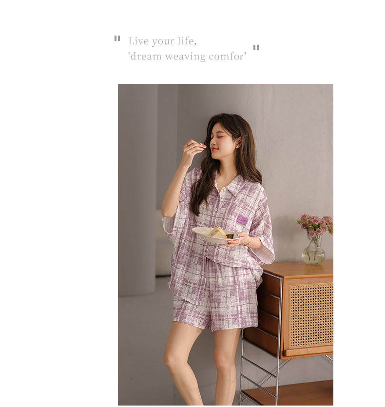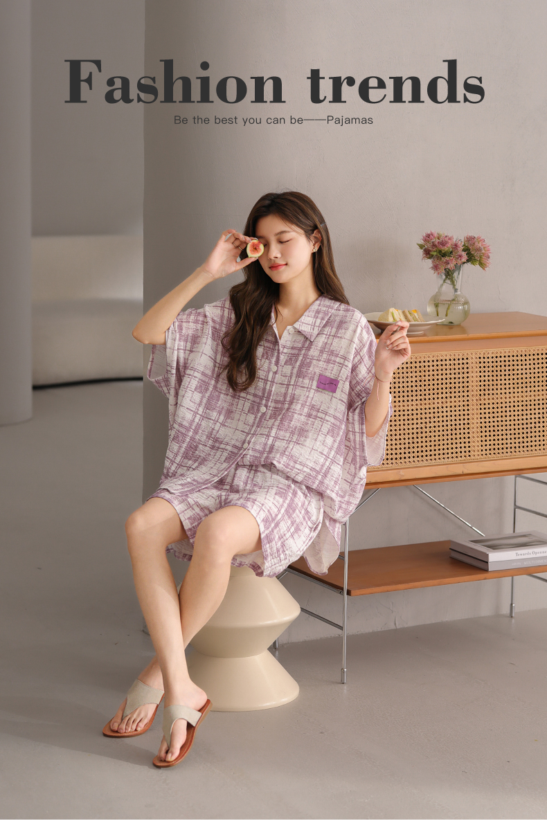 可人儿小众设计师新款泡泡绵女士睡衣夏季短袖可外出家居服套装