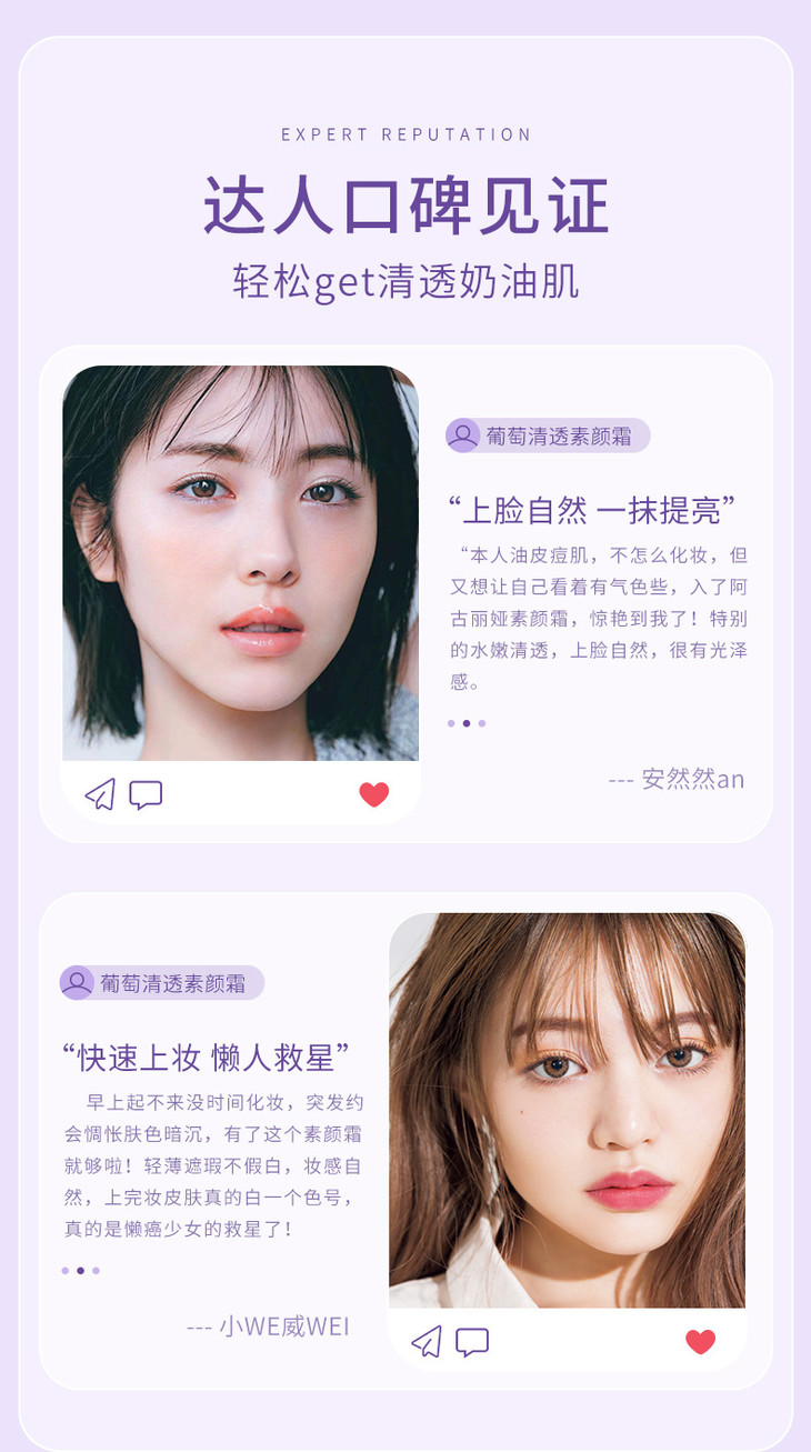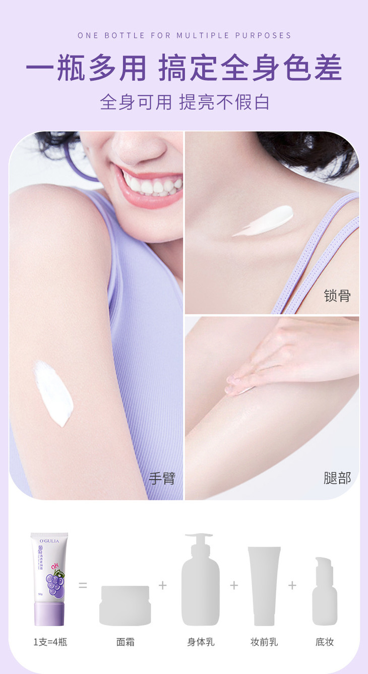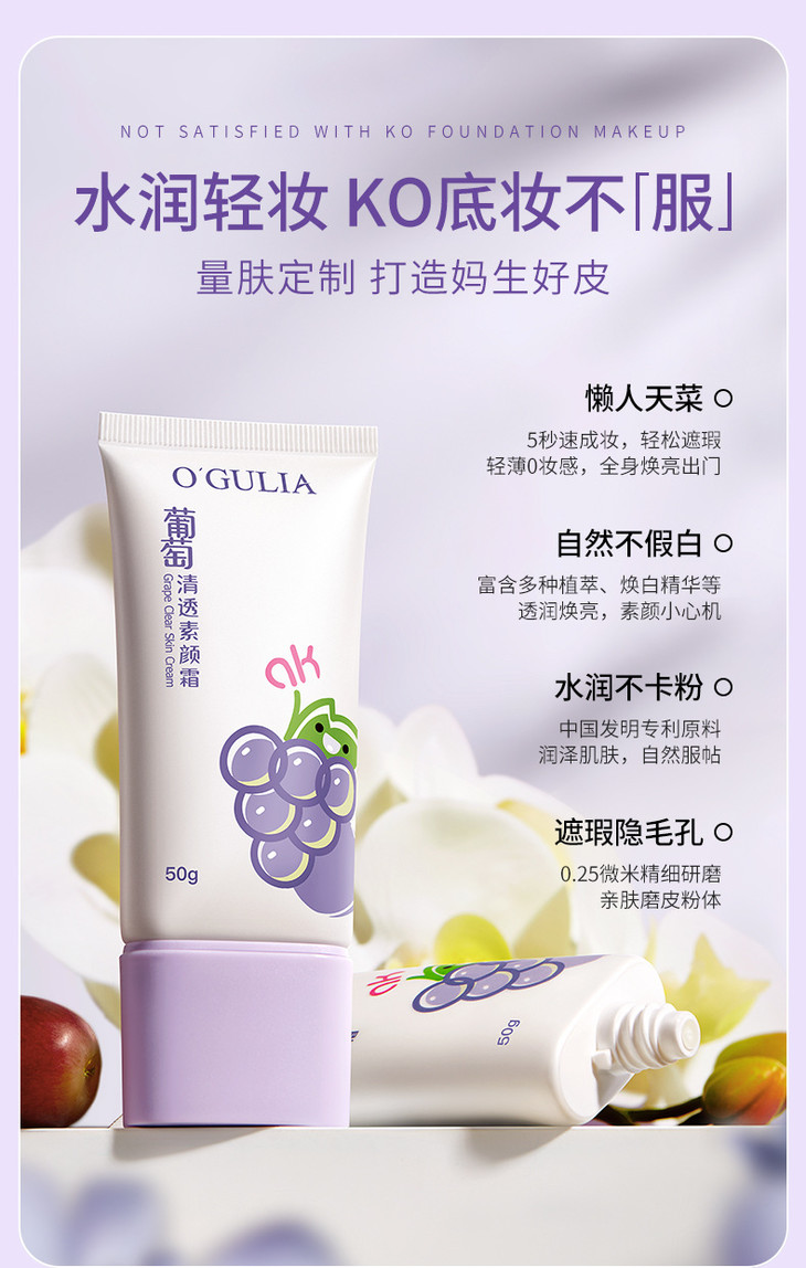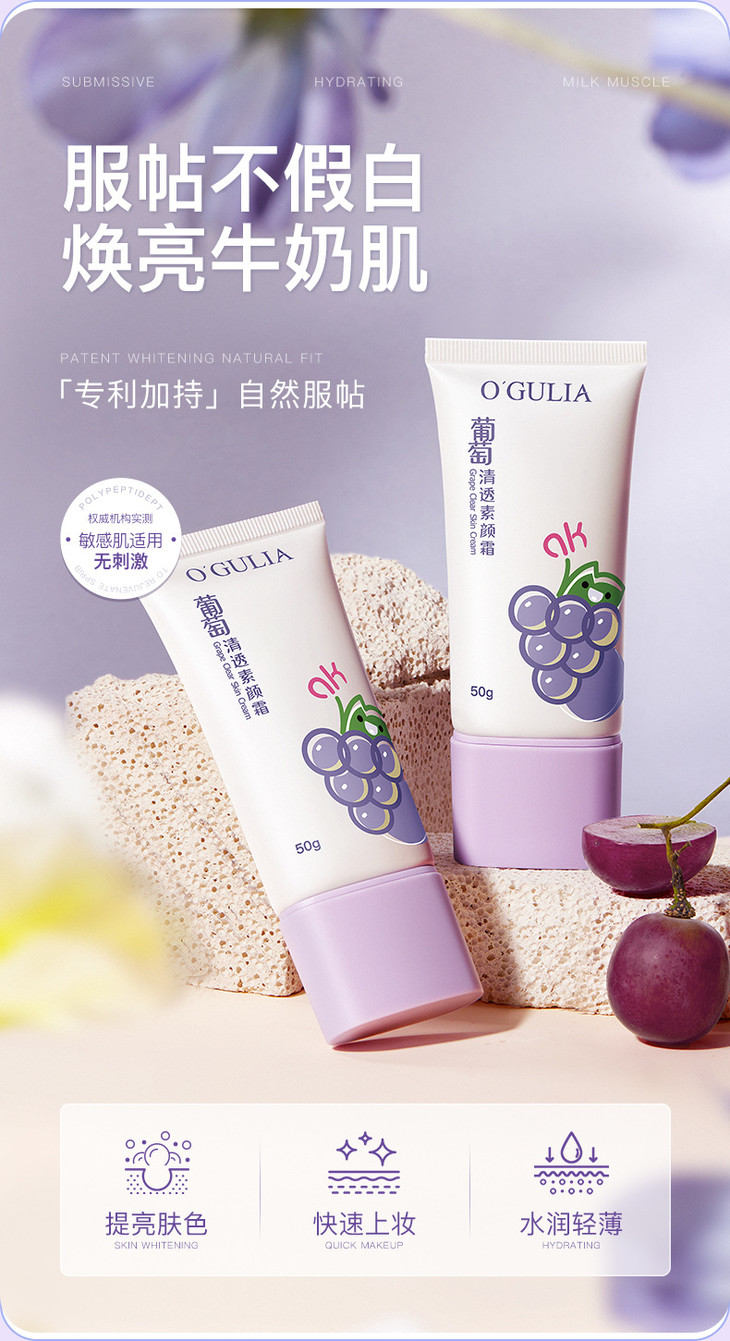 【阿古丽娅葡萄清透素颜霜】懒人霜不假白裸妆遮瑕面霜保湿提亮