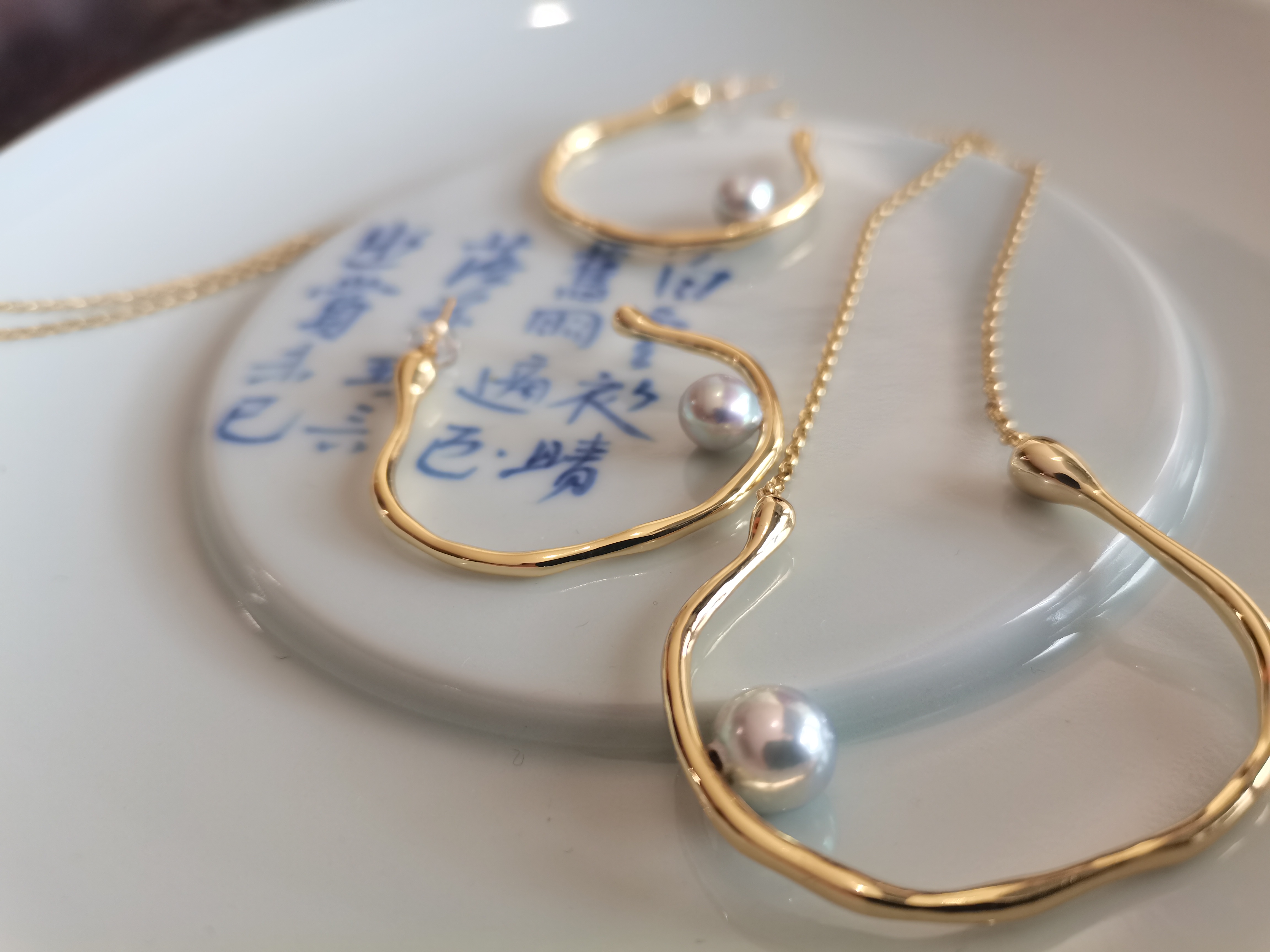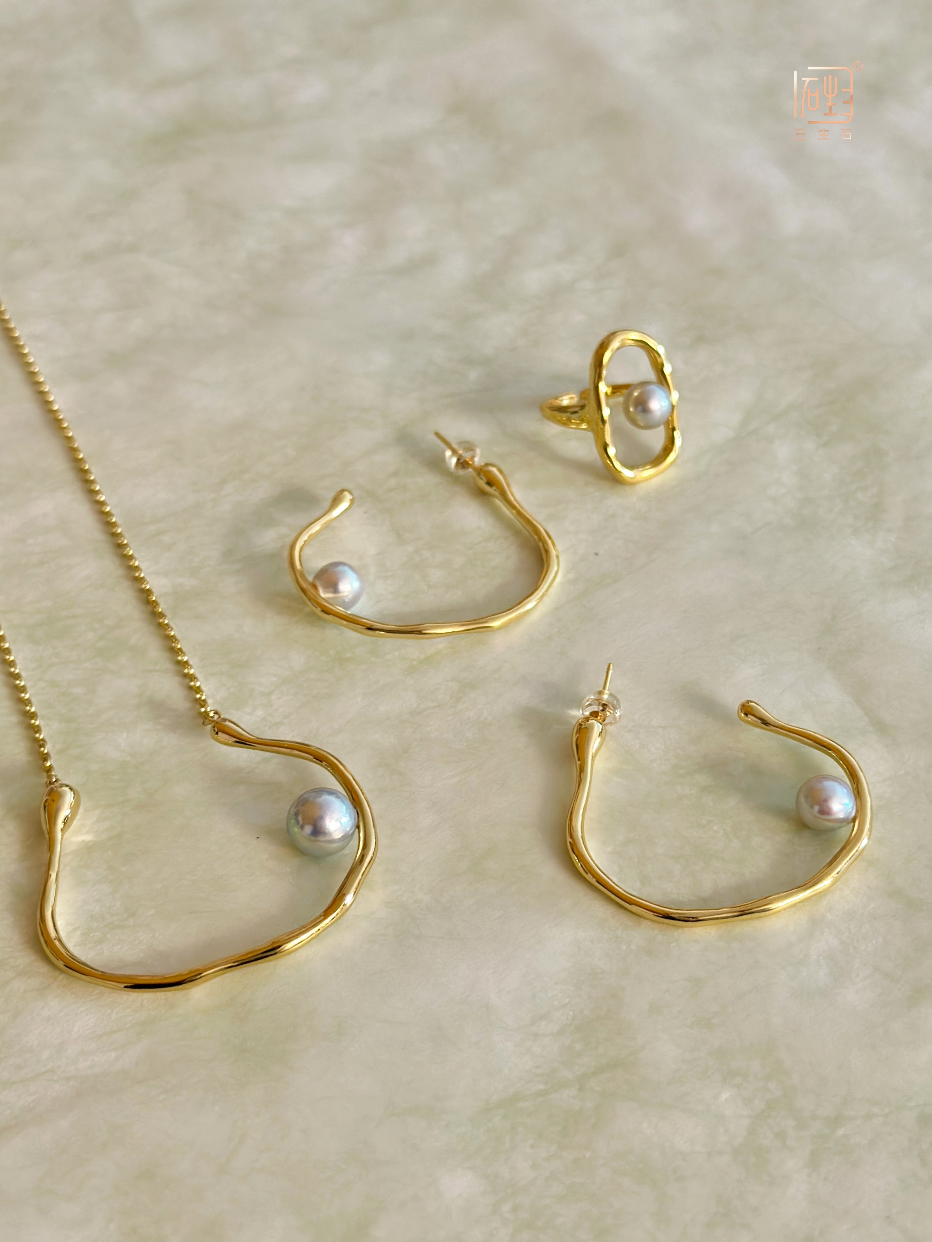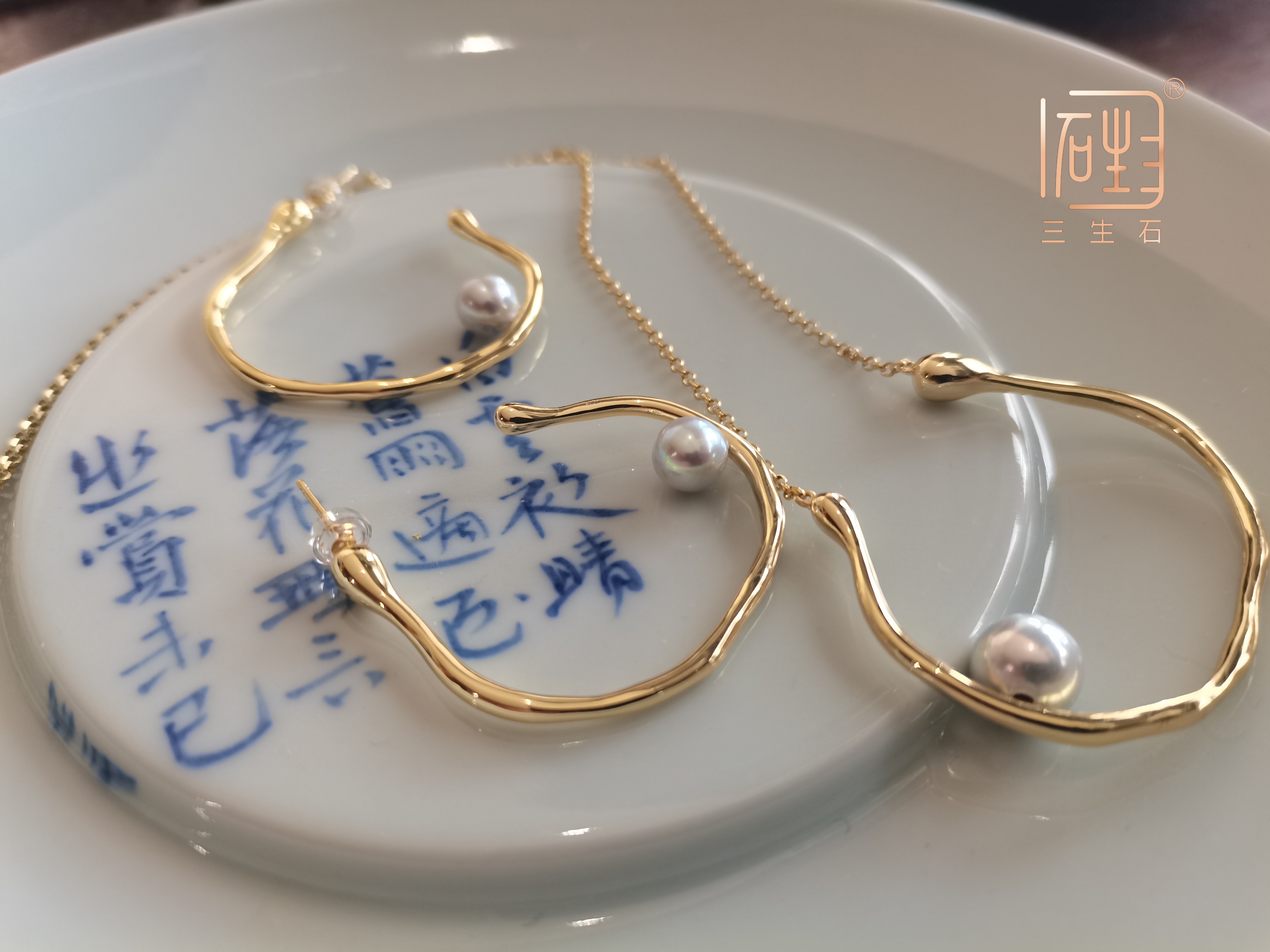 不规则的金色金属搭配彩晕金属灰色的海水真多麻珍珠
