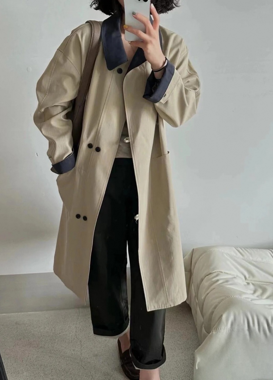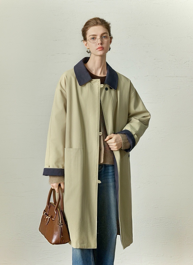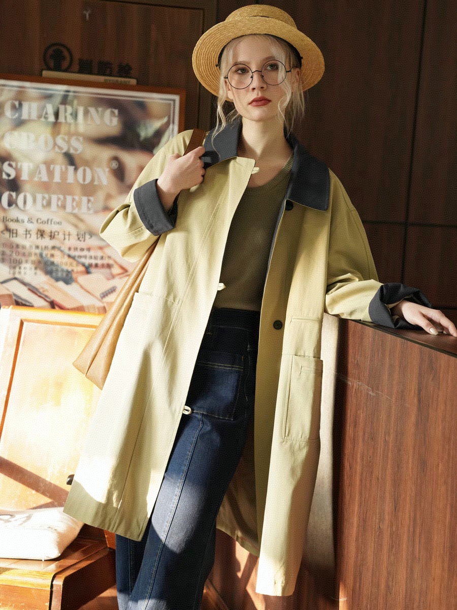 【**谷同款】莱赛尔英伦风宽松拼接风衣女外[品牌原单]