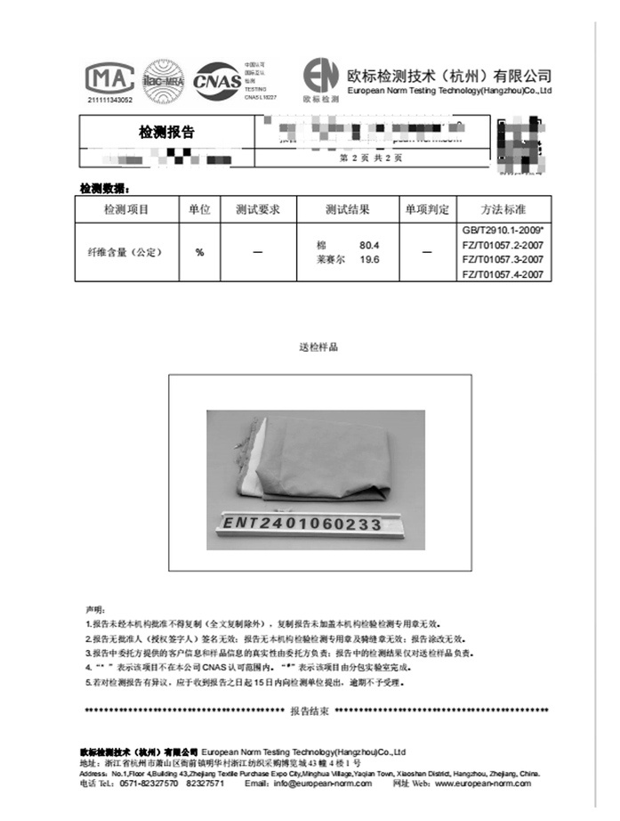 面料80%新疆长绒棉+20%莱赛尔纤维
