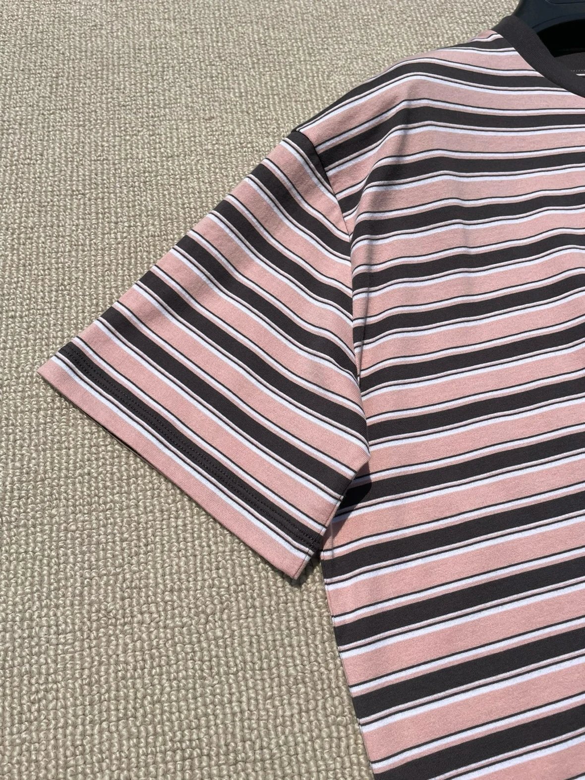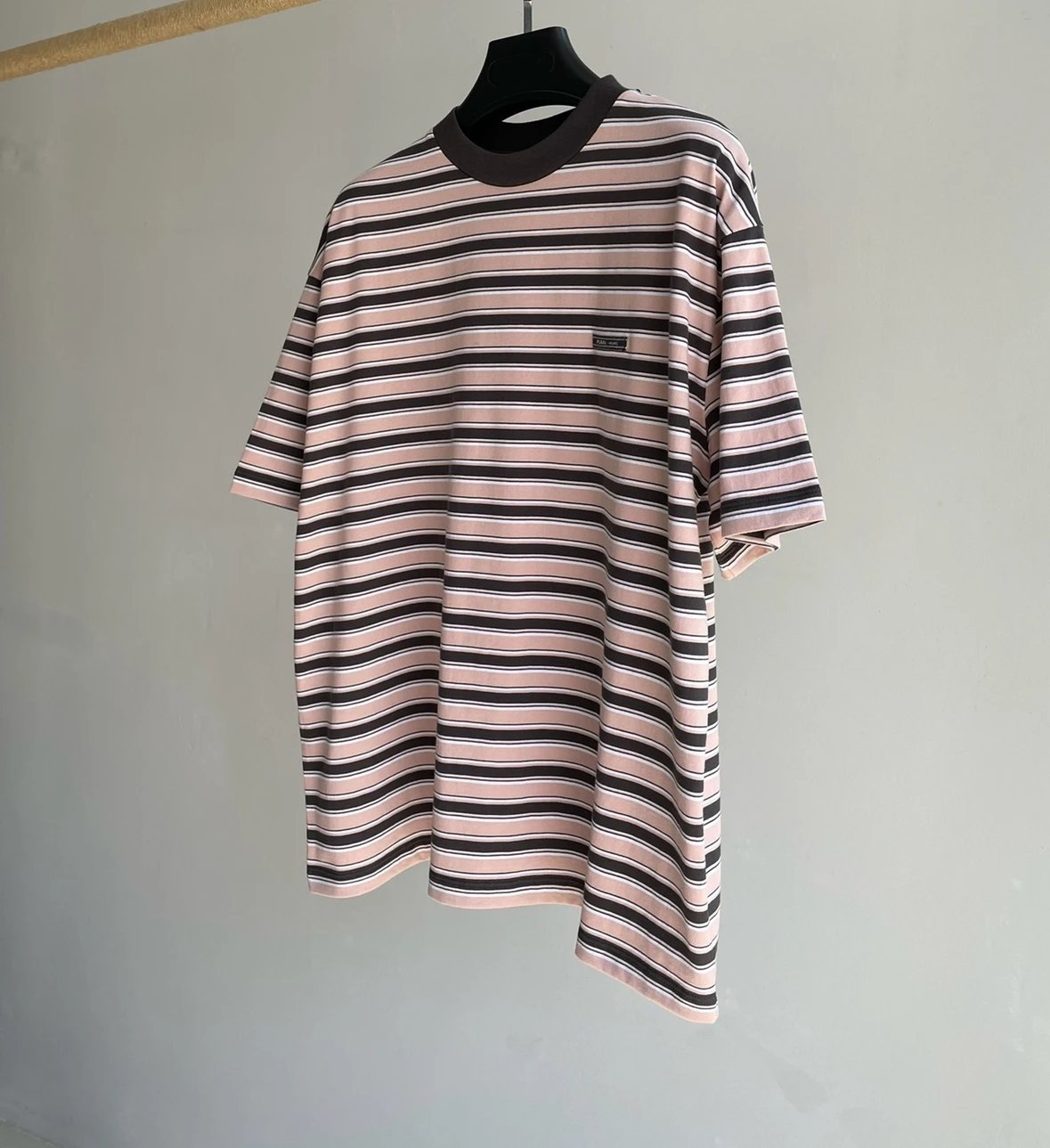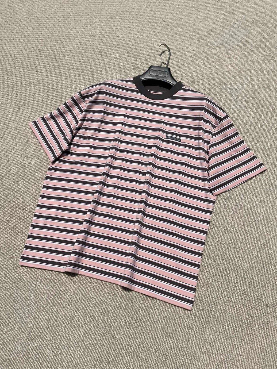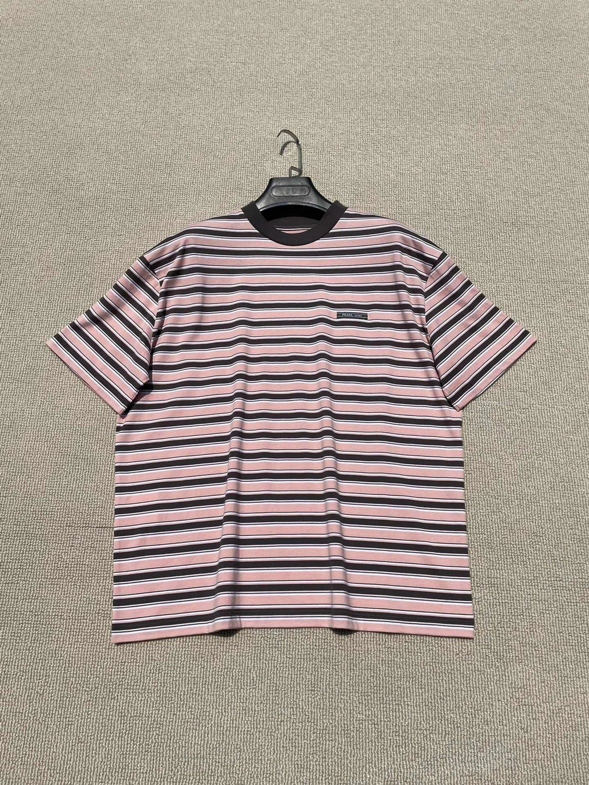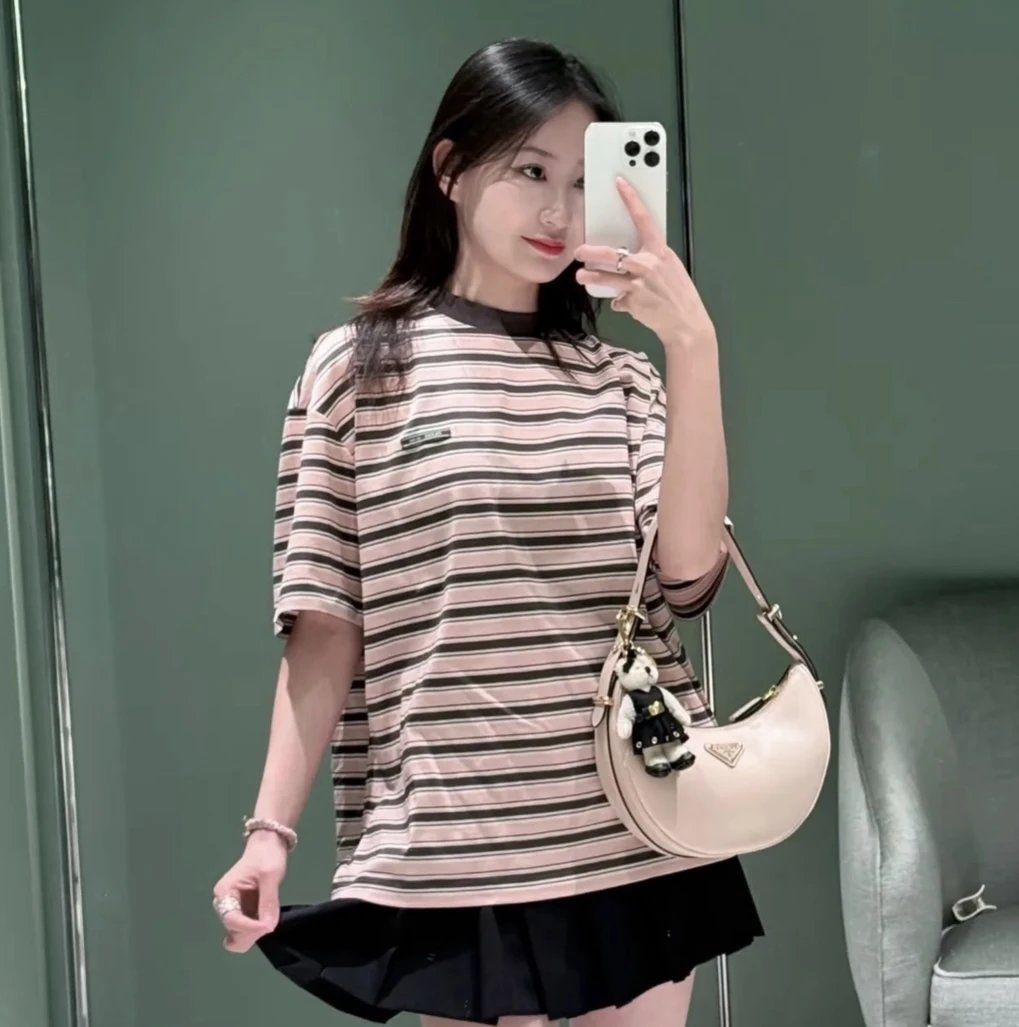 重磅渠道 PD粉咖条纹短袖T恤 男女同款 宽松短袖T恤