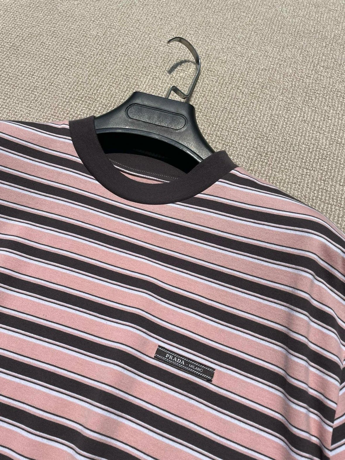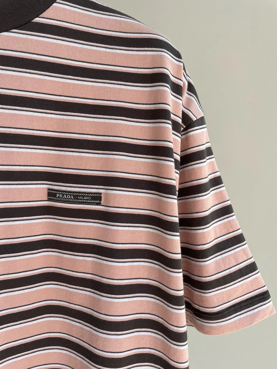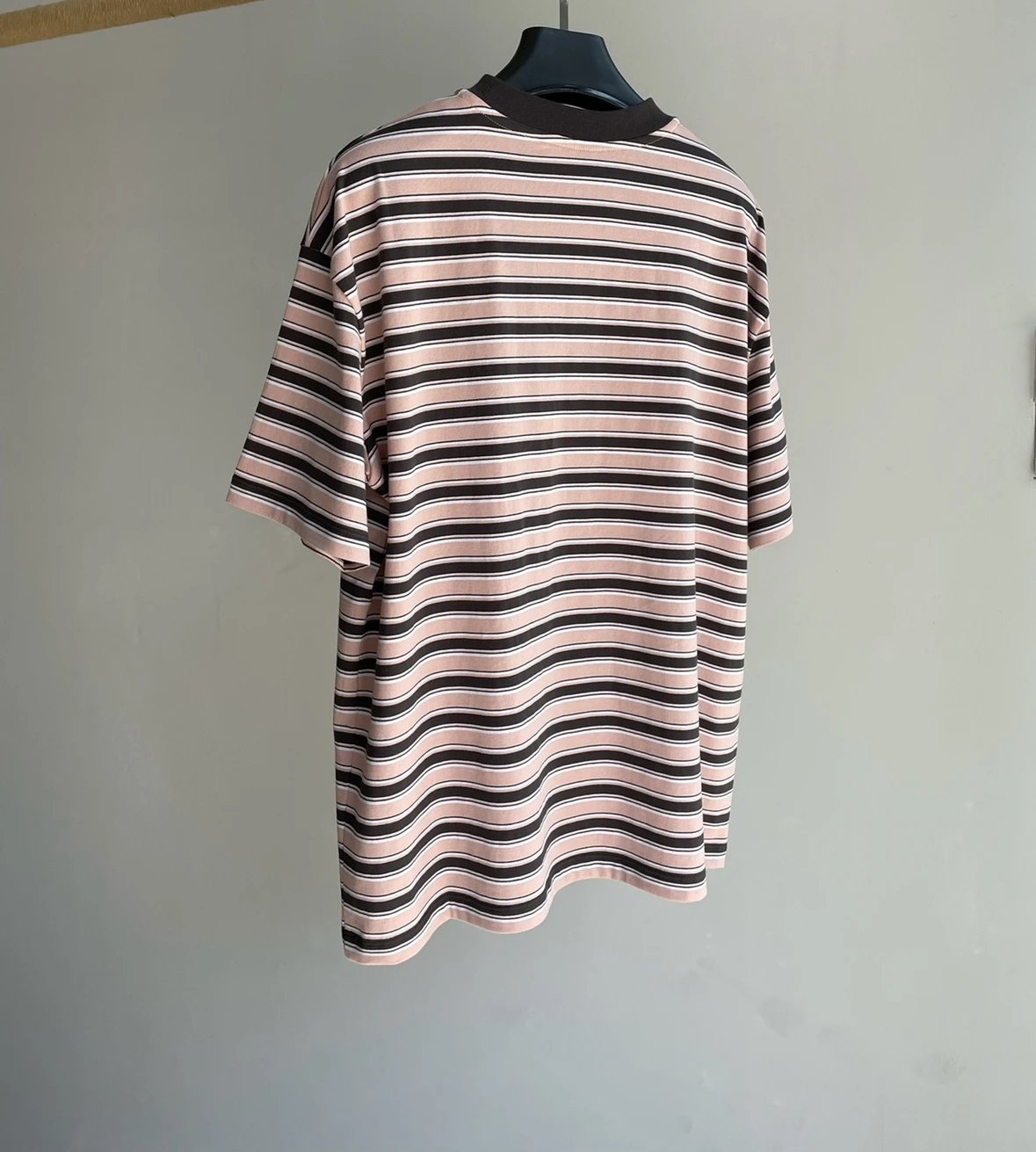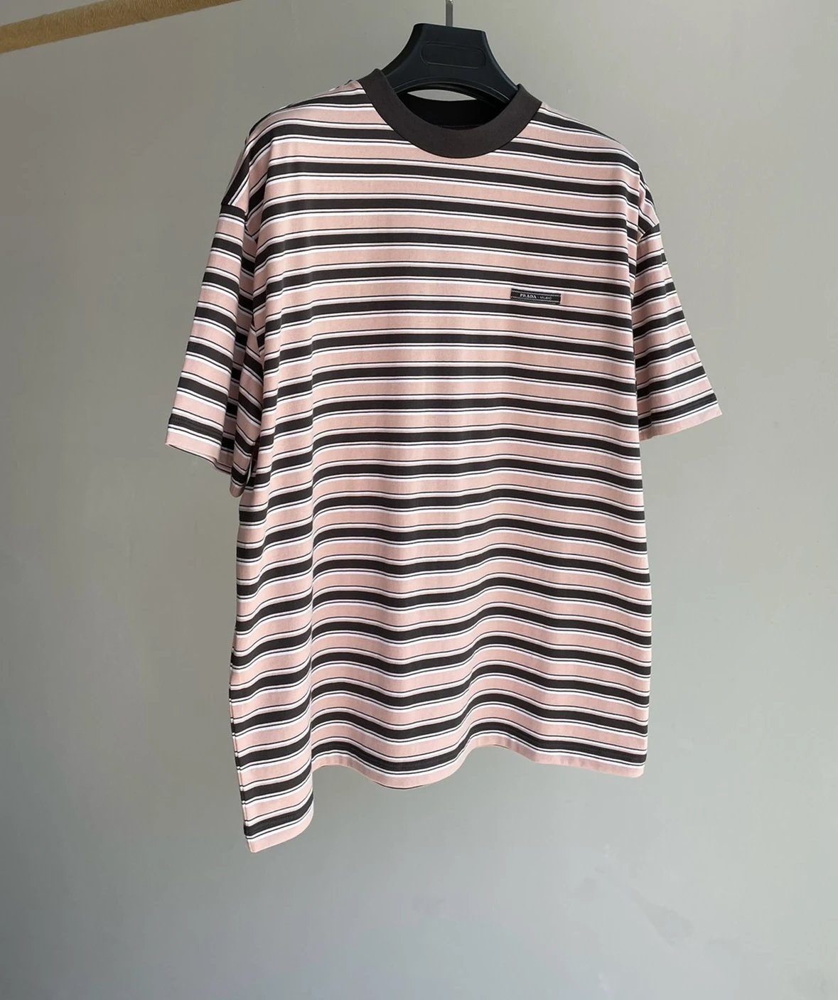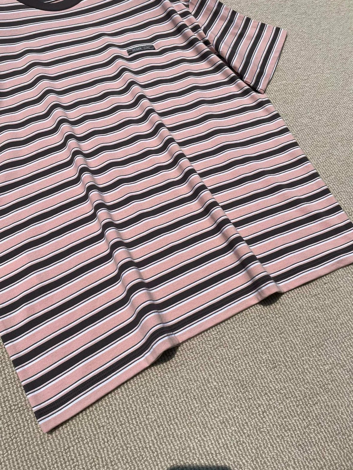 重磅渠道 PD粉咖条纹短袖T恤 男女同款 宽松短袖T恤