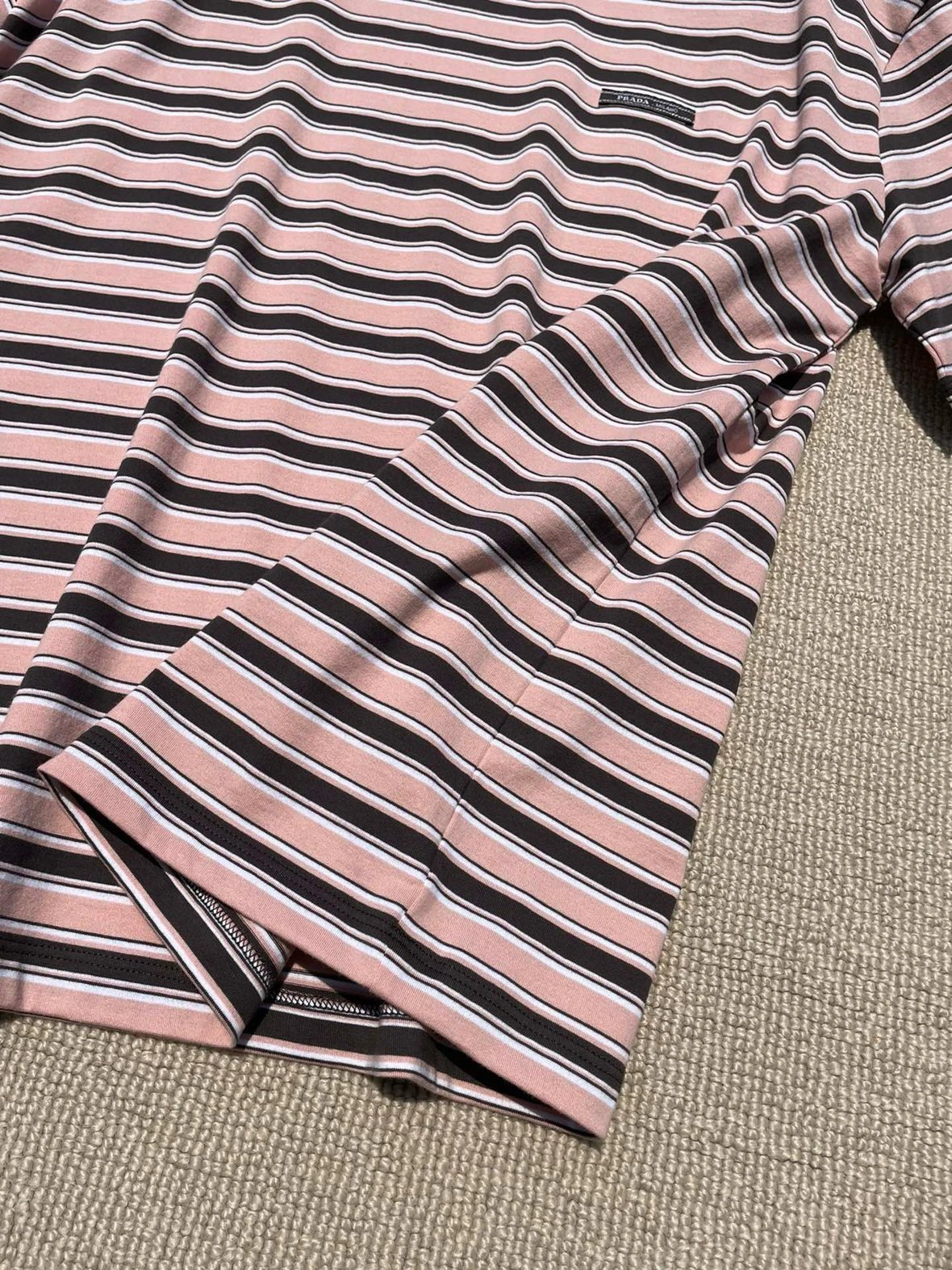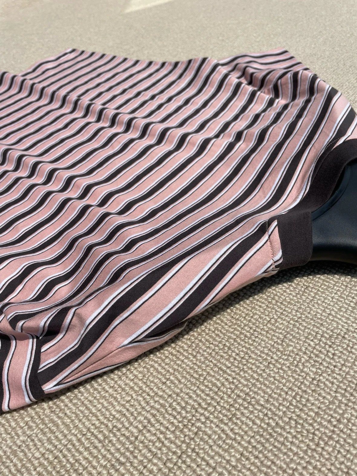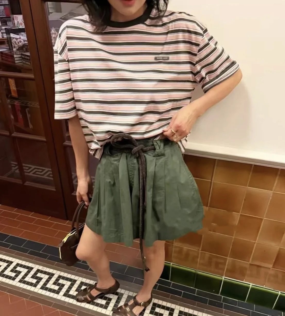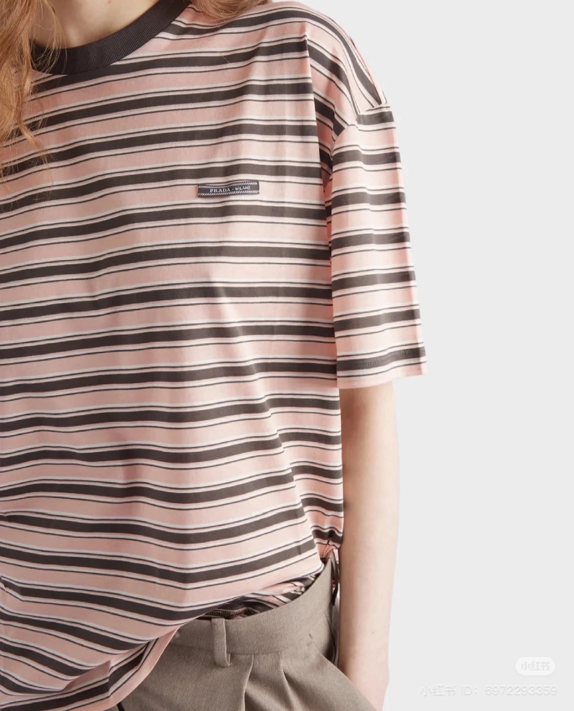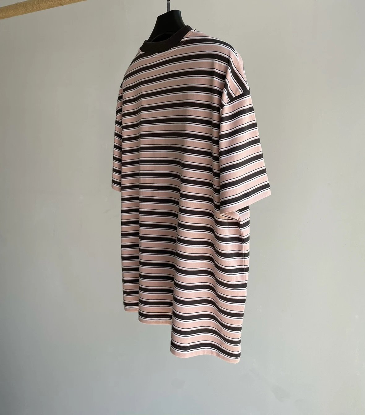 重磅渠道 PD粉咖条纹短袖T恤 男女同款 宽松短袖T恤