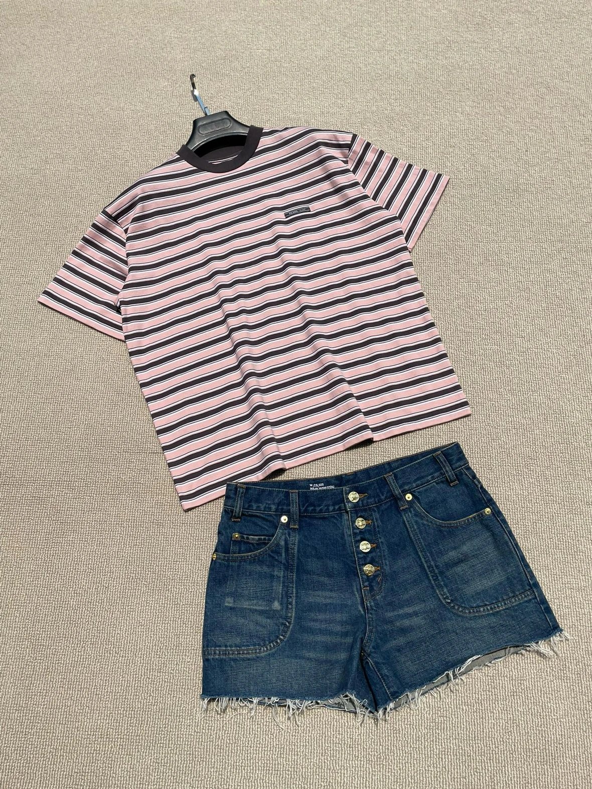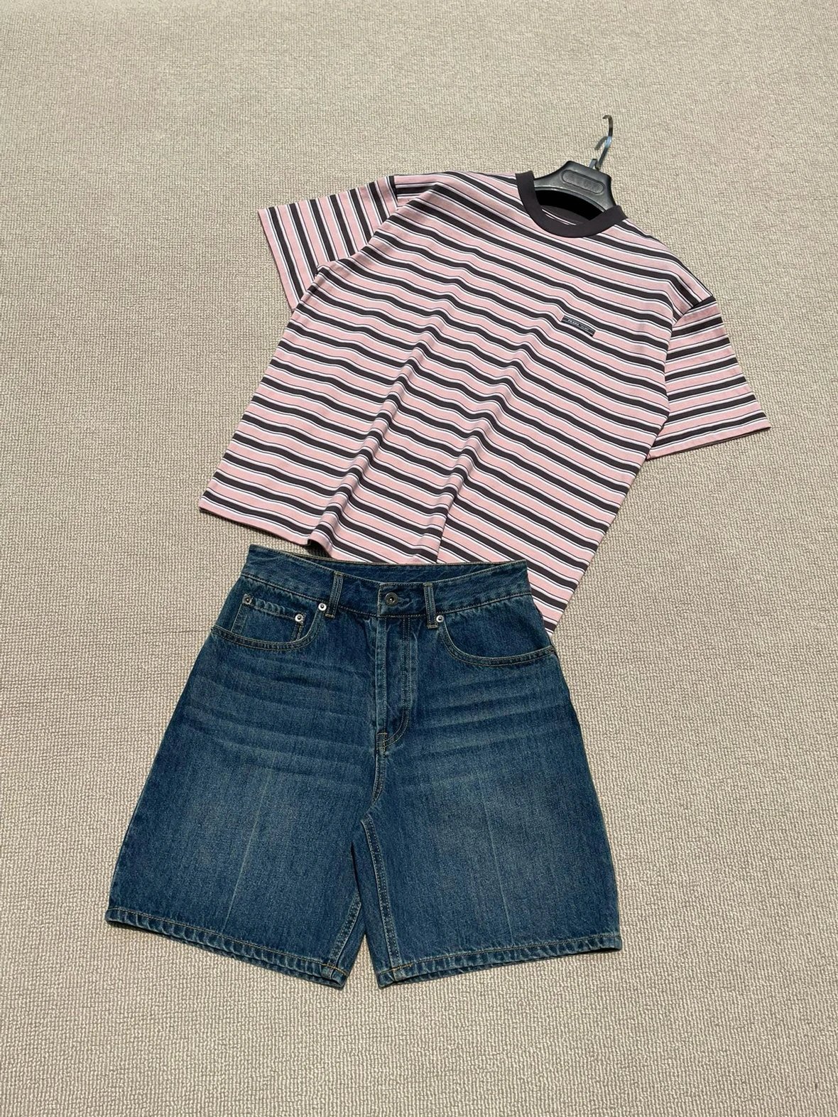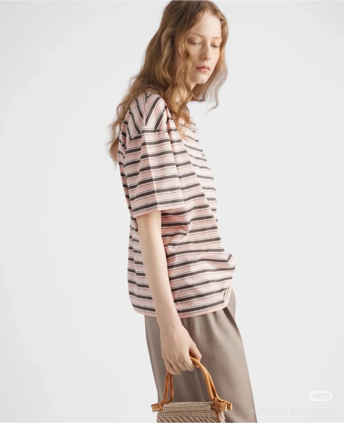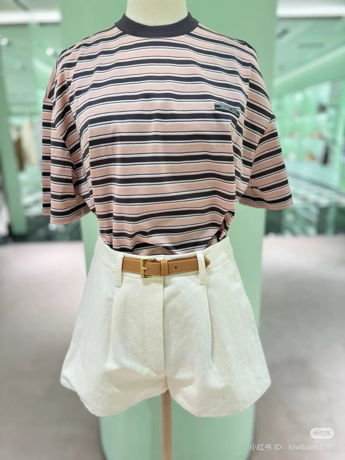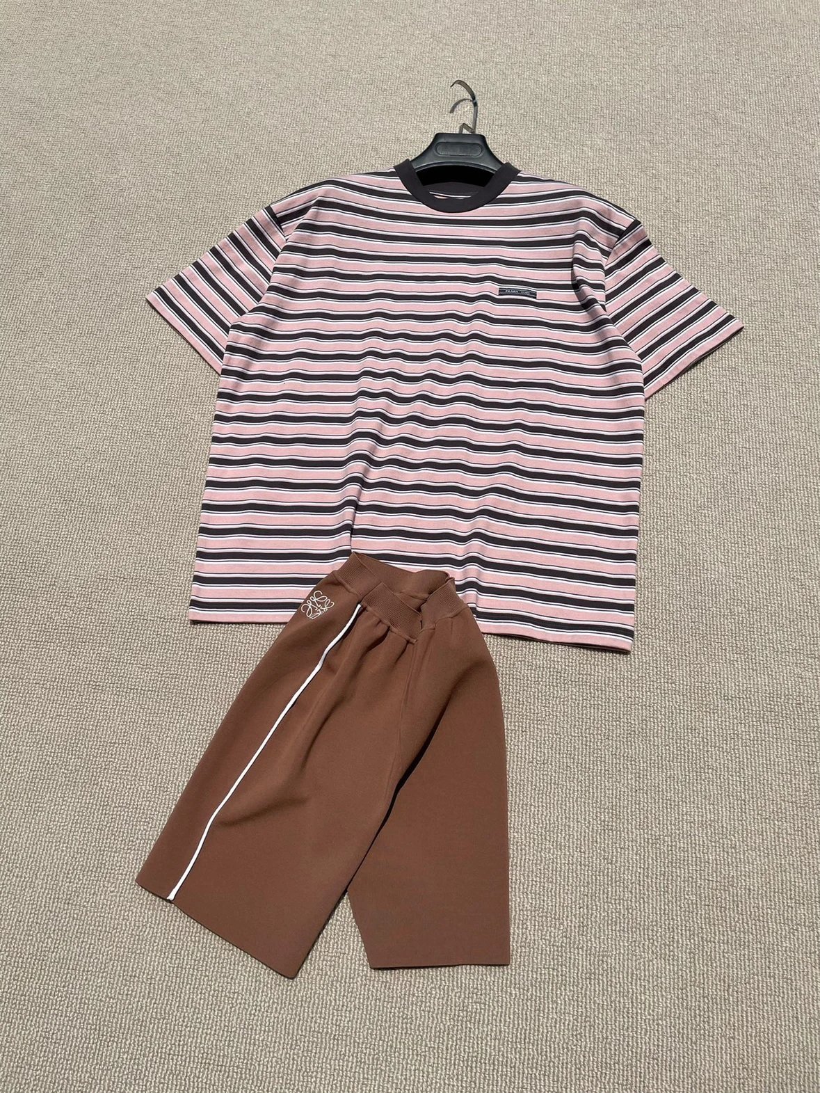 重磅渠道 PD粉咖条纹短袖T恤 男女同款 宽松短袖T恤