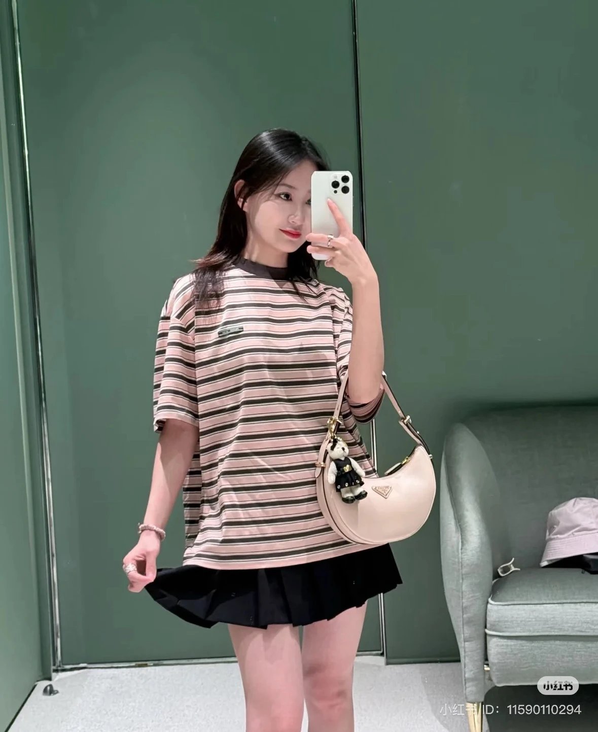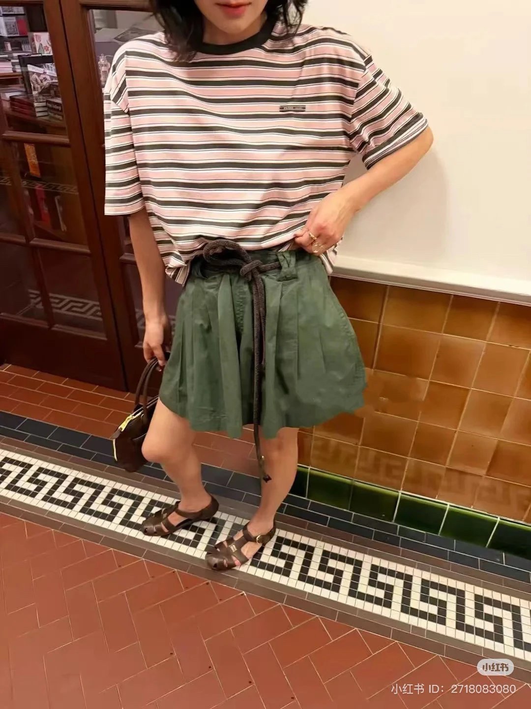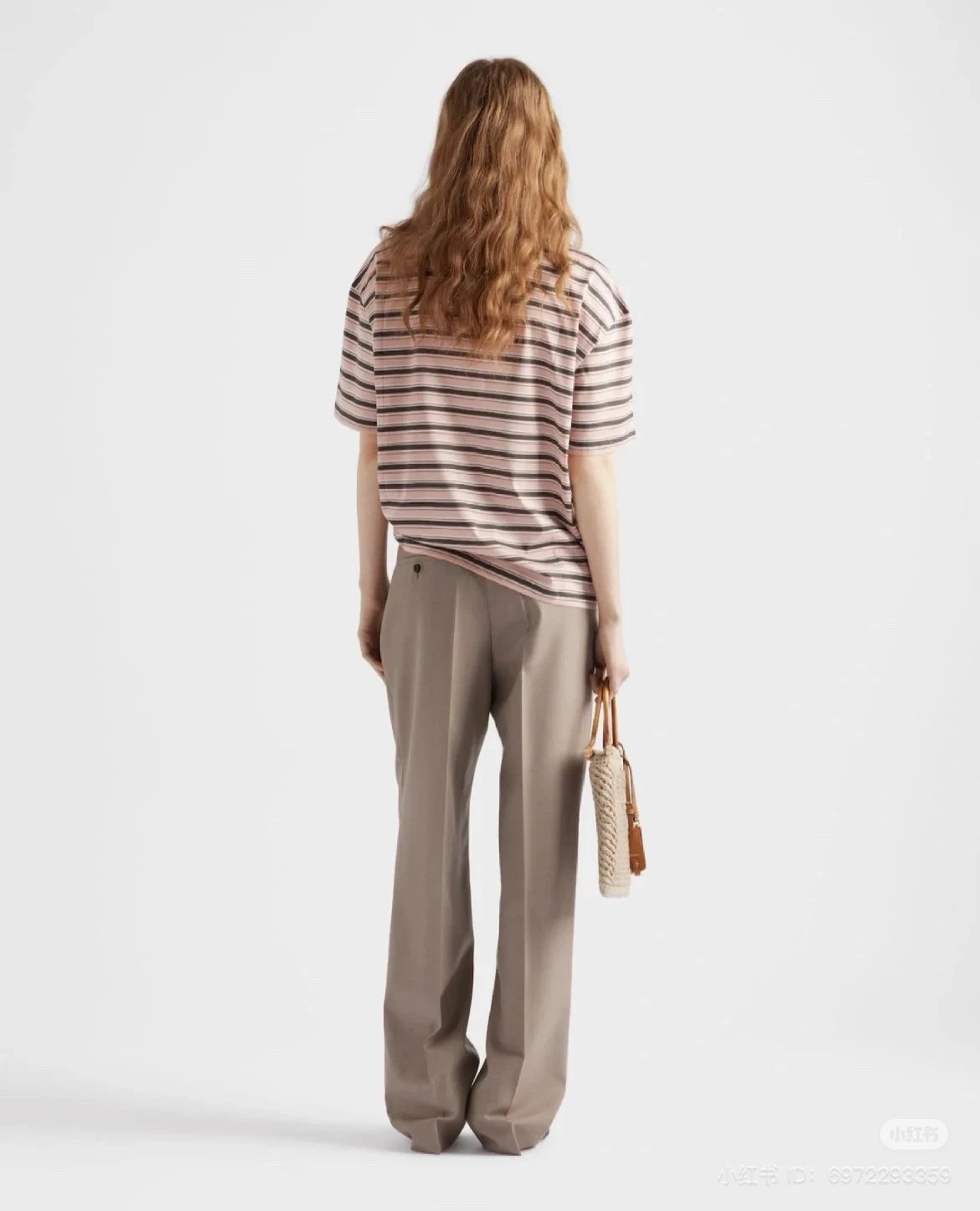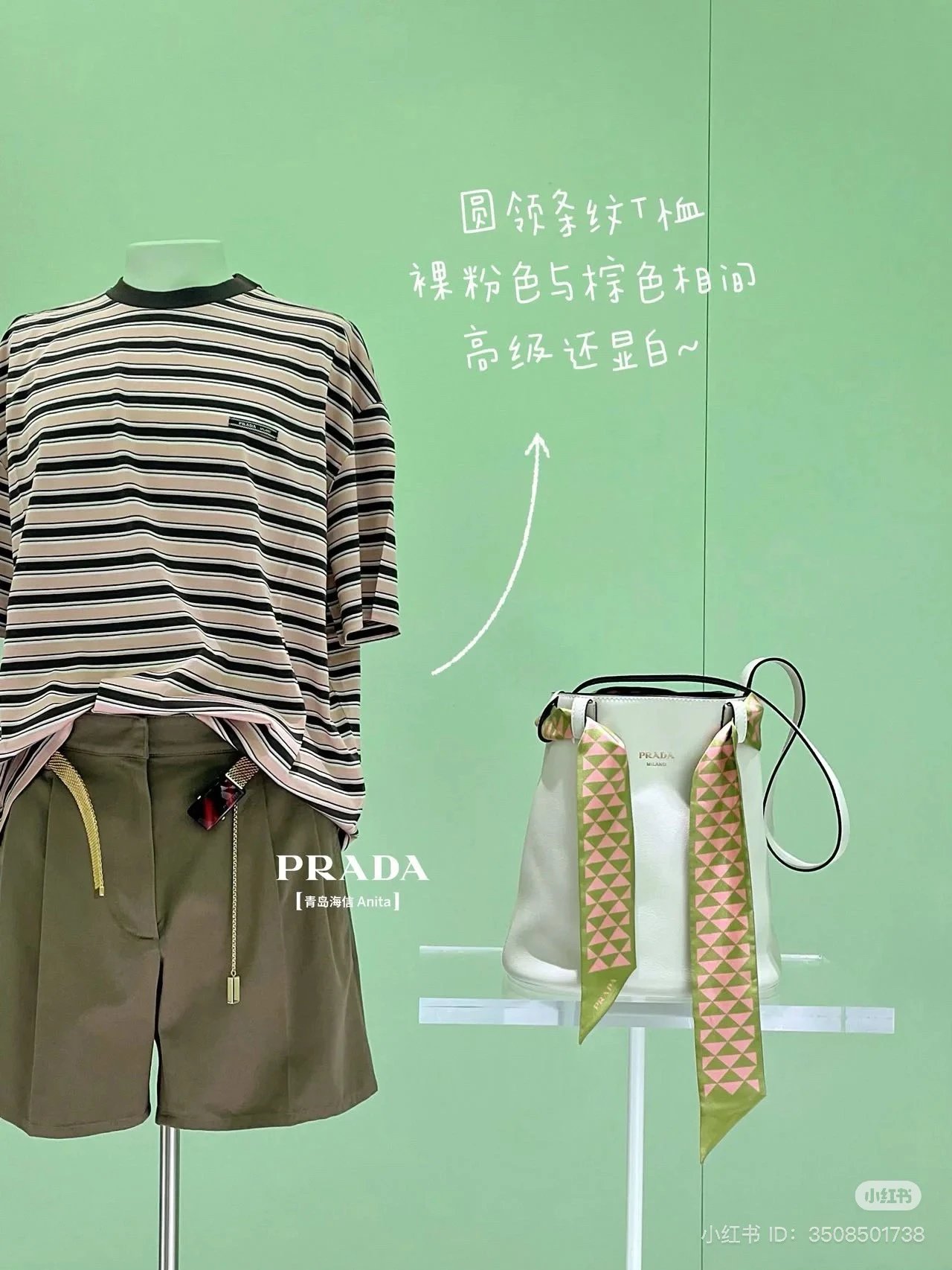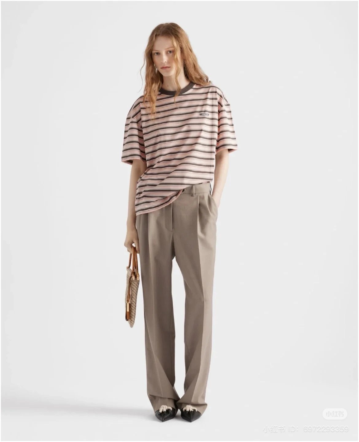 重磅渠道 PD粉咖条纹短袖T恤 男女同款 宽松短袖T恤
