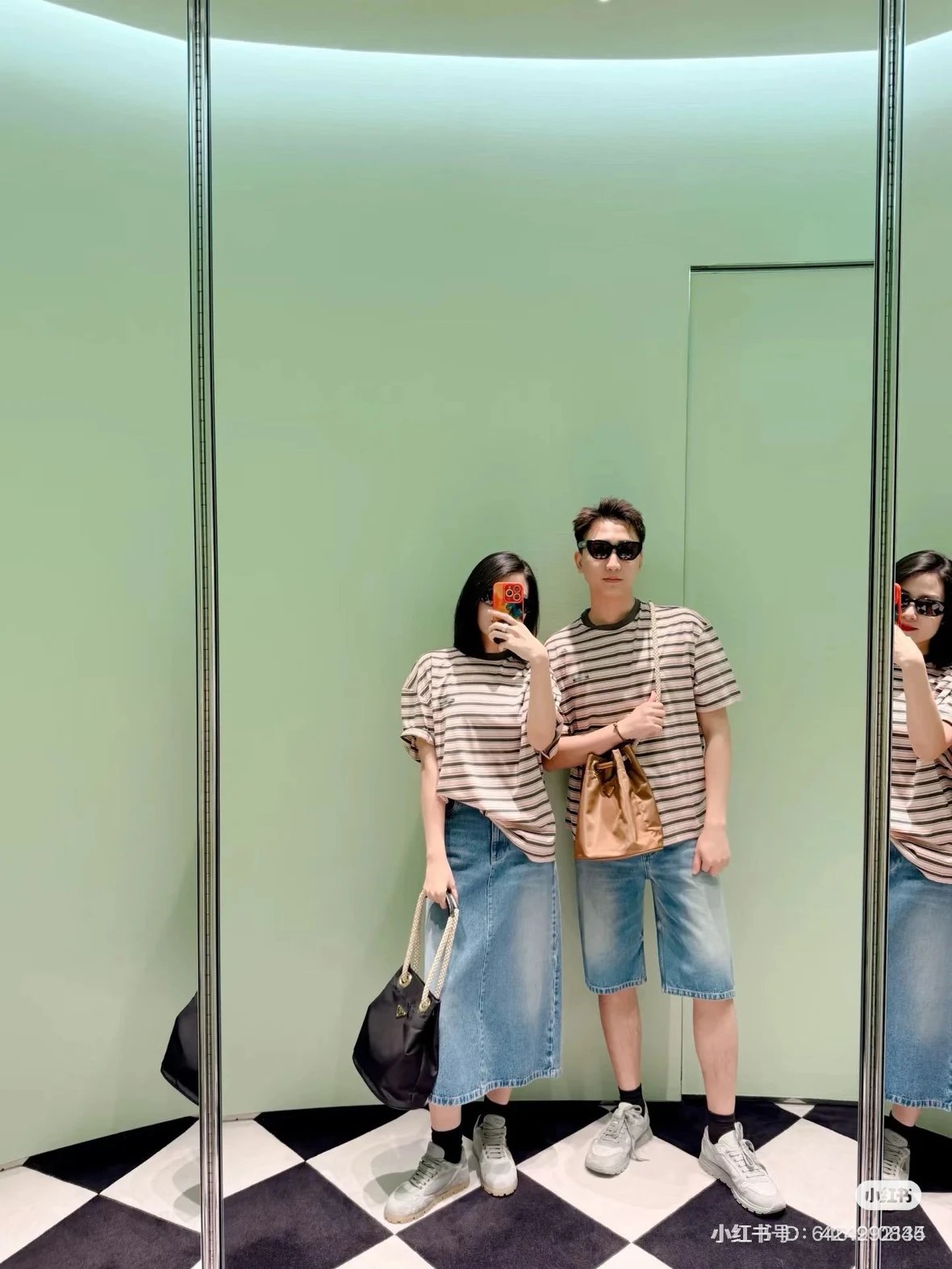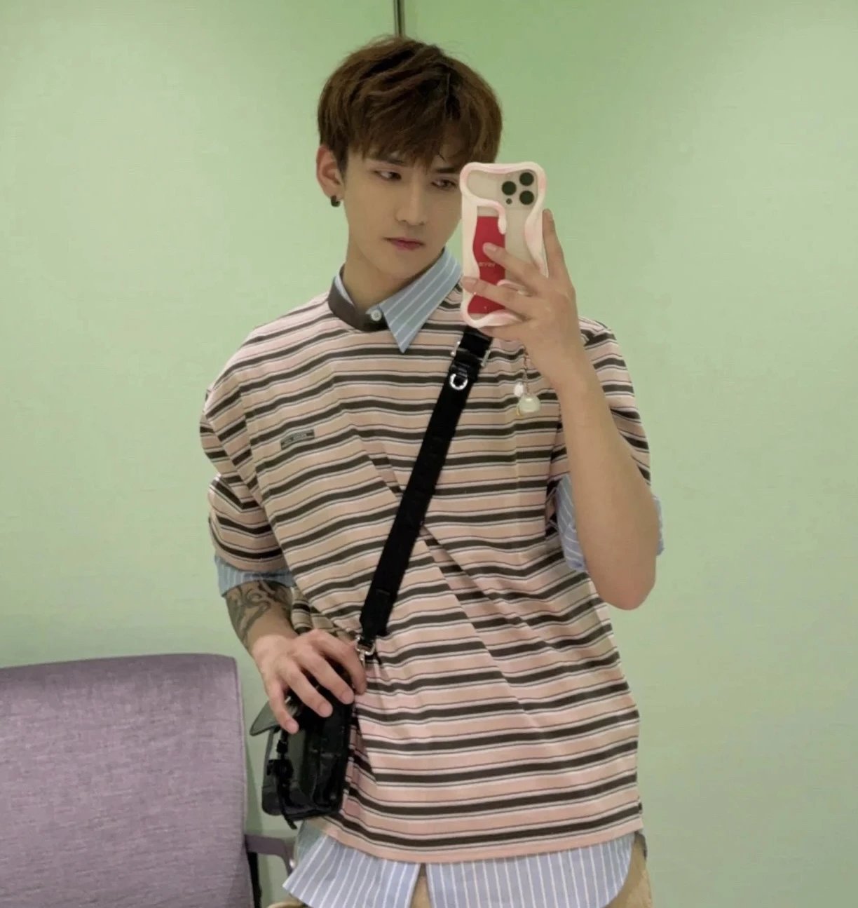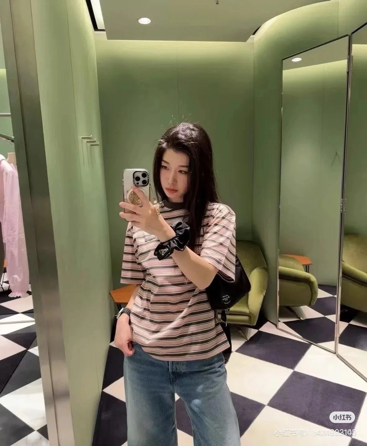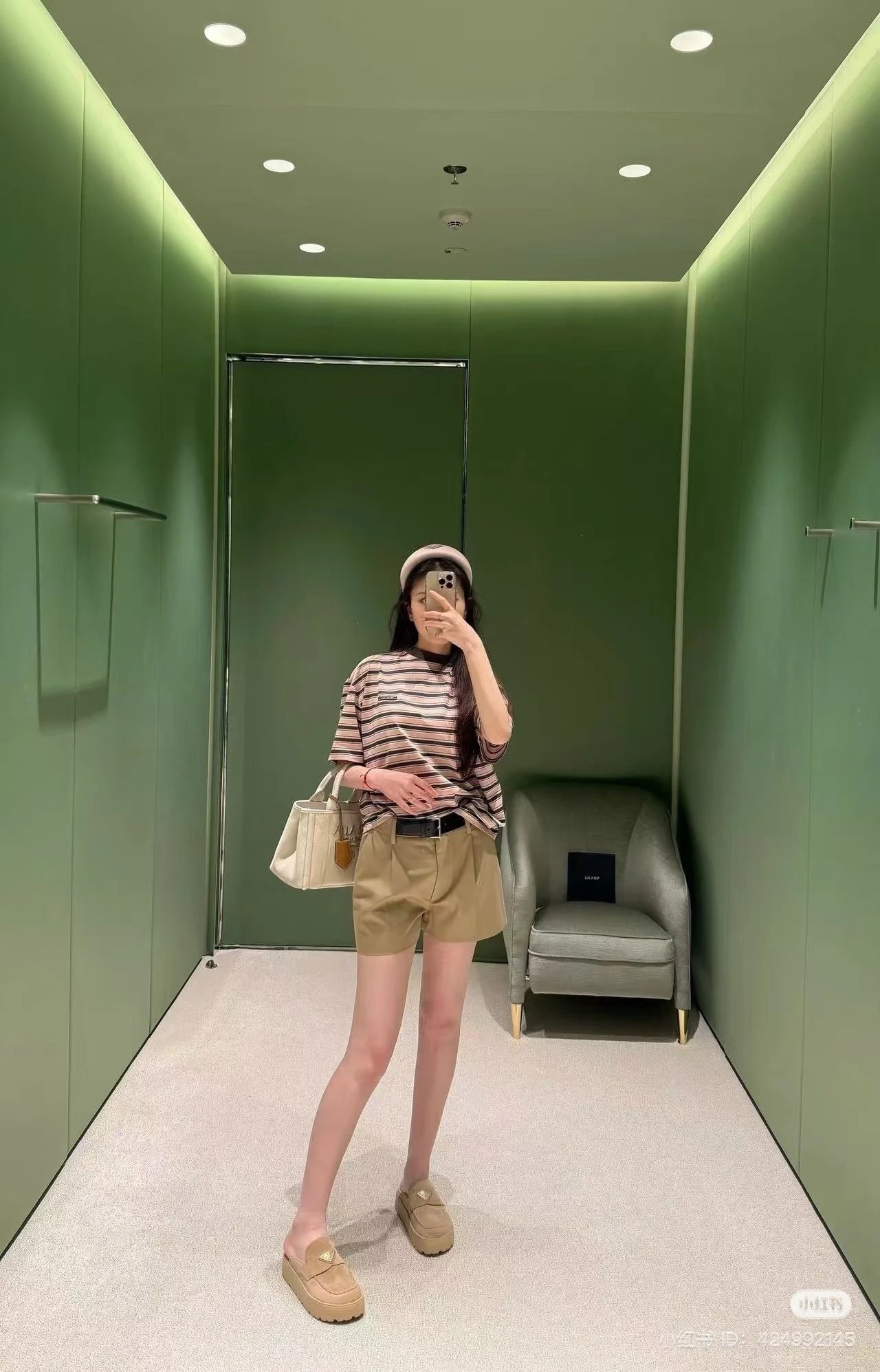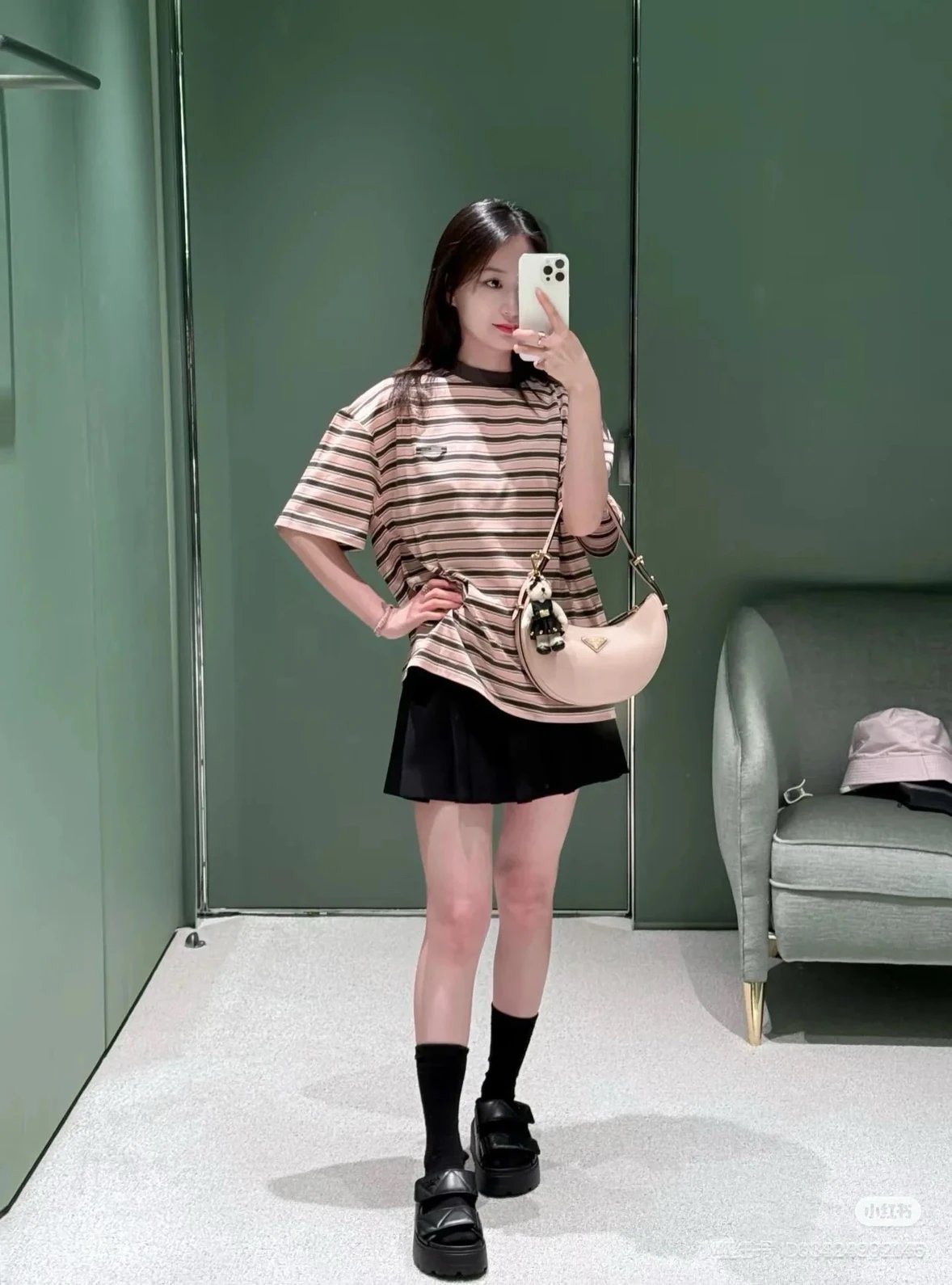 重磅渠道 PD粉咖条纹短袖T恤 男女同款 宽松短袖T恤