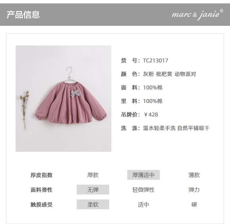 【马克珍妮 法式系列】新款秋装 女童灯芯绒落肩小衫213017