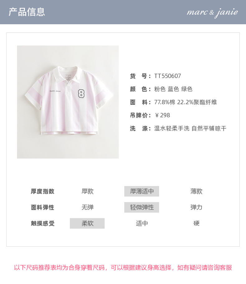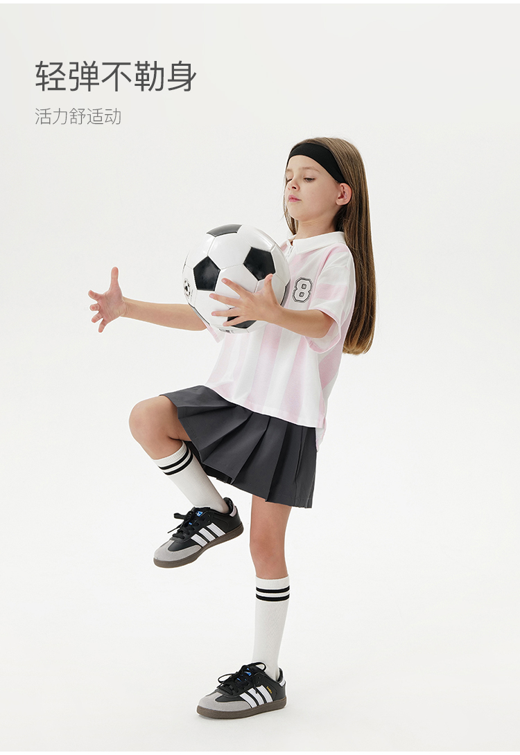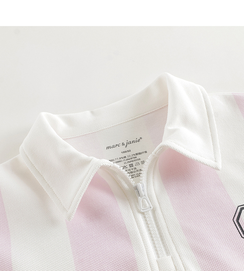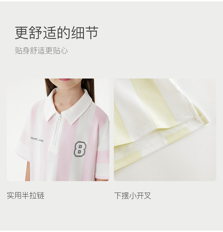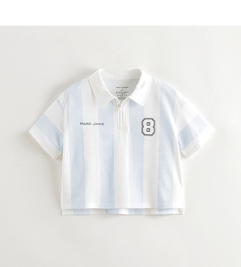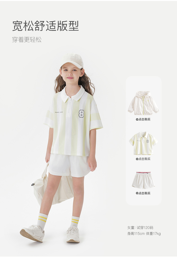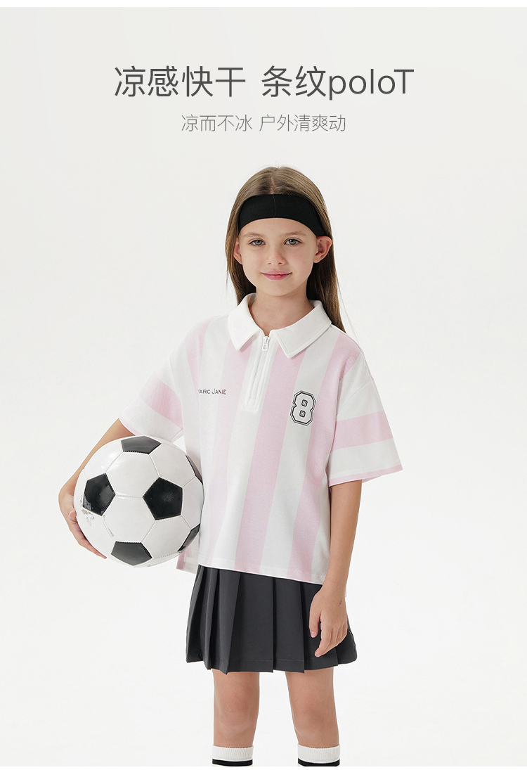 [凉感快干]马克珍妮男女童条纹polo领短袖T恤儿童夏装新款550607