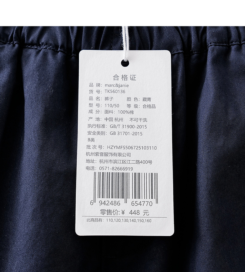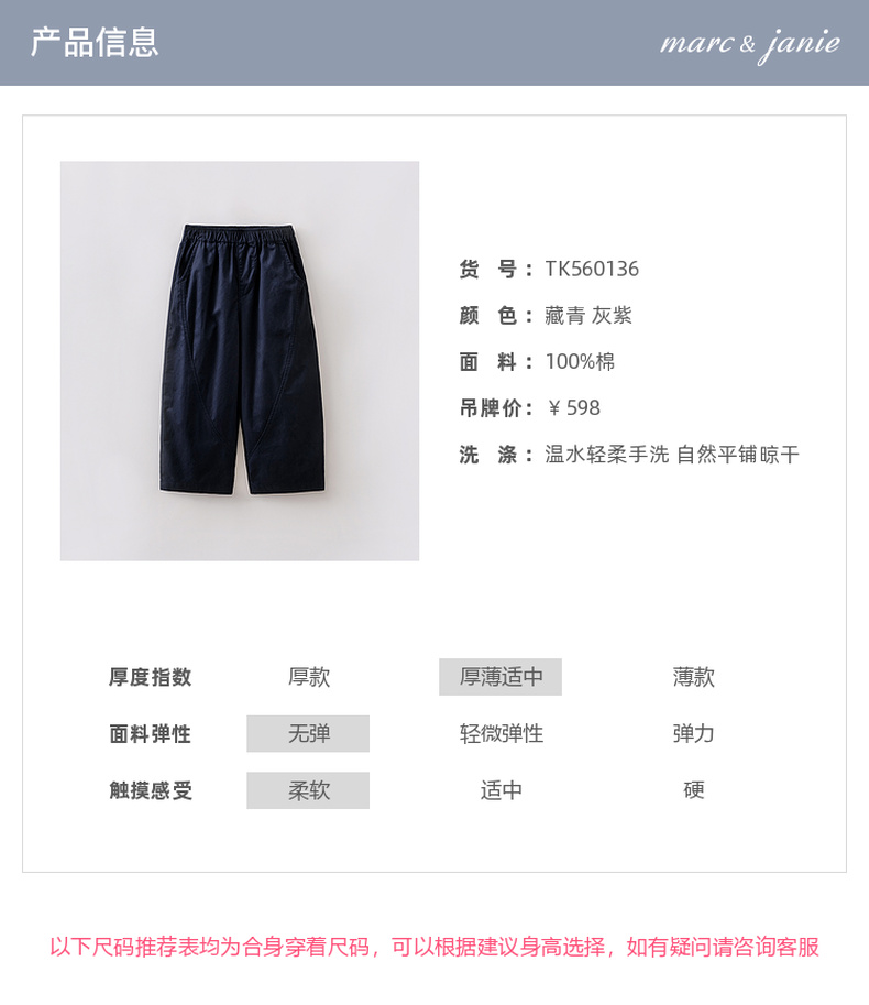 马克珍妮云柔匹马棉男女童百搭弯刀裤2026年春装新款560136