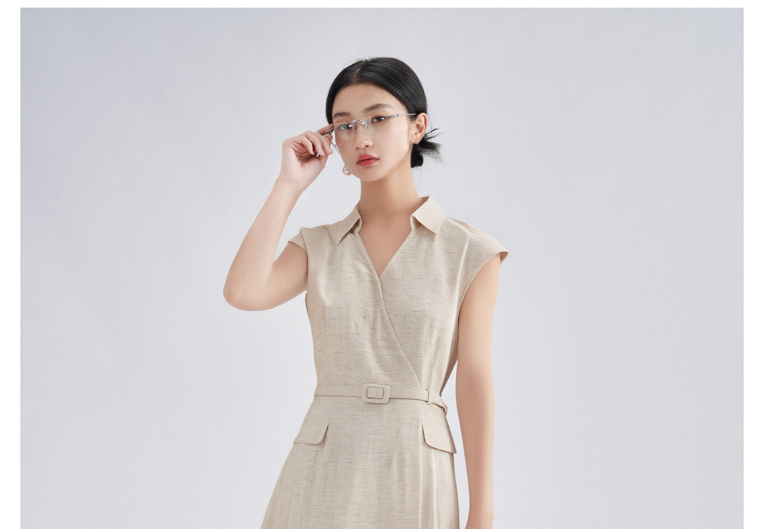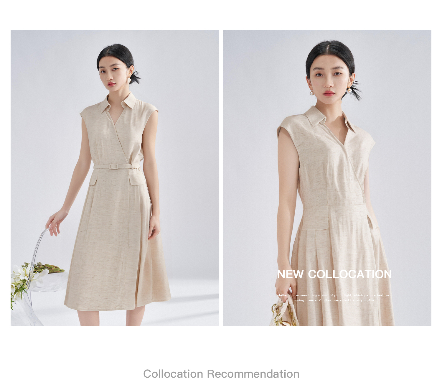 剩S/M/XL 老钱风亚麻衬衫裙 米思阳2025夏季新款知性优雅V领连衣裙高级感裙子1161
