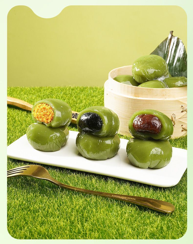【春日福利❗️9.9抢6枚🔥艾草青团】草本香,糯叽叽,一口爆浆,咸蛋黄肉松豆沙芝麻清明果糯米团特产糕点