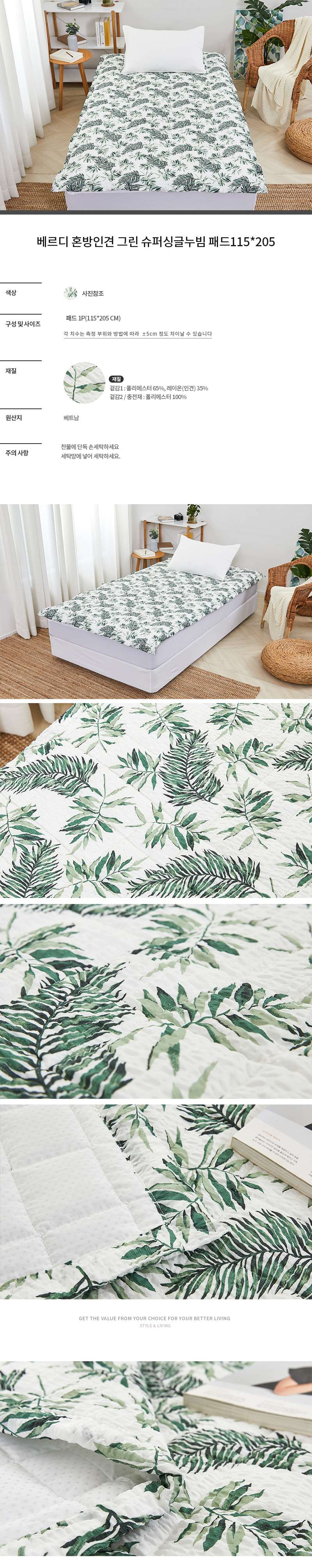 [现代房屋] 新款 韩国 混合纤维 绿色 超柔软舒适床垫 115x205CMJPY带授权招加盟代理