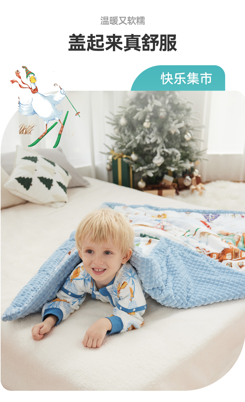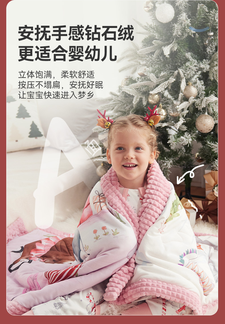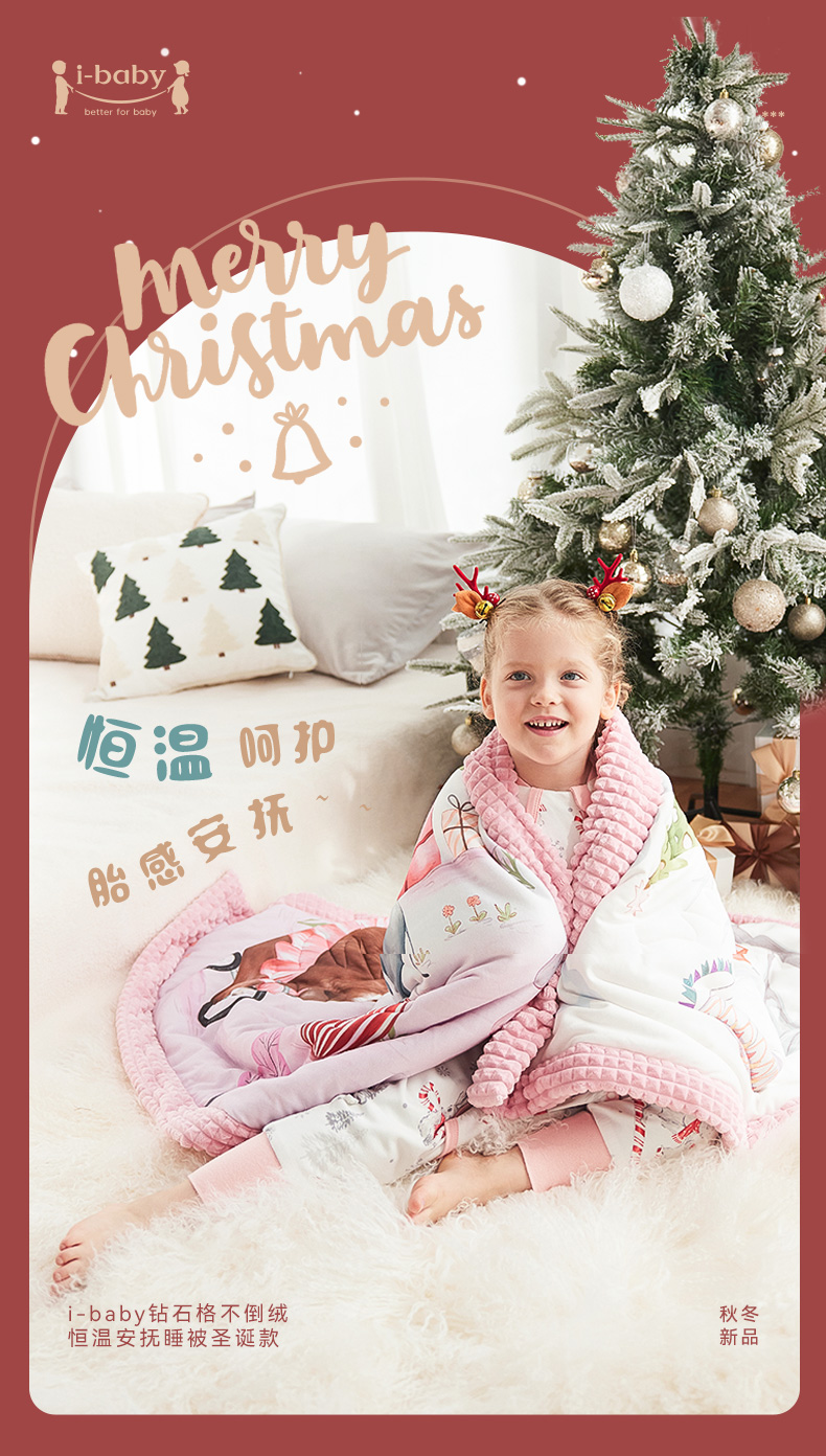【 秒杀179】i-baby 圣诞节日款 钻石格不倒绒儿童安抚睡被 【建议室温14-20℃】