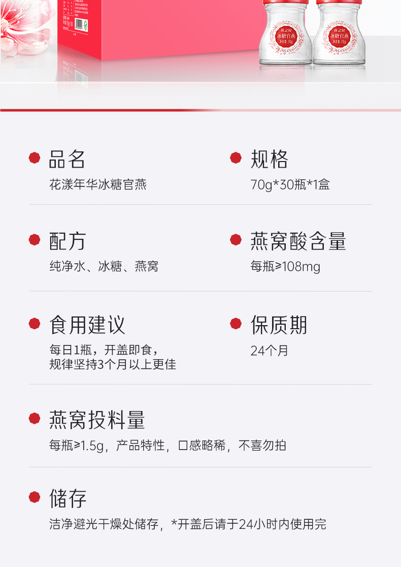 【送礼推荐】燕之屋即食燕窝冰糖官燕花漾礼盒70g*30瓶/盒燕窝溯源滋养日常