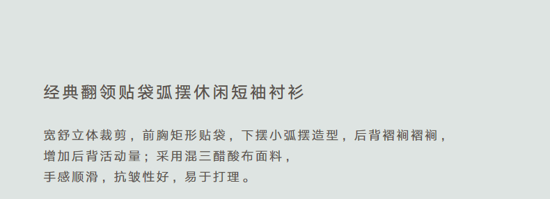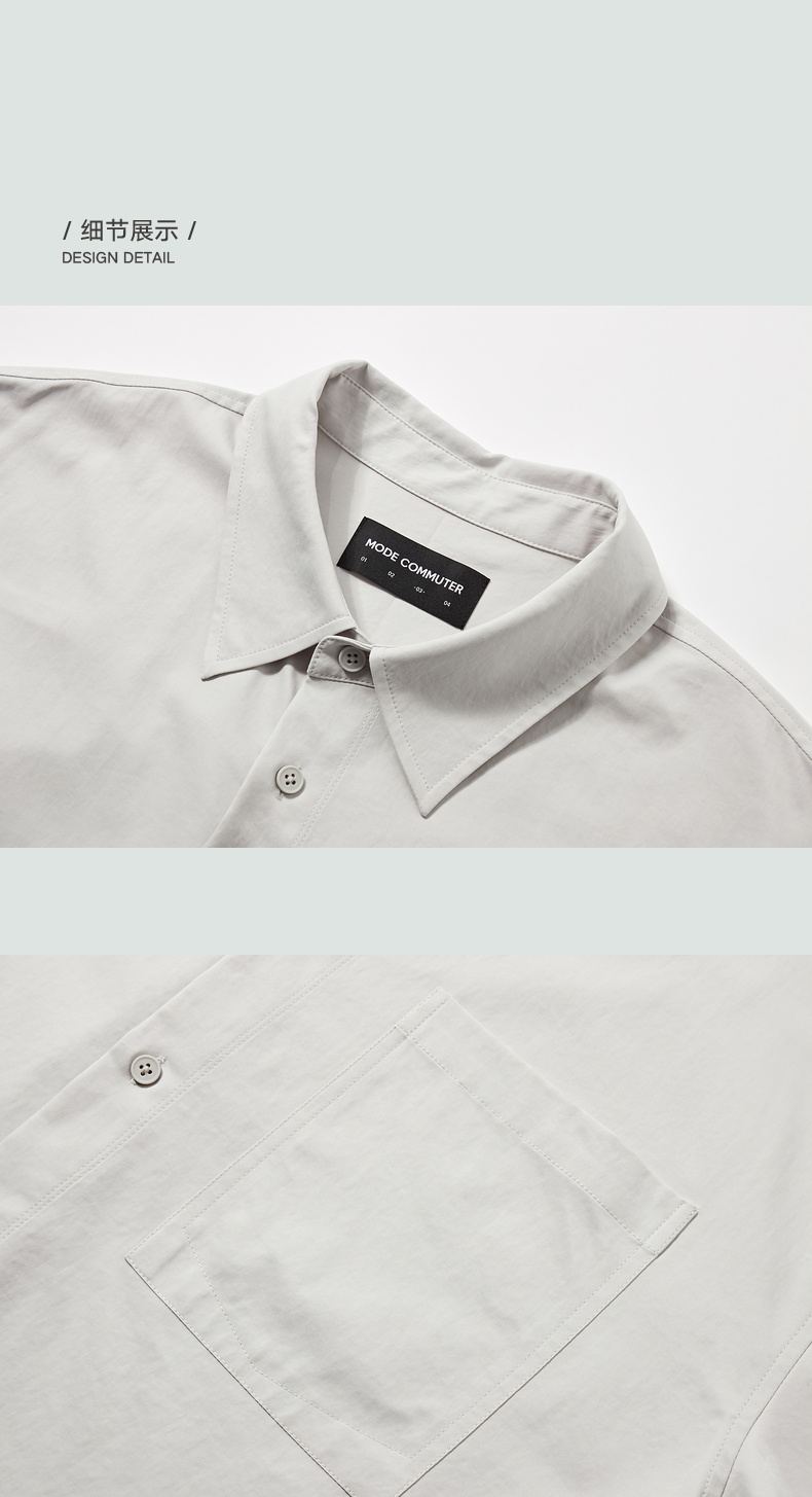 MODE COMMUTER | MC三醋酸经典翻领贴袋弧摆休闲短袖衬衫