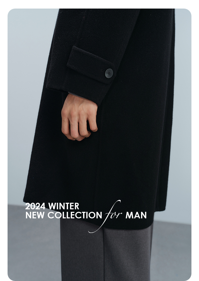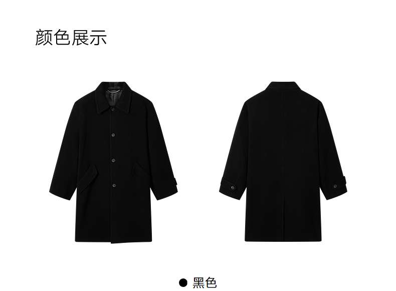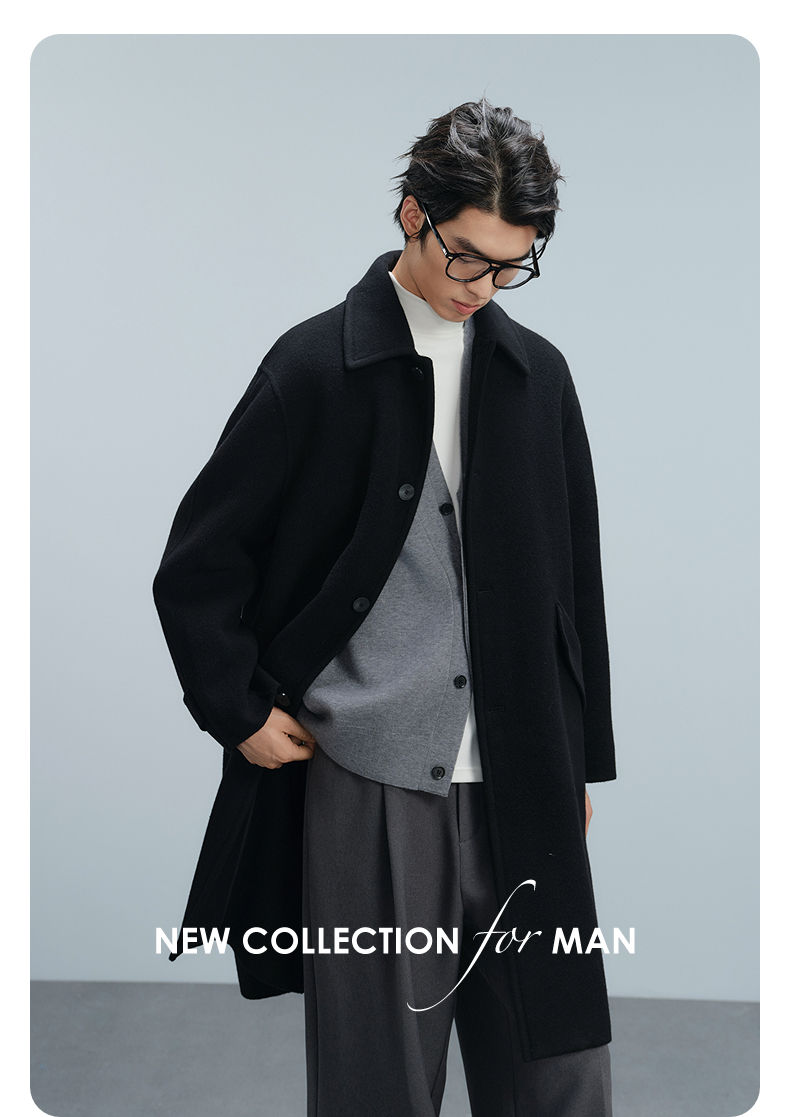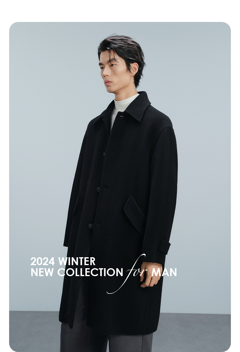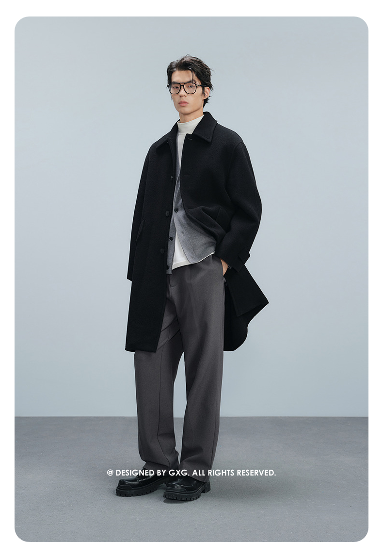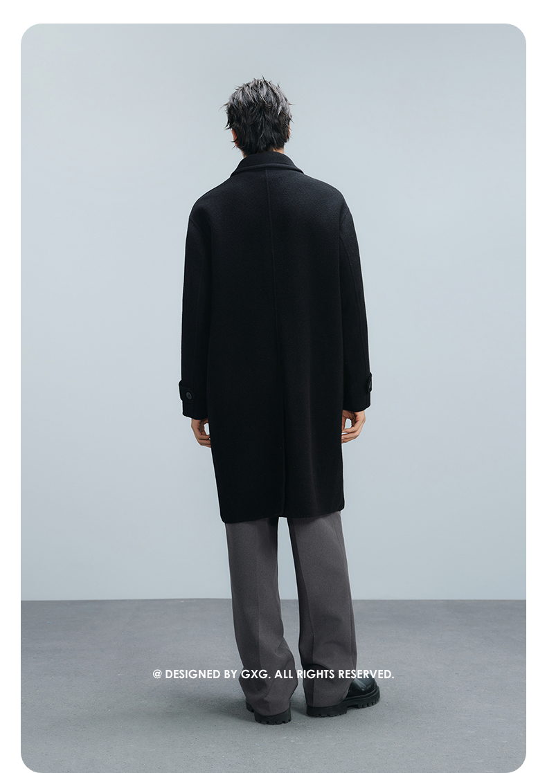 GXG男装 黑色全羊毛通勤长款大衣 24冬热卖G24X264001