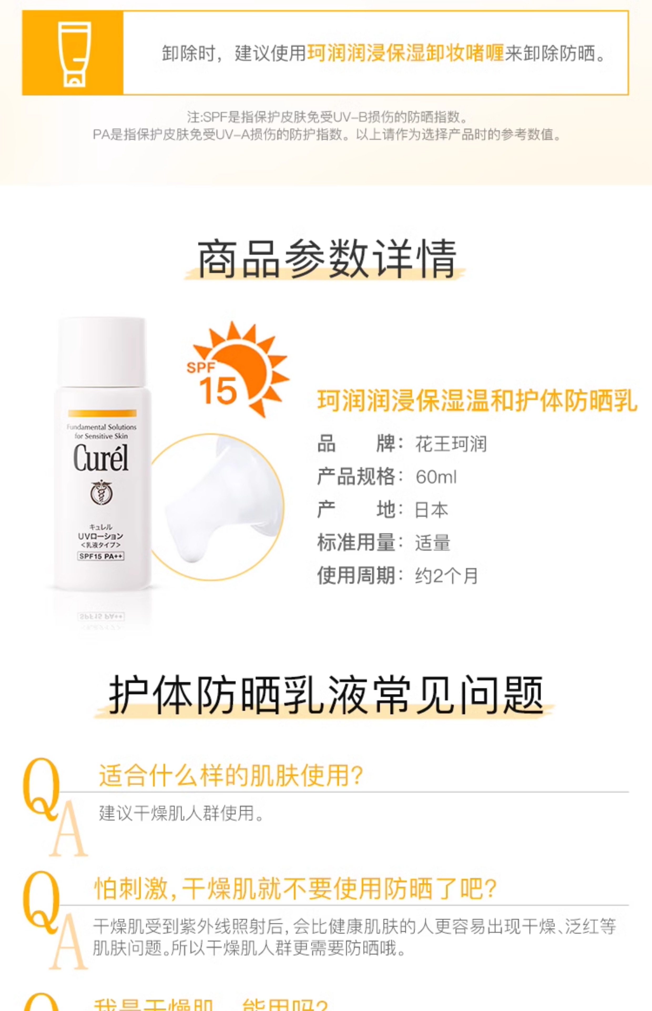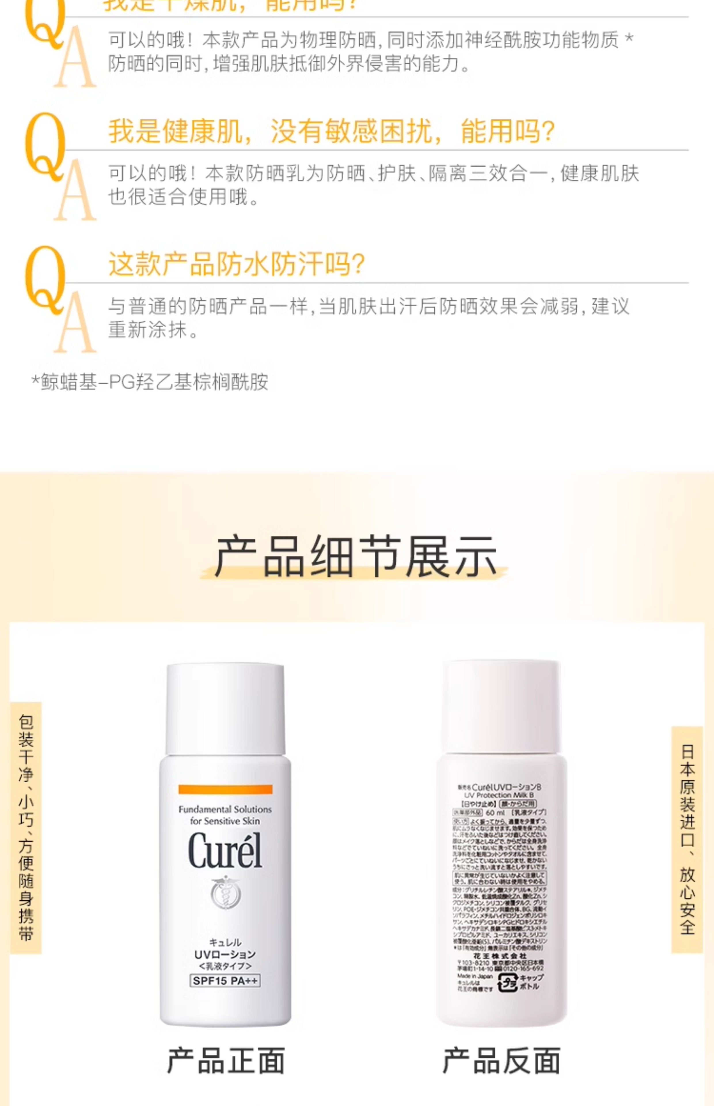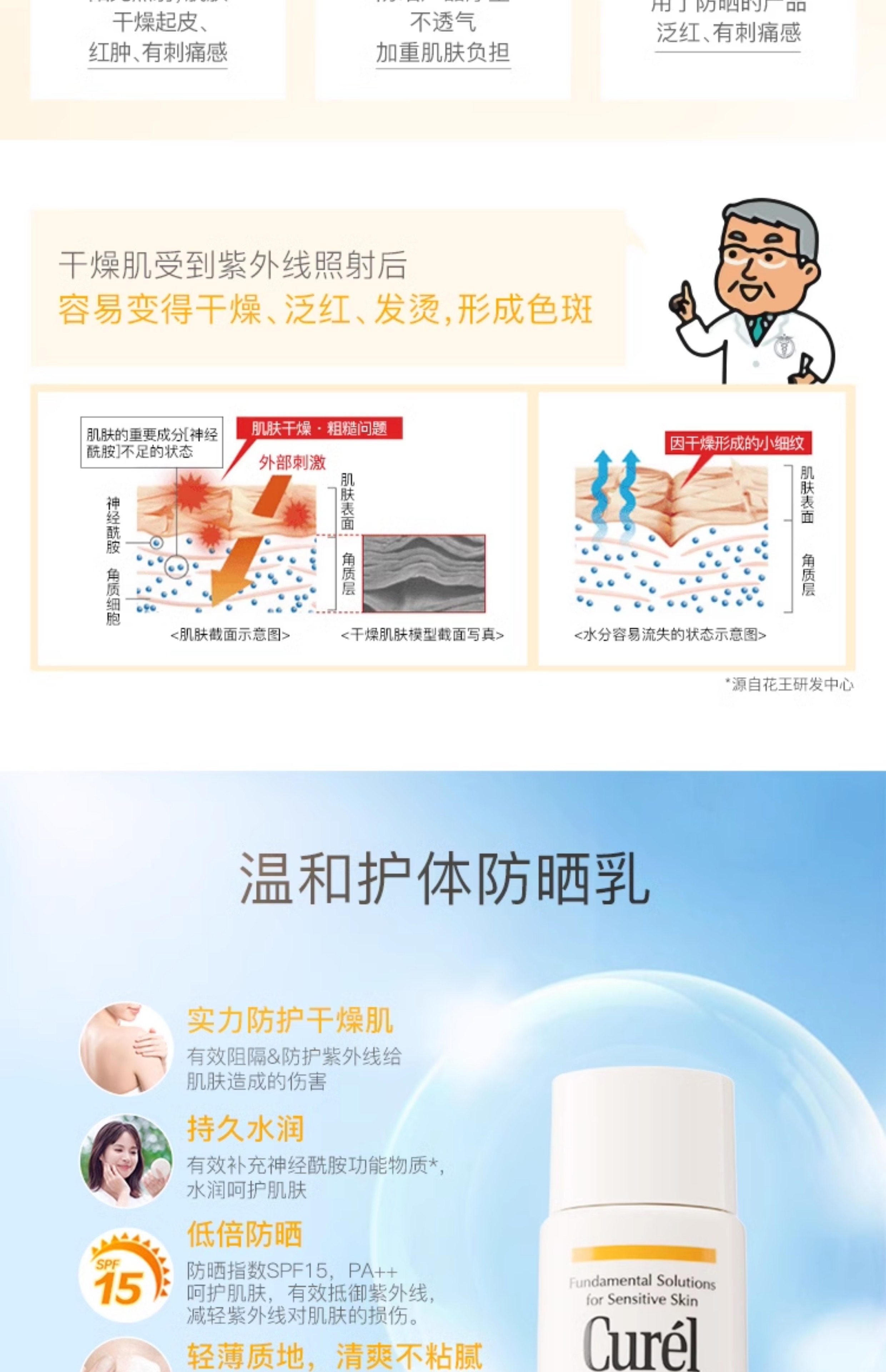 珂润Curel 浸润保湿物理防晒乳60ml SPF50++