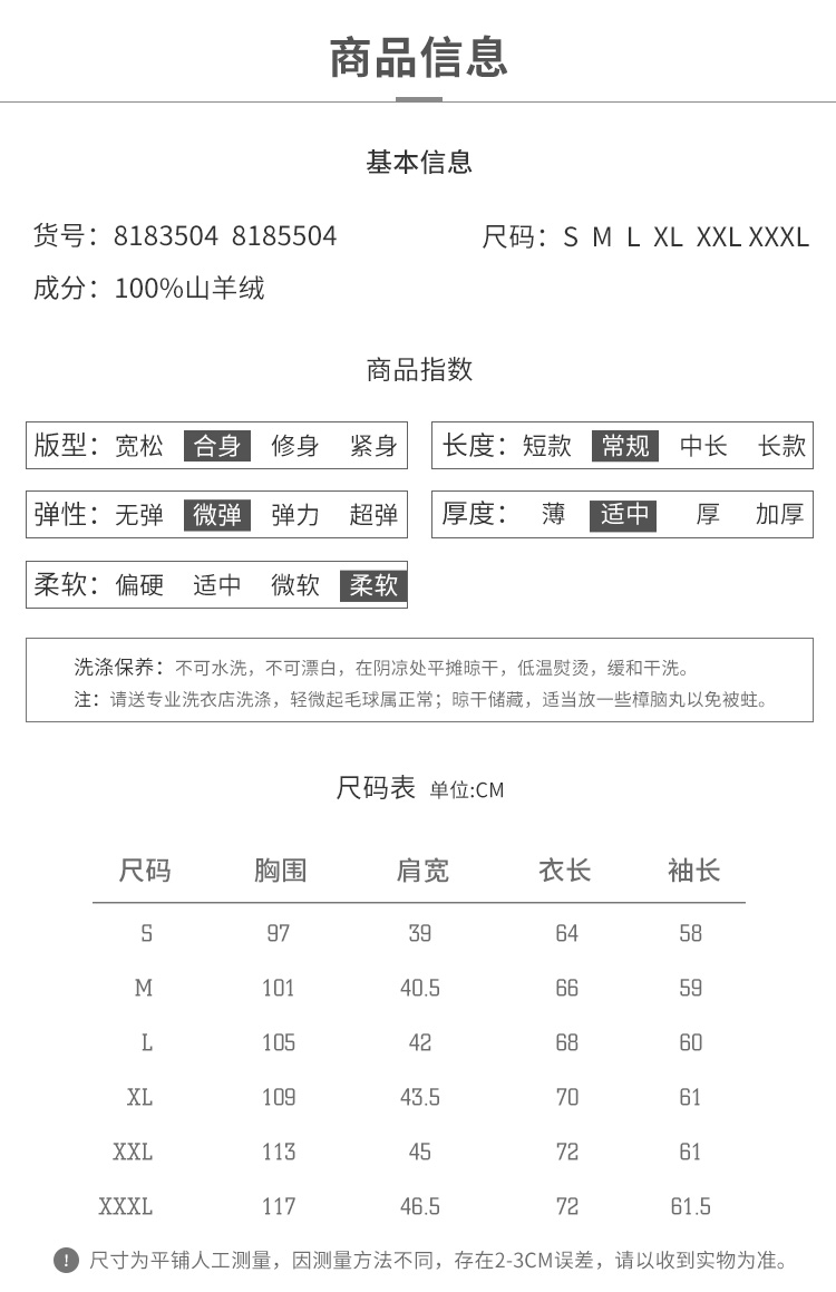 | 尺码: 100/165/S 105/170/M 110/175/L 115/180/XL 120/185/XXL 125/190/XXXL | 图案: 纯色 |