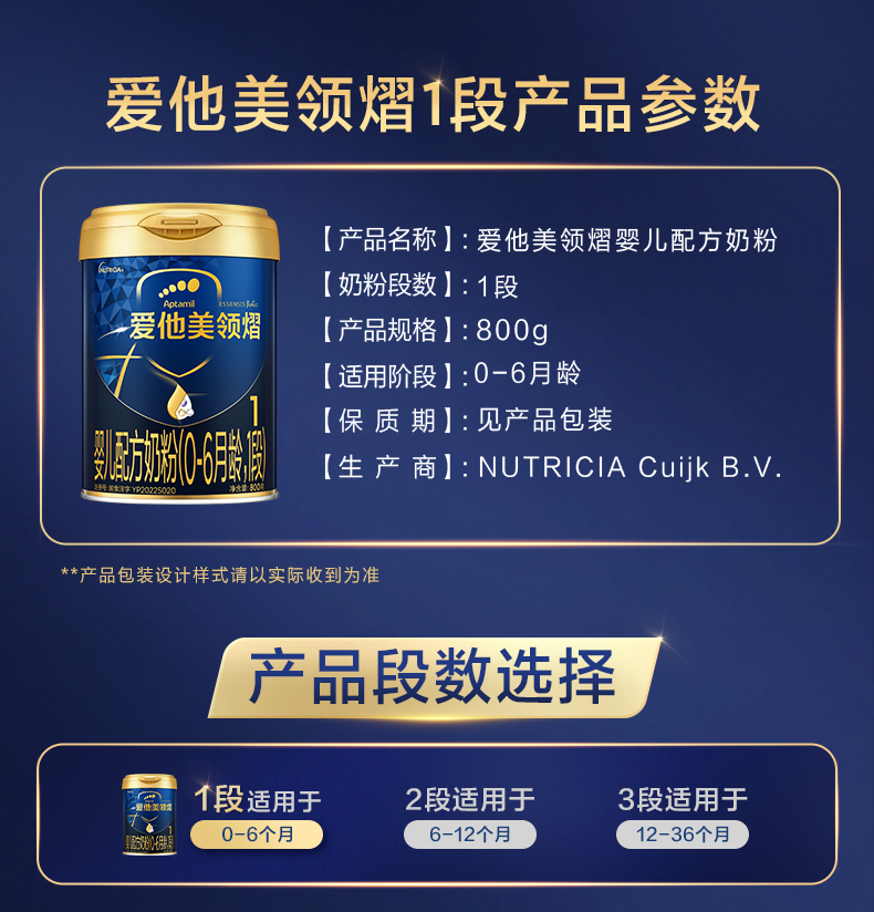 爱他美领熠婴儿配方奶粉(0-6月龄)1段800g