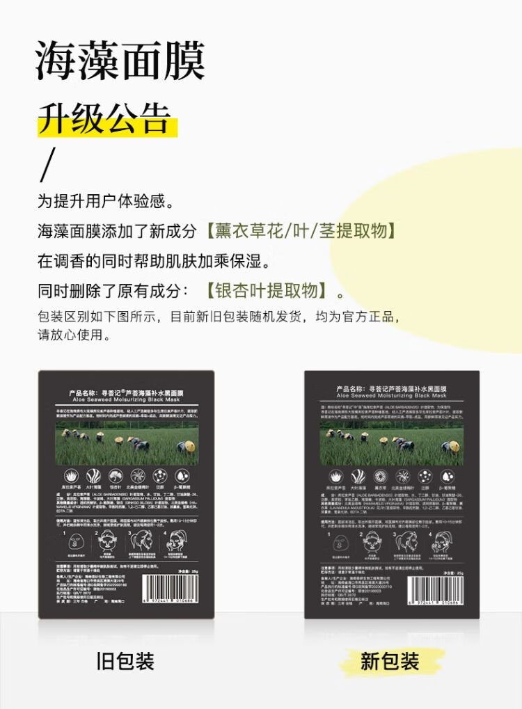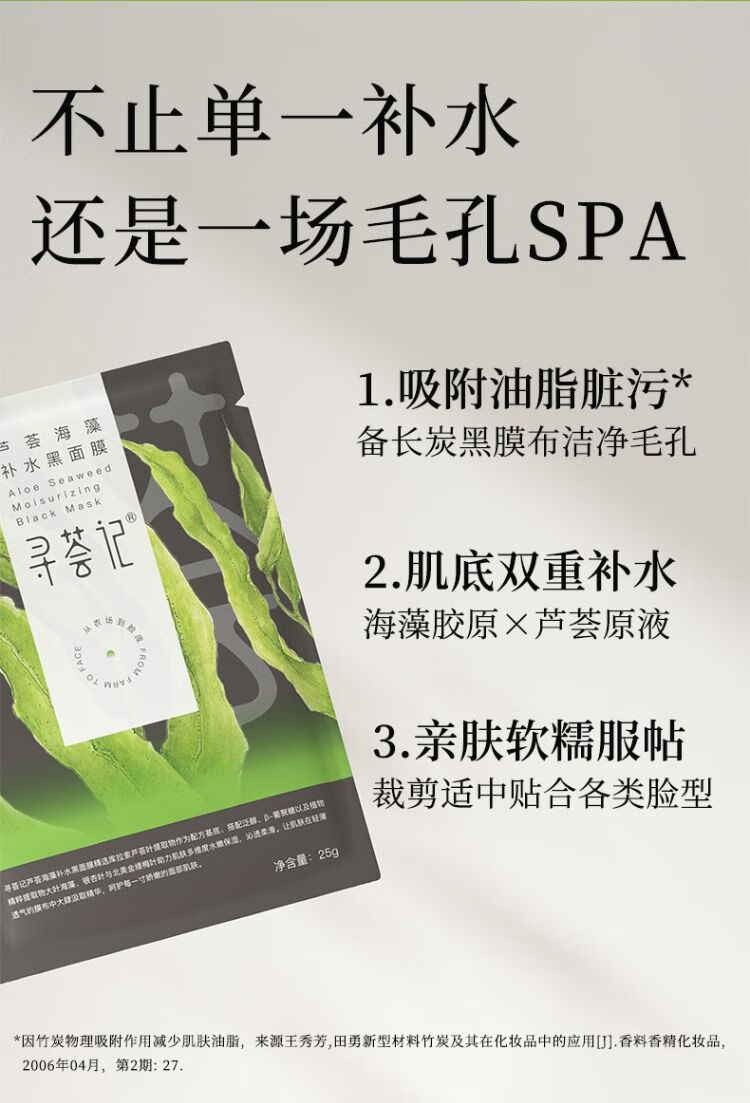 寻荟记 芦荟海藻补水黑面膜(5片装)