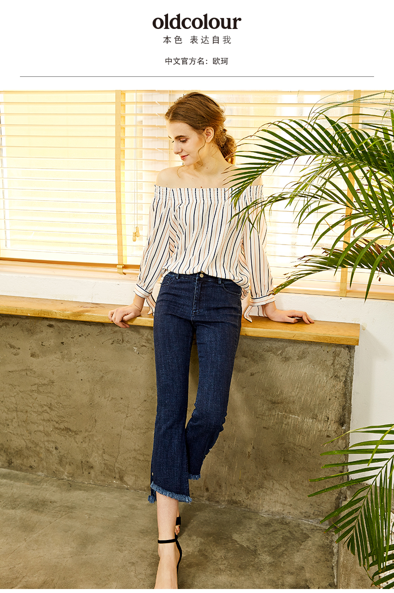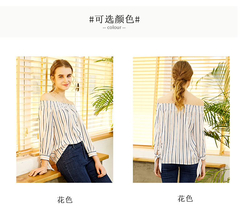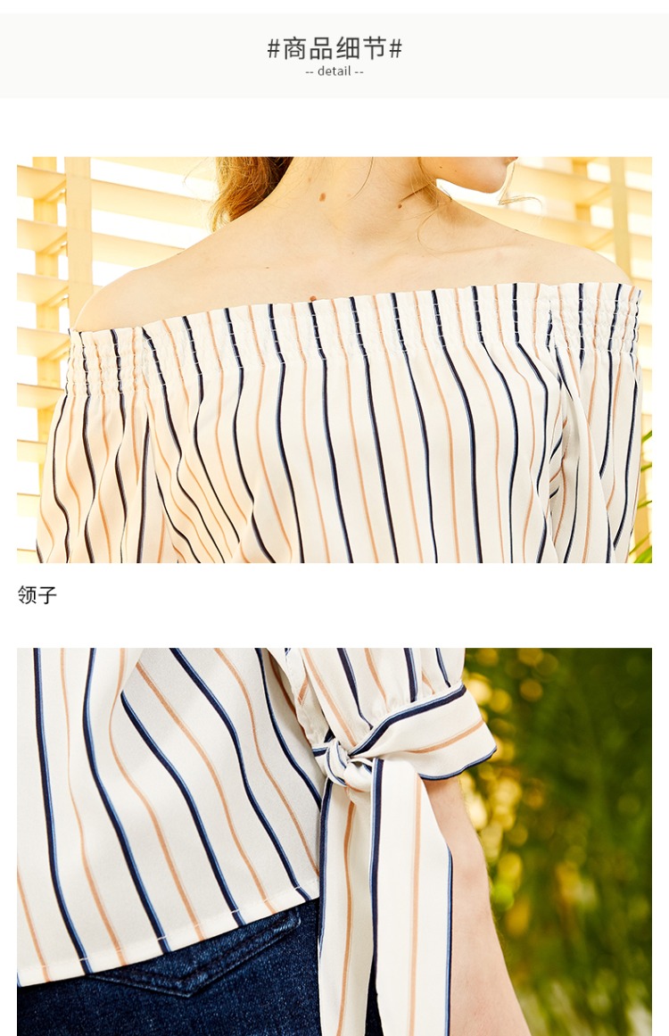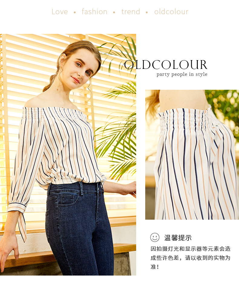 oldcolour欧珂春款衬衣女竖条纹一字领蝴蝶结袖口chic上衣女