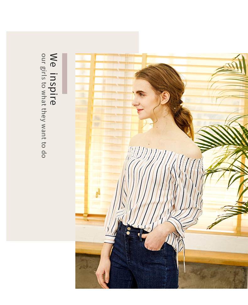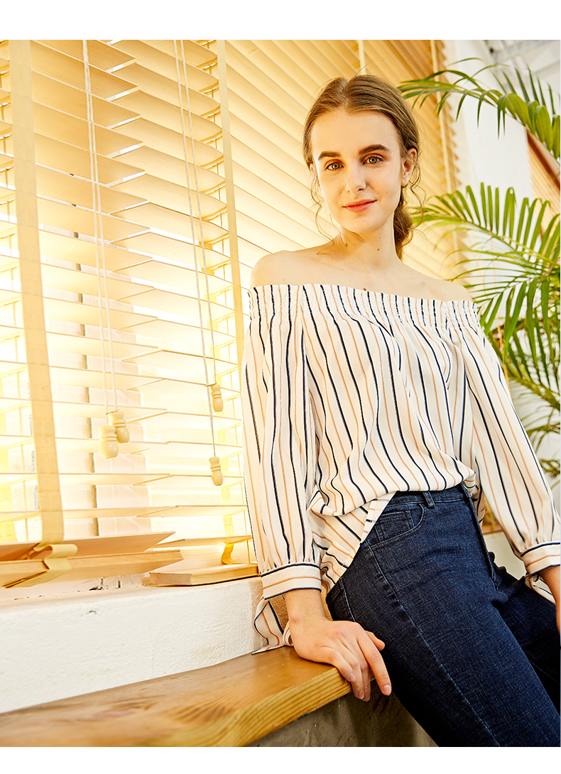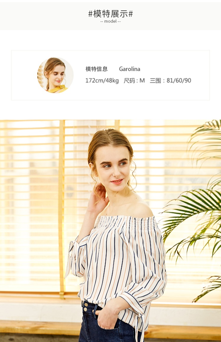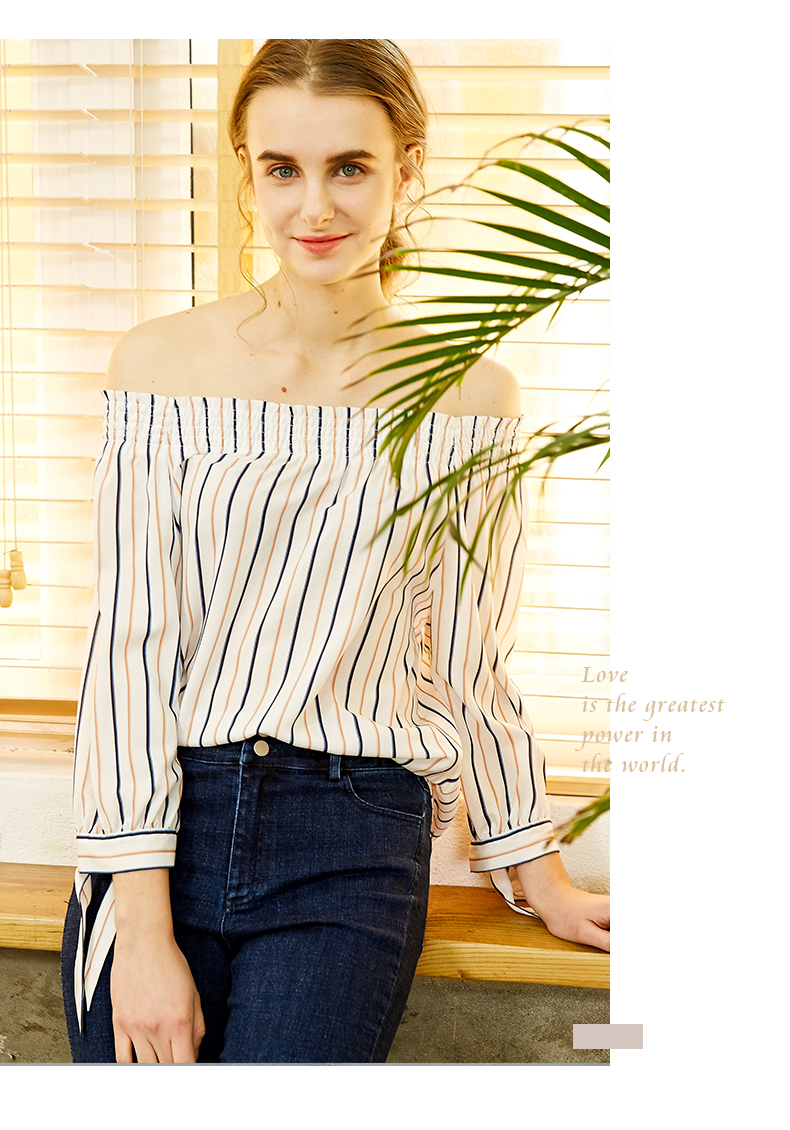 oldcolour欧珂春款衬衣女竖条纹一字领蝴蝶结袖口chic上衣女