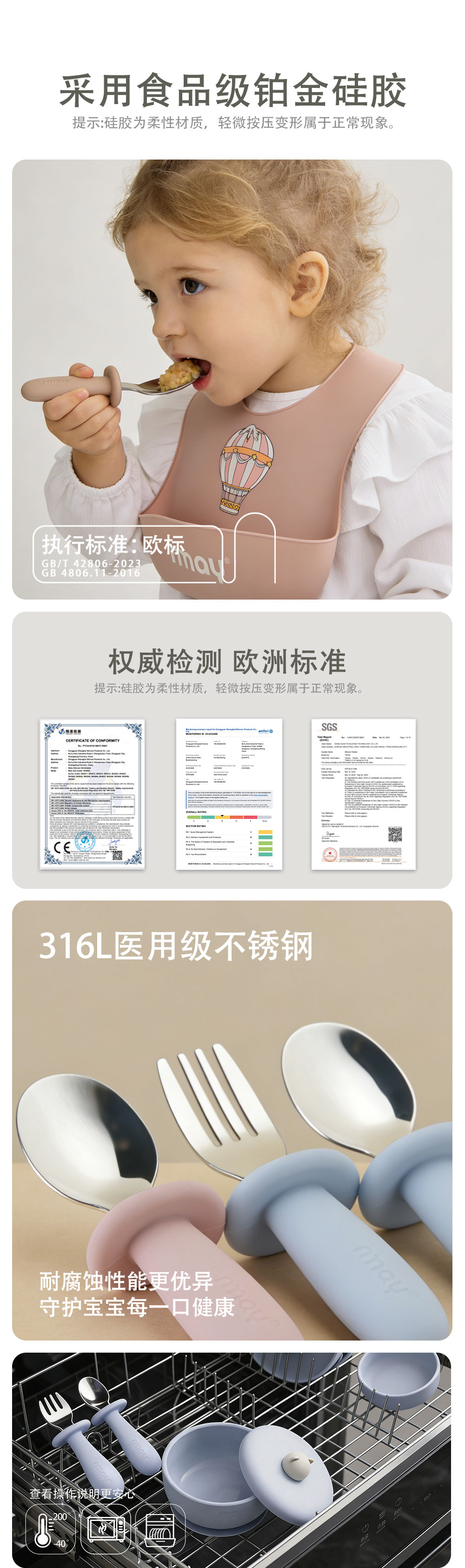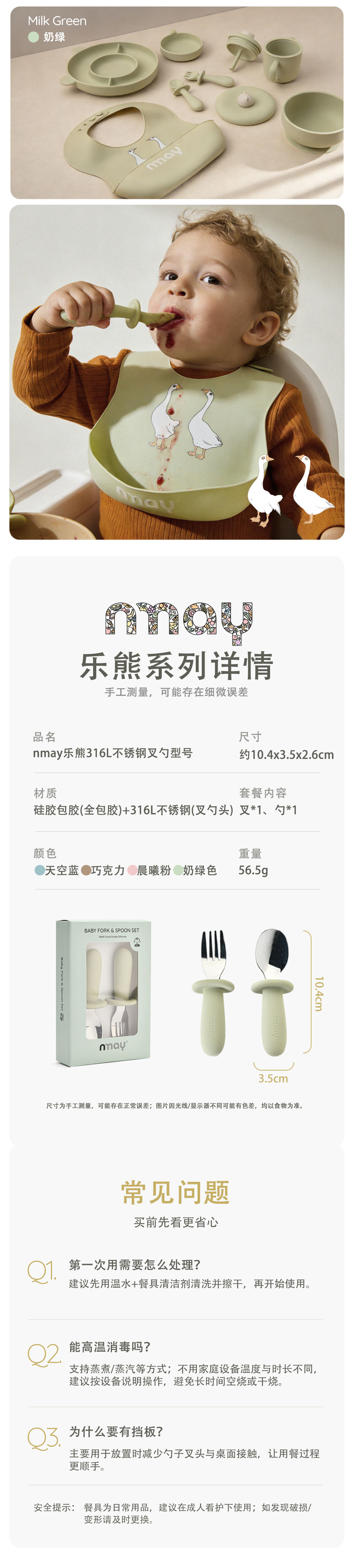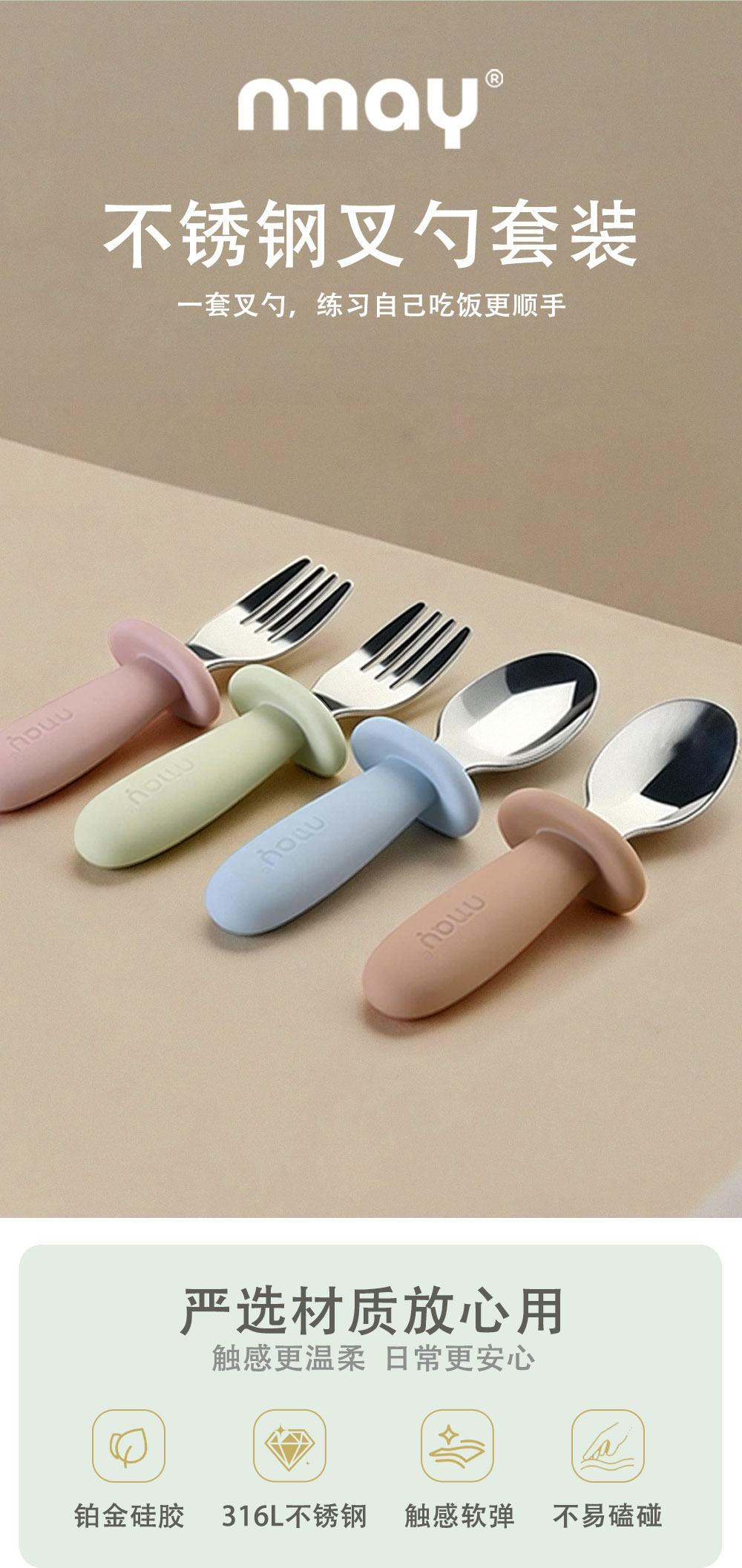 nmay 乐熊系列 316L不锈钢叉勺 儿童宝宝辅食餐具6月+