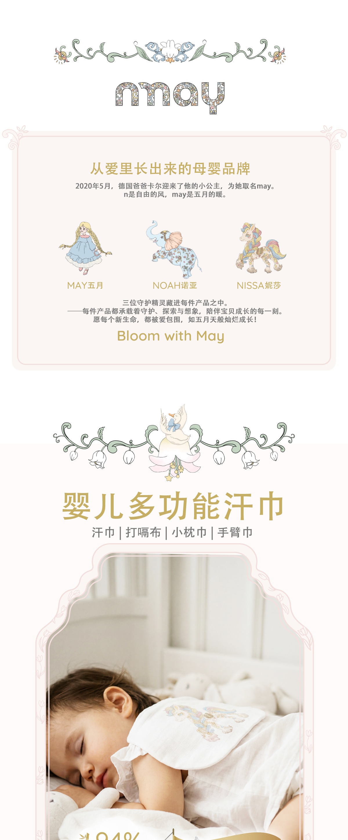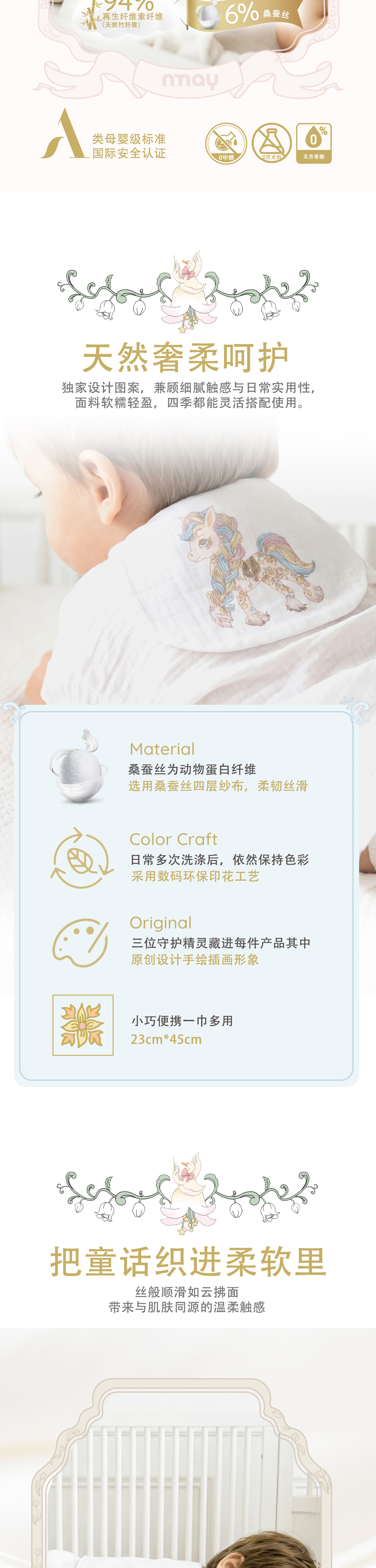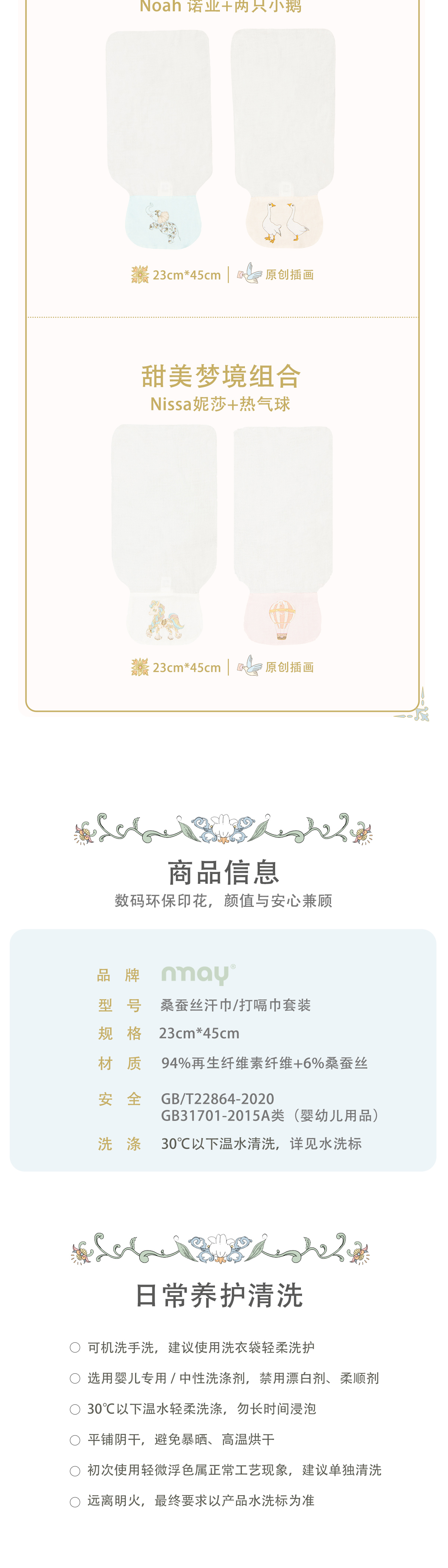 nmay 婴儿汗巾两件套 新生婴儿竹纤维桑蚕丝吸汗巾打嗝巾23cm×45cm