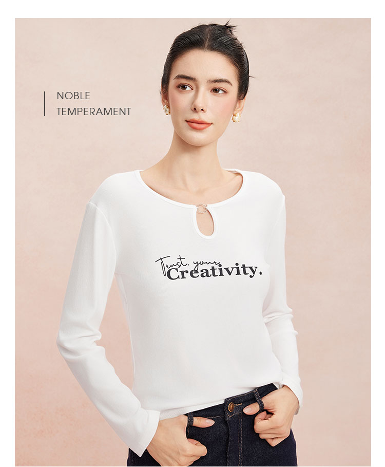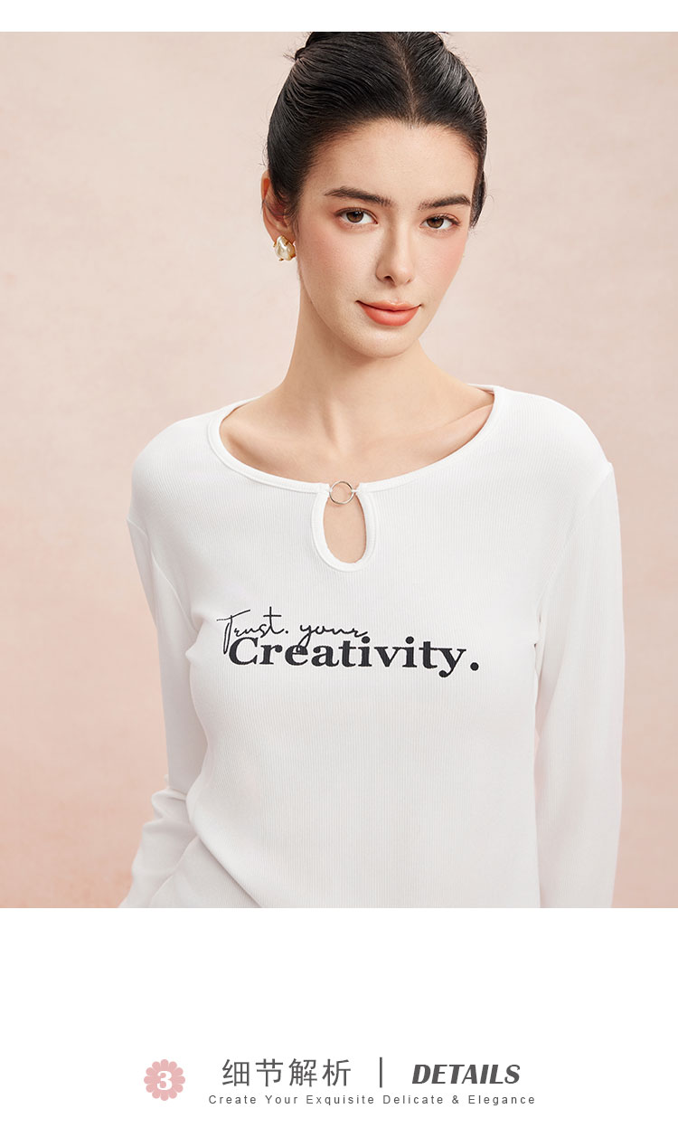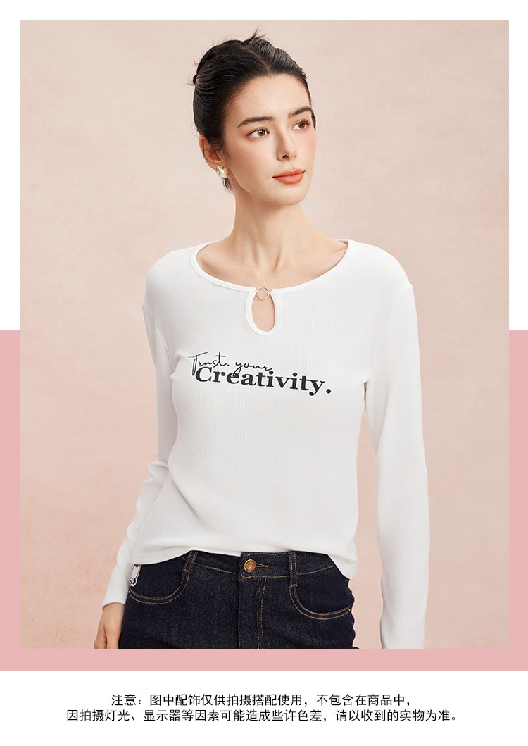 RE700斯尔丽2026新款春季长袖T恤简约百搭时尚可单穿可内搭字母T上衣
