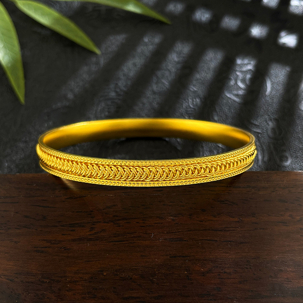 【限时克减150元】足金999.9 古法实心固口手工编织麻花手镯(面宽约5.7-6.1mm)(ANWGFSZ01091))预售产品下单后不退款不退货不换货不补差价