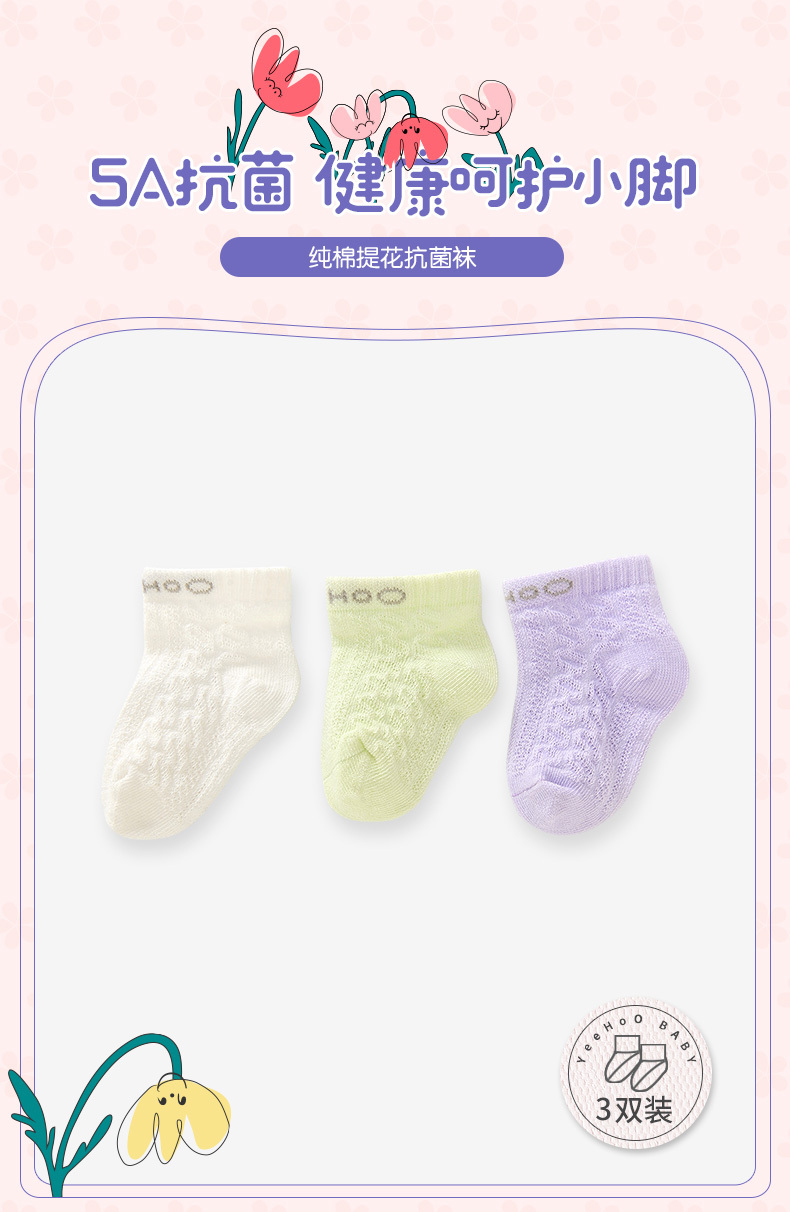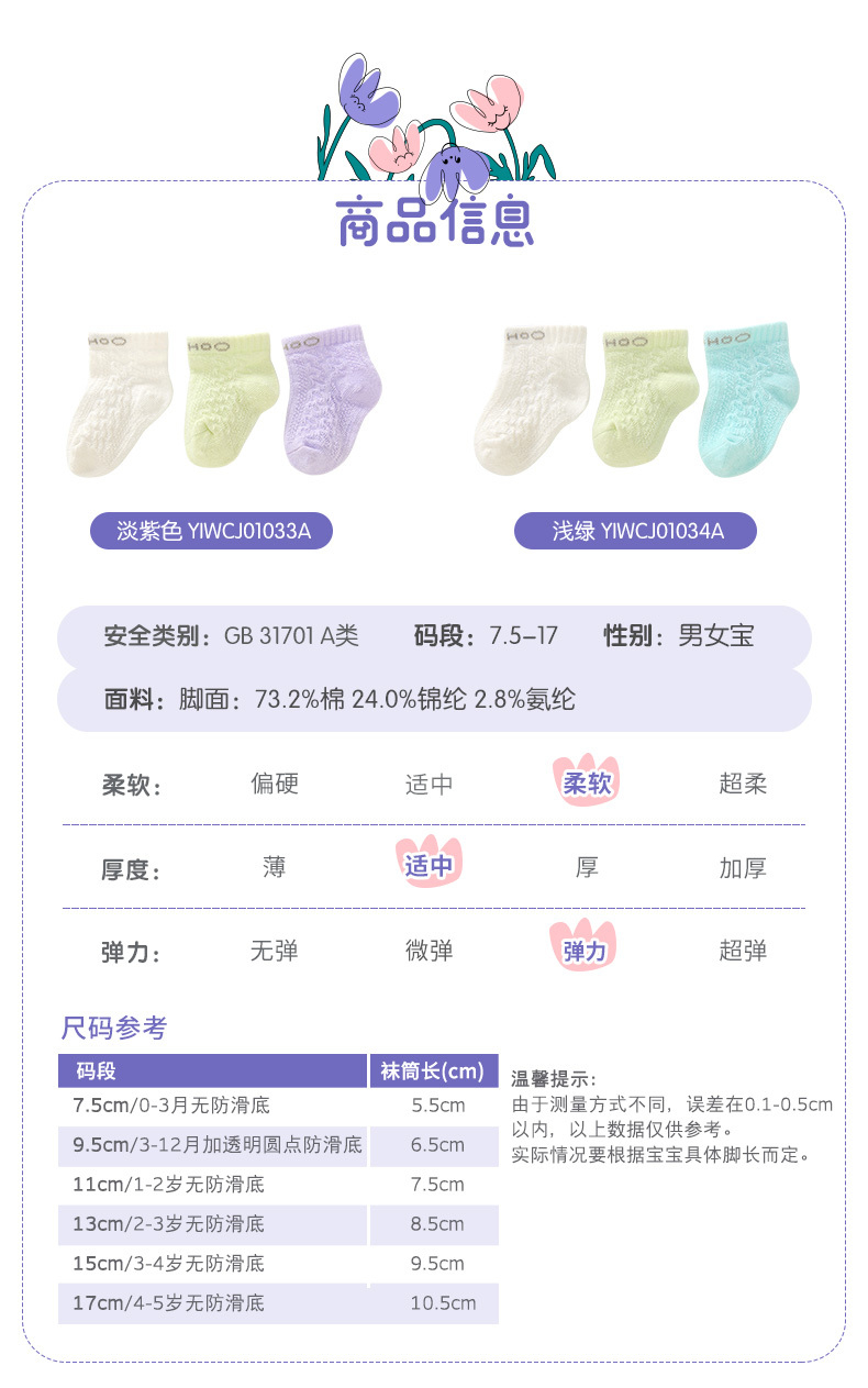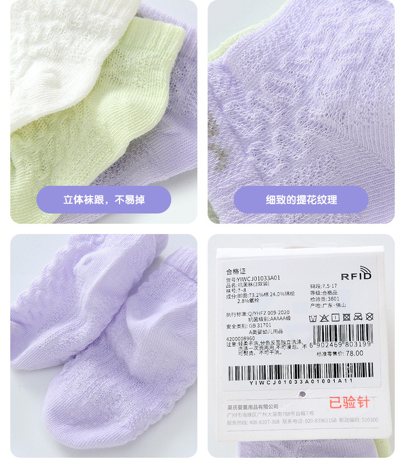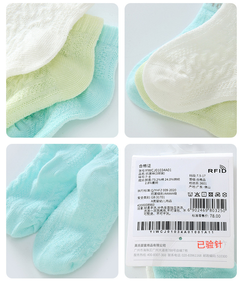 英氏婴儿袜子透气薄袜宝宝袜子2021新款YIWCJ01033A01 YIWCJ01034A01