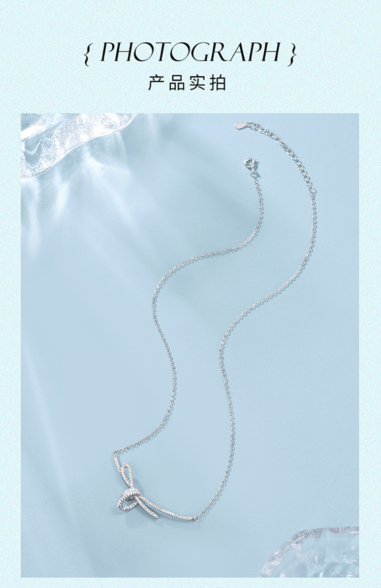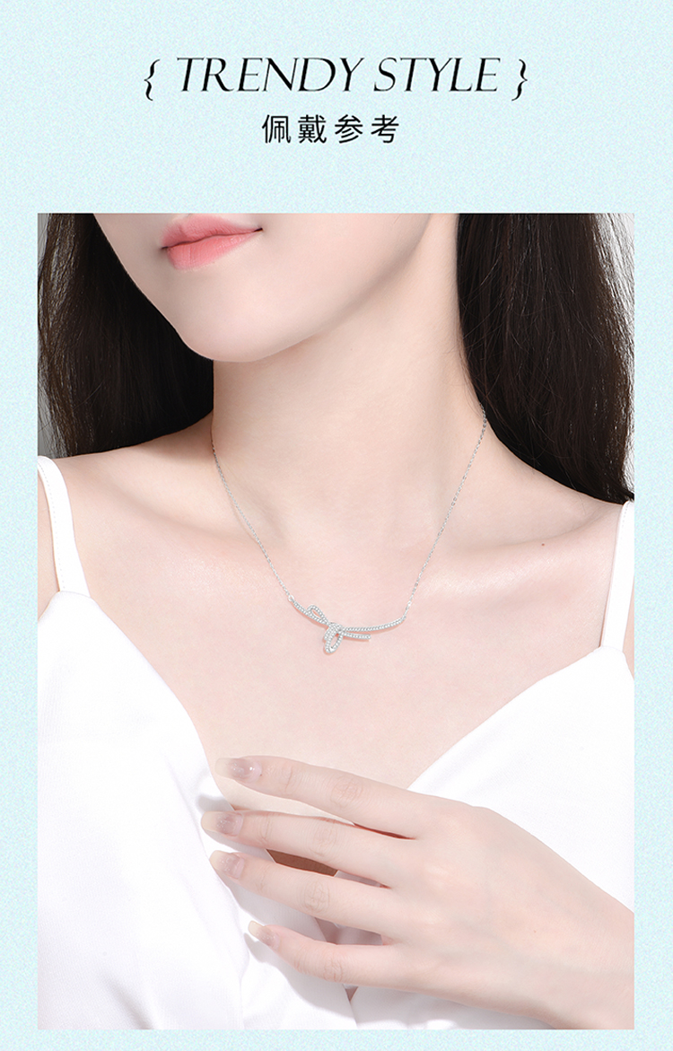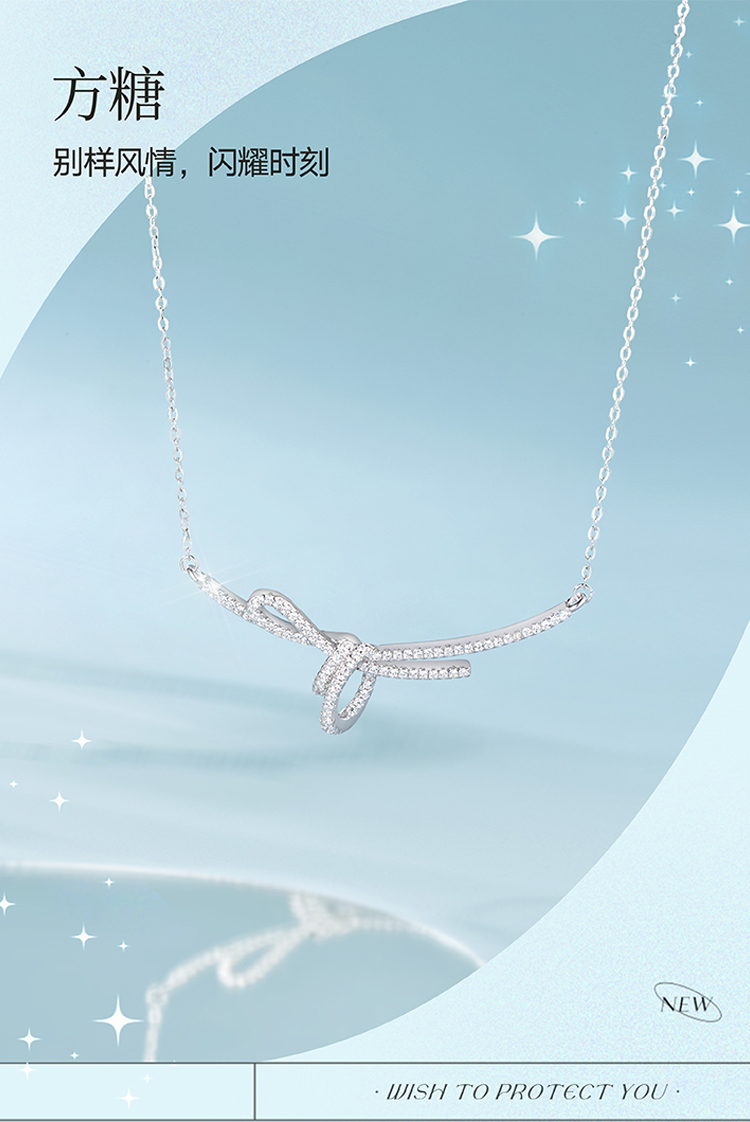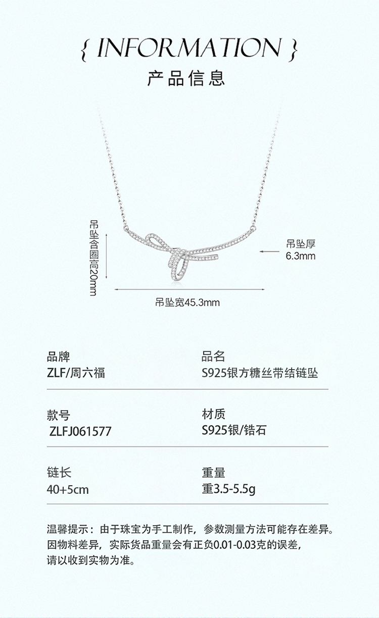 周六福S925银方糖丝带结项链ZLFJ061577★