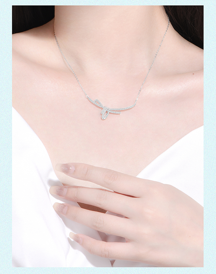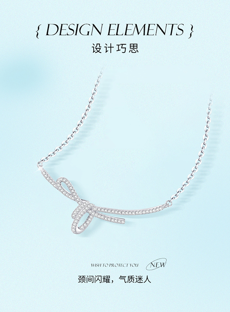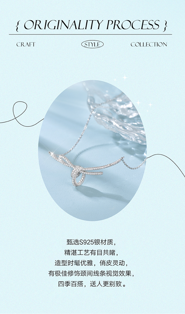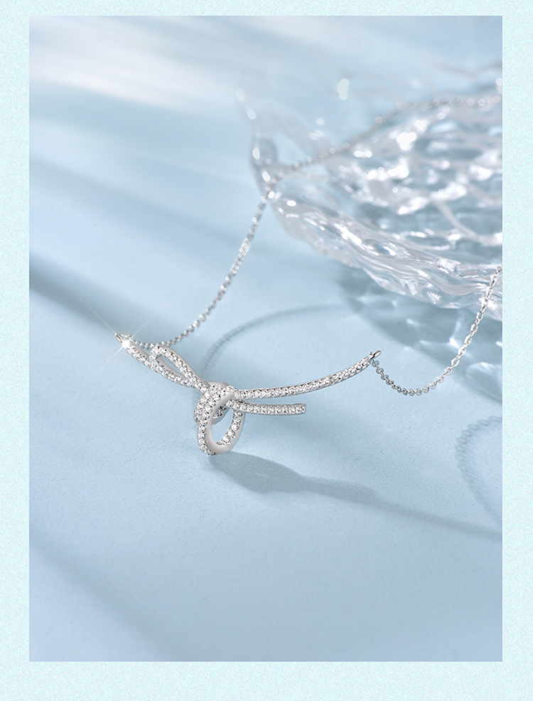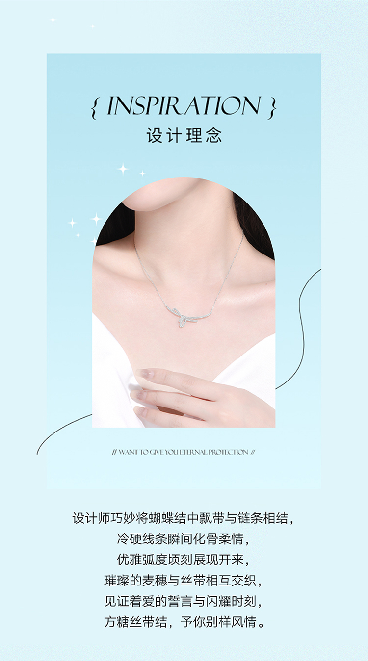 周六福S925银方糖丝带结项链ZLFJ061577★
