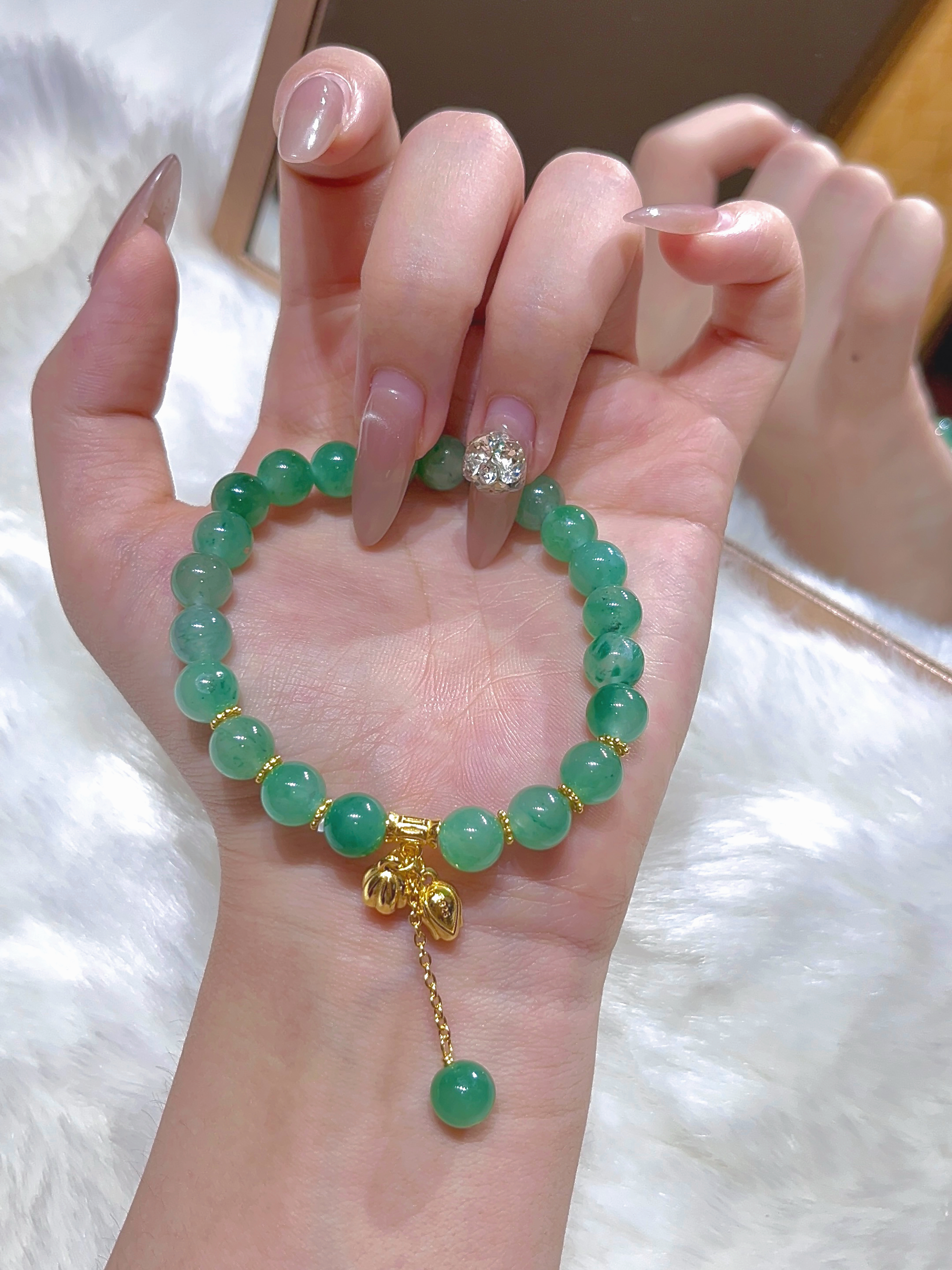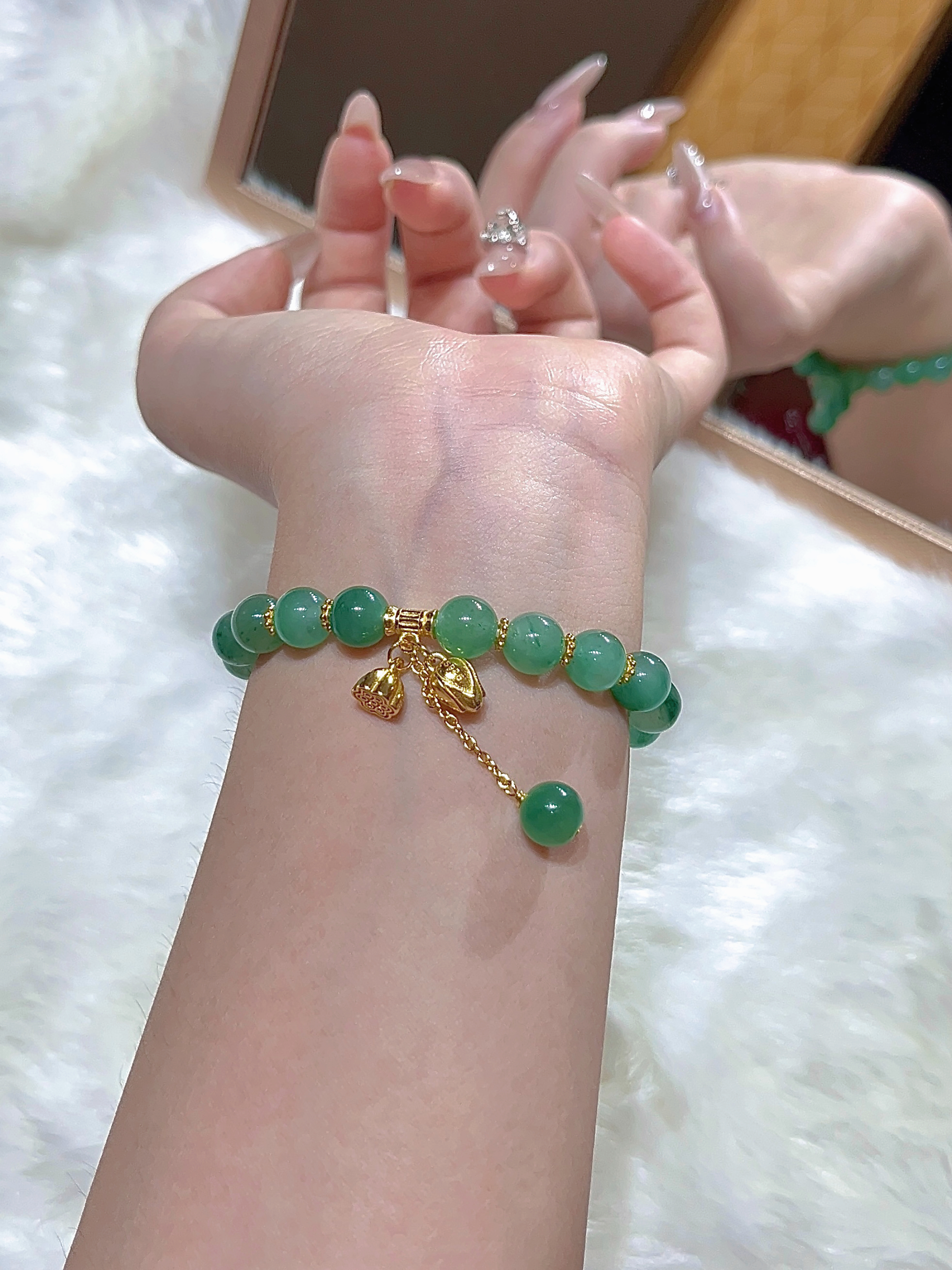 【新品上线】非洲翠玉碧玉手串女款两世欢玉手链莲藕莲蓬小众手饰送女朋友,支持门店自取/包邮到家。