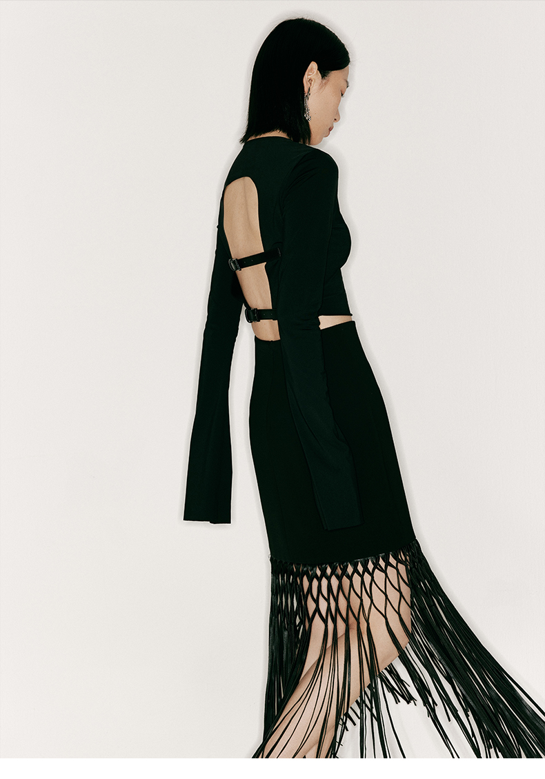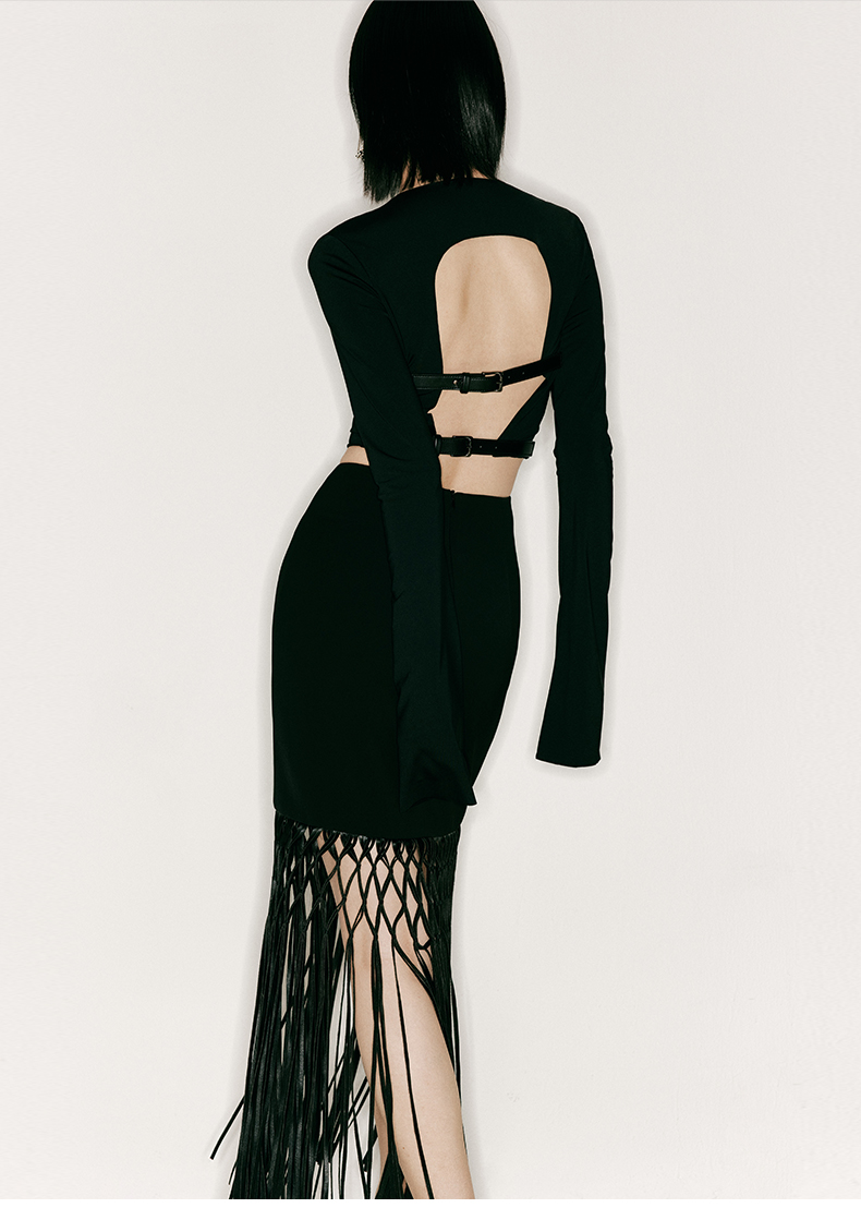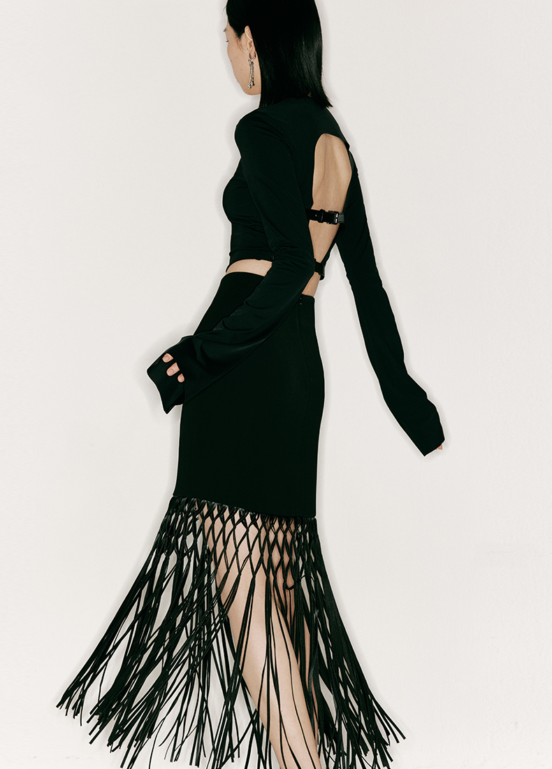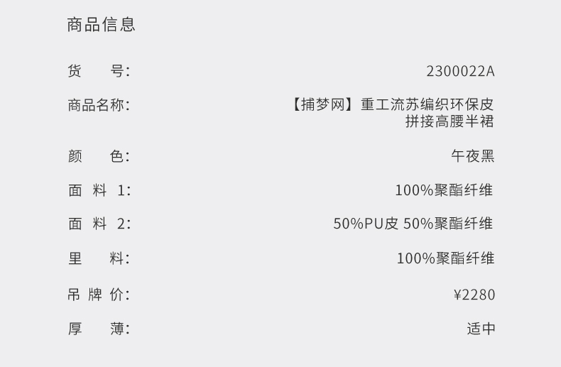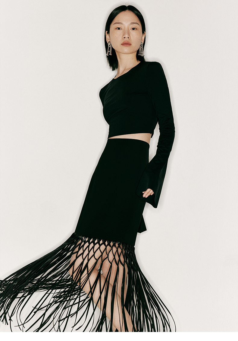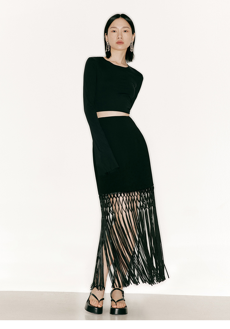 【捕梦网】重工流苏编织环保皮拼接高腰半裙/2300022A