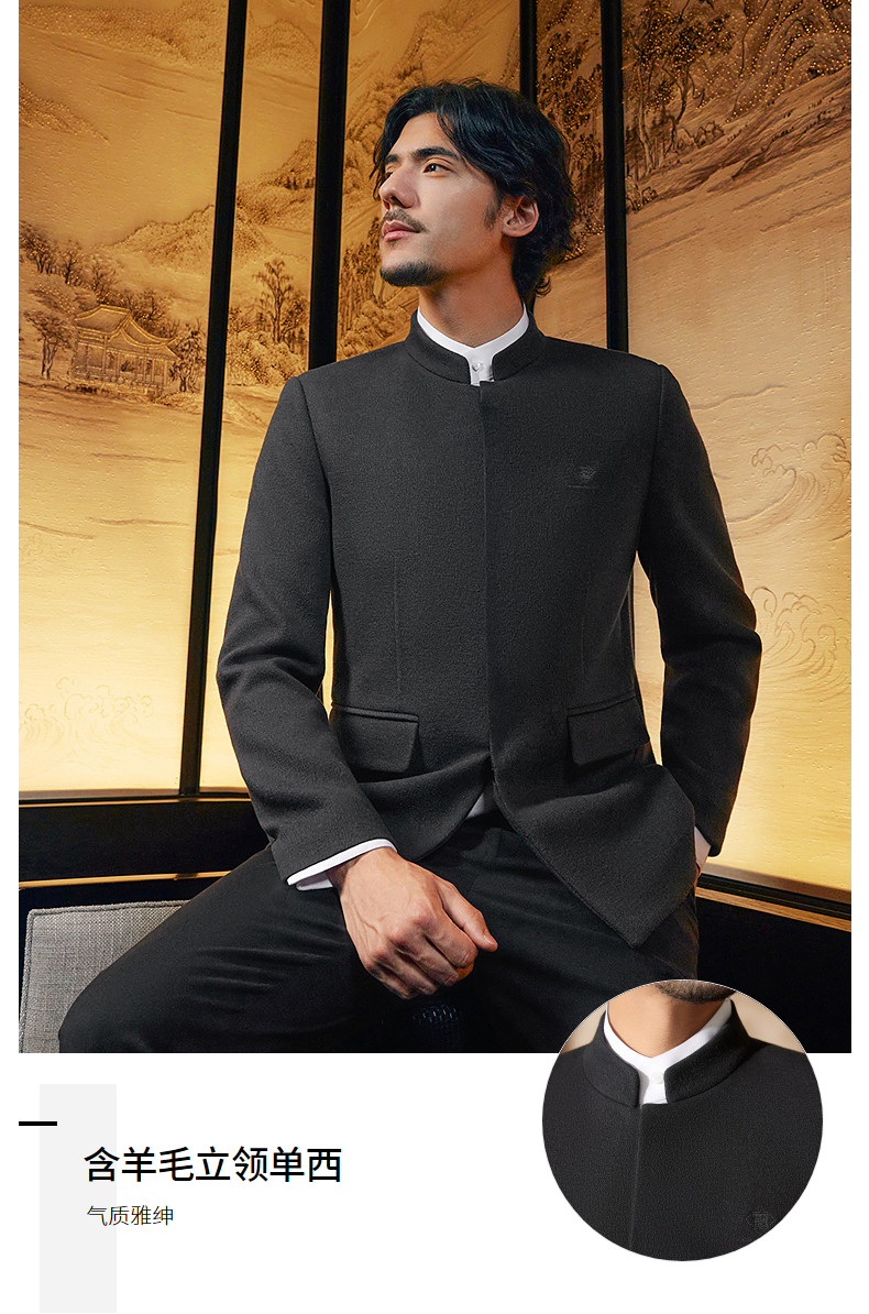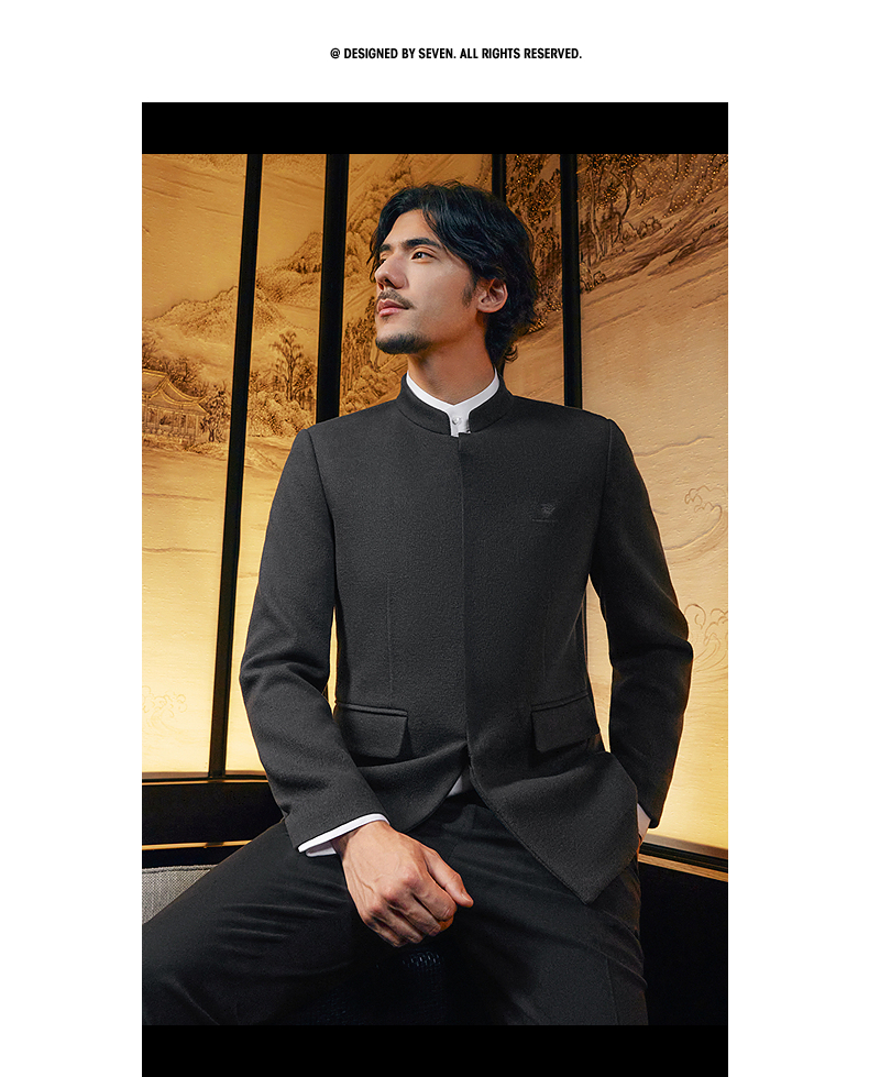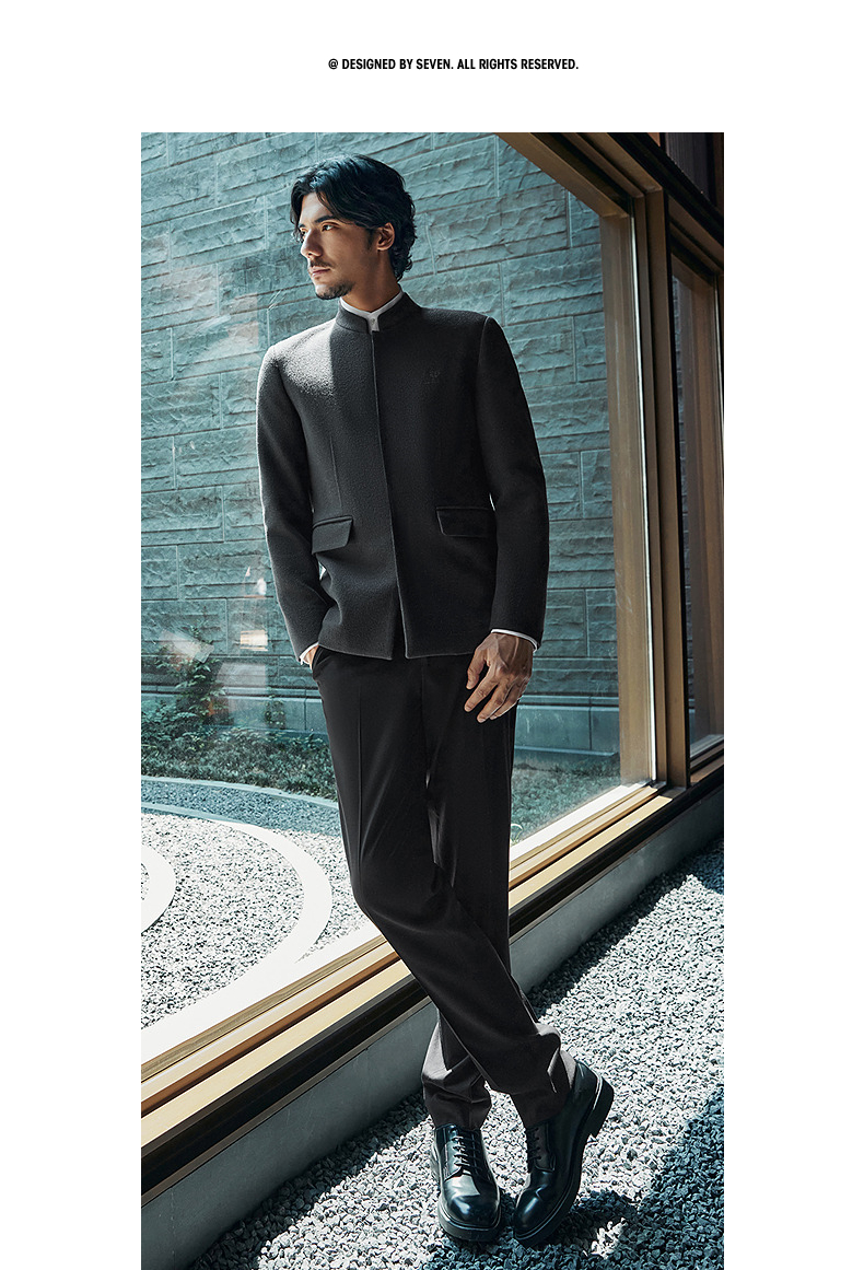 【中华立领】柒牌西服男2024秋季新款商务休闲含羊毛舒适西装外套 127C70710